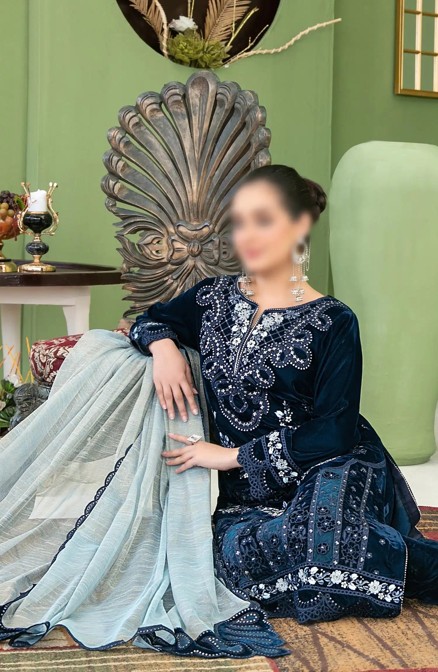Esmeray - Fancy Heavy Embroidered Velvet Collection has been styled in the image for photography and illustrative purposes.