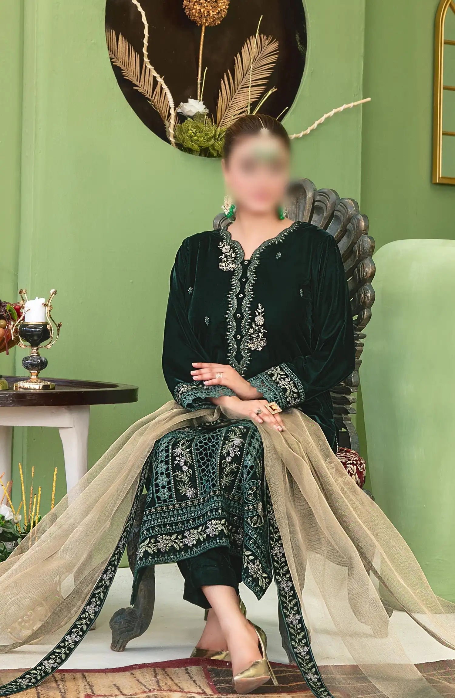3 Piece | All Categories Women | Esmeray - Fancy Heavy Embroidered Velvet Collection | Shop by Color Dark Green | Shop by Season Winter Wear | Shop by Style 3PCS | Shop by Style Unstitched | Tawakkal Fabrics | Unstitched | Unstitched Collections | Unstitched Festive wear | Unstitched Winter wear | Velvet Collection | Women