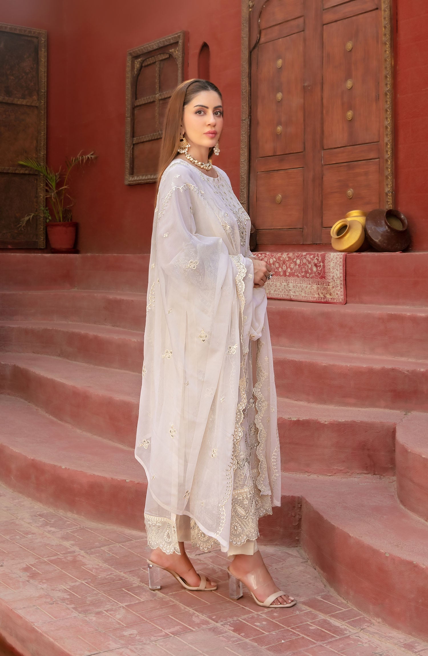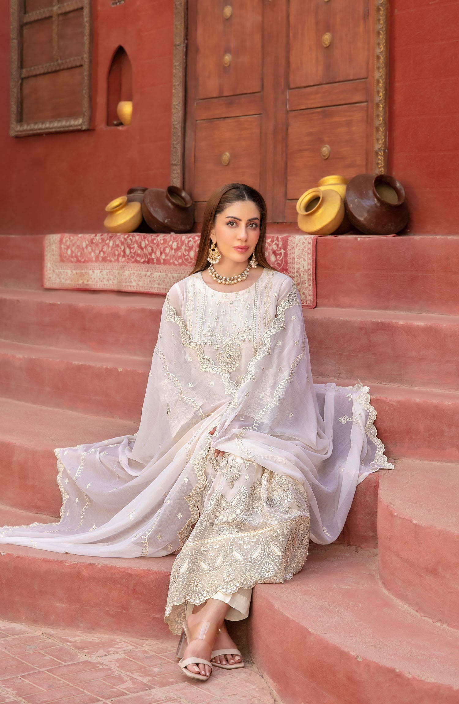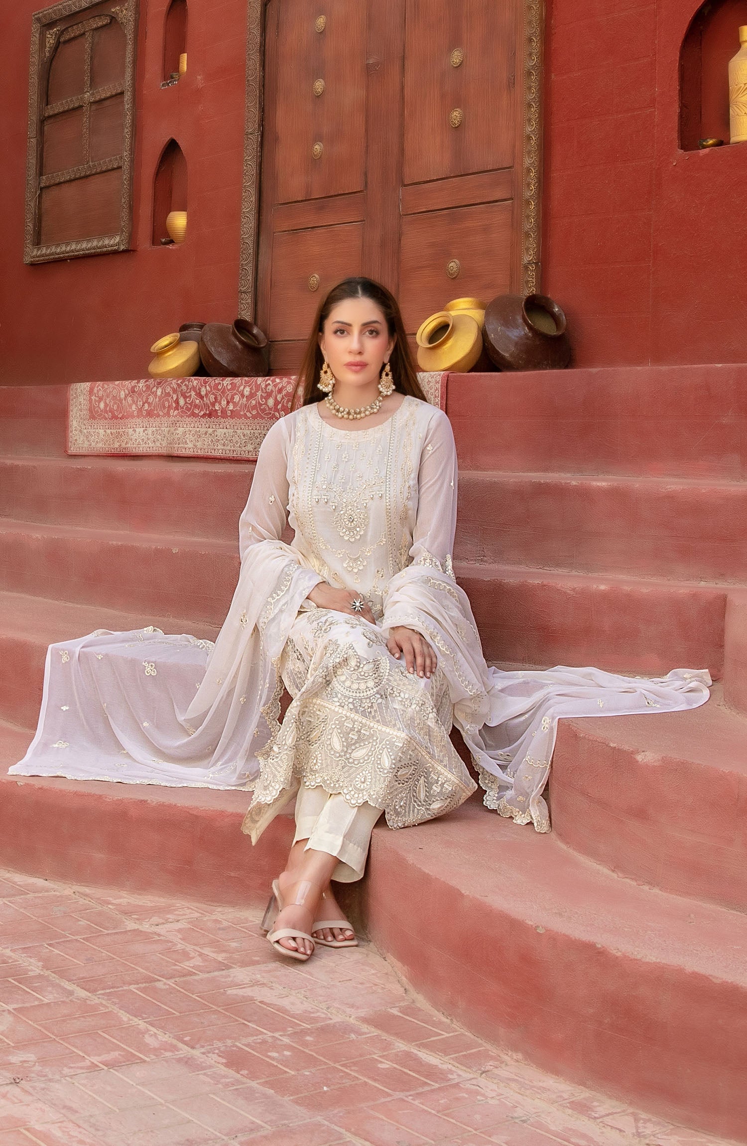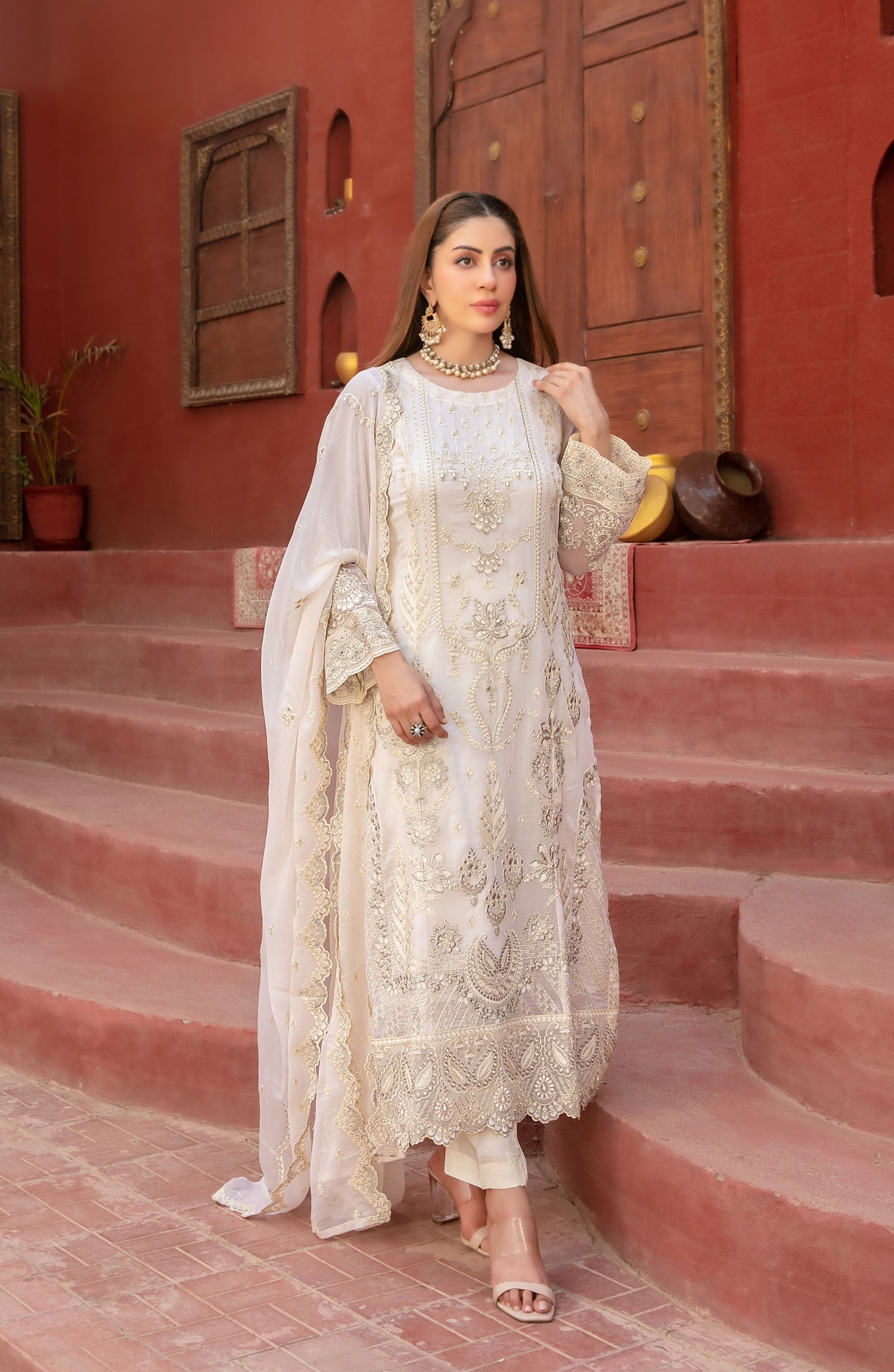 Semi-Stitched Fancy Embroidered Chiffon Fabric for Shirt with Embellishments