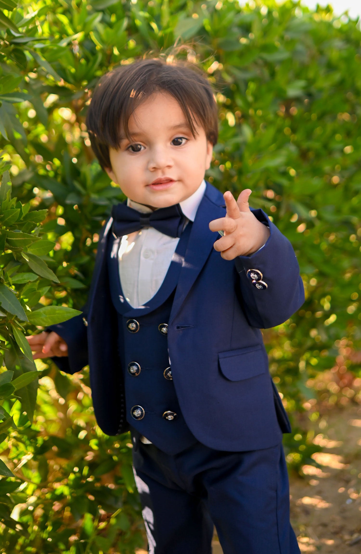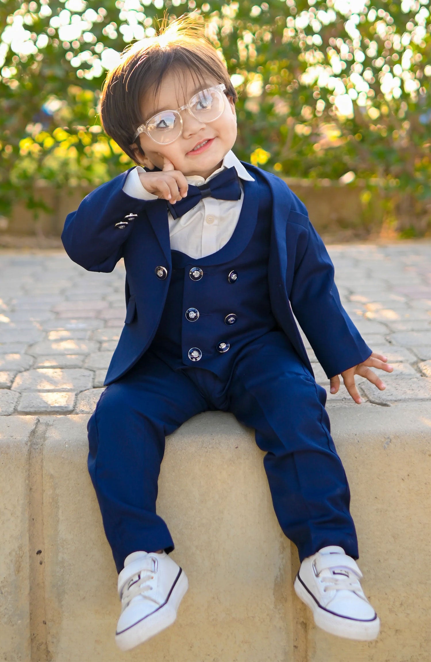 Includes (Blue Coat+Blue Waistcoat+Blue Pant+White Shirt+Blue Bow).