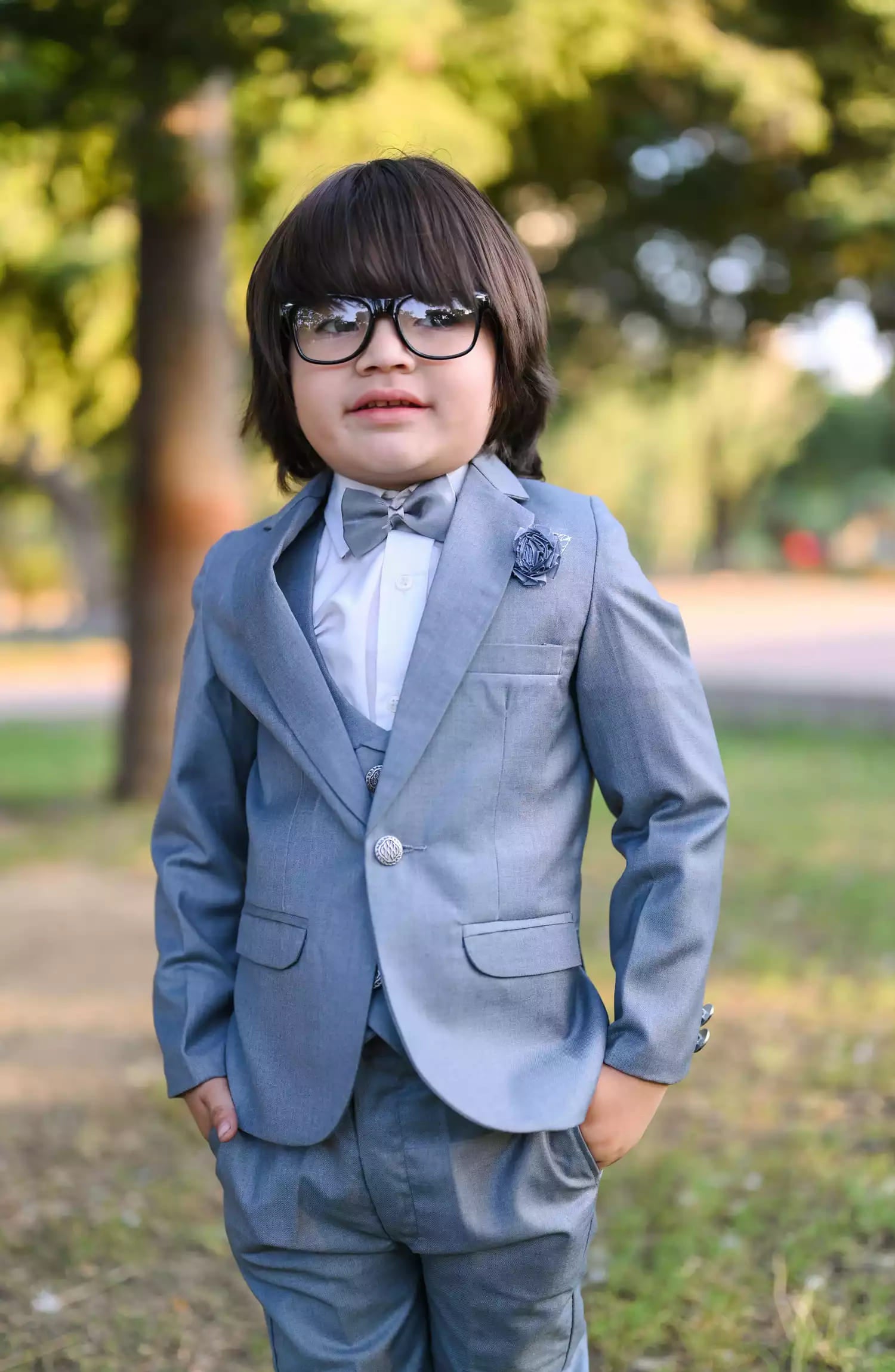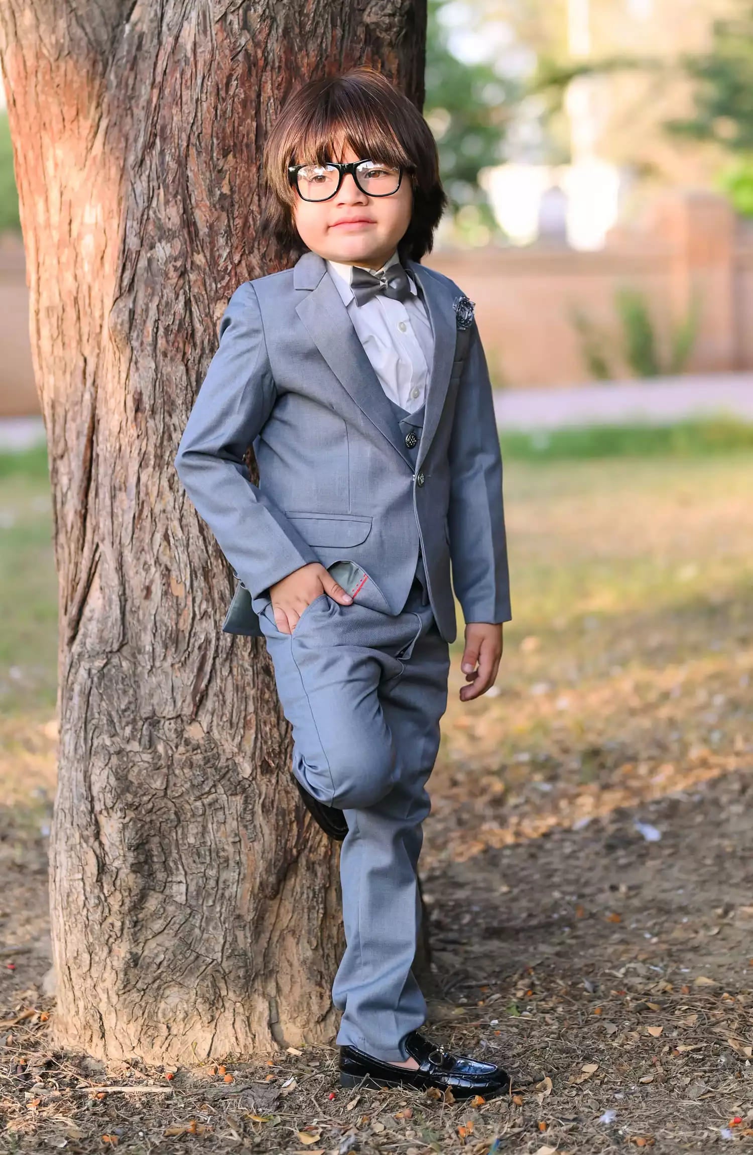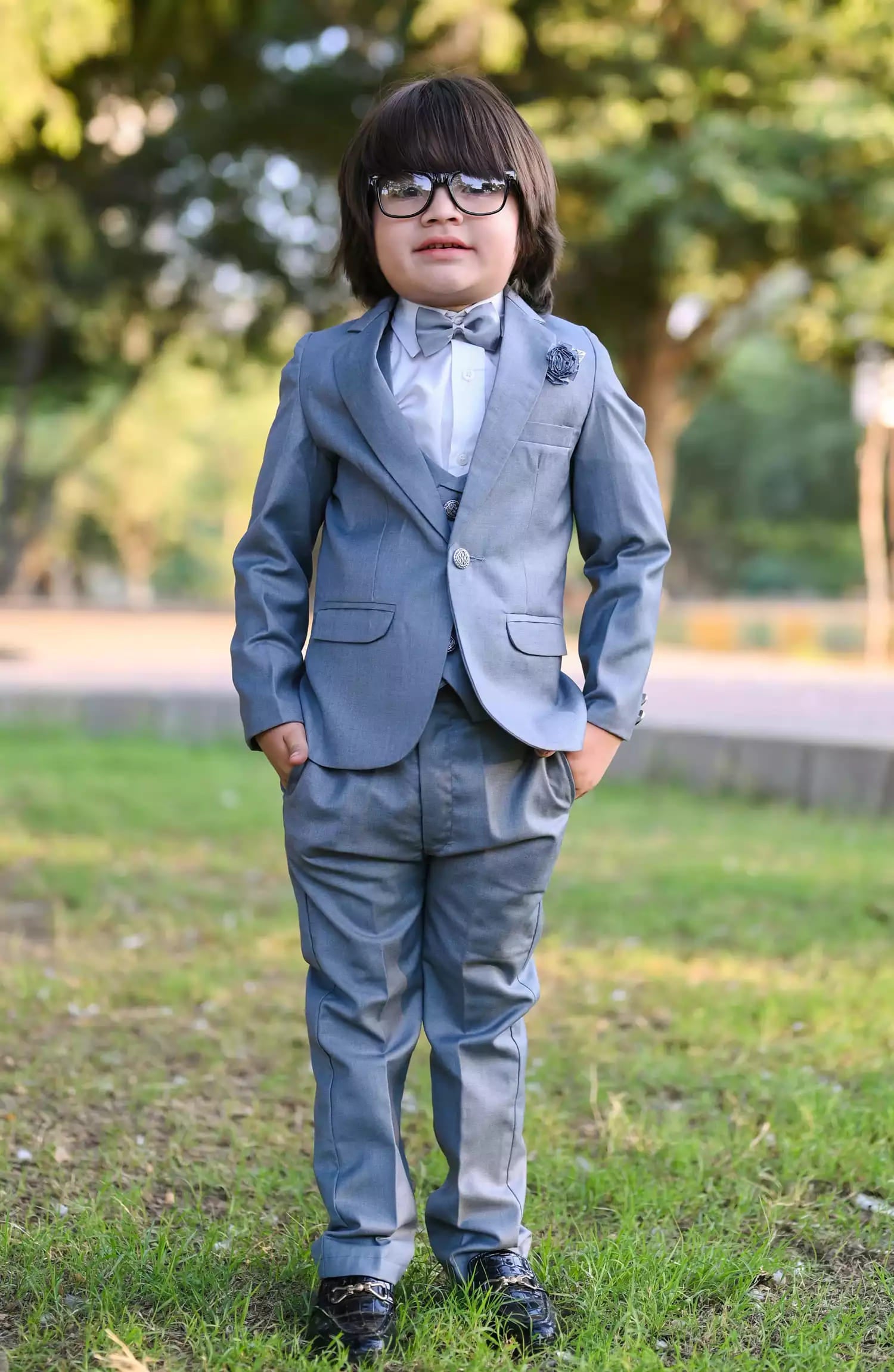 Includes (Grey Coat+Grey Pant+White Shirt+Grey Bow).