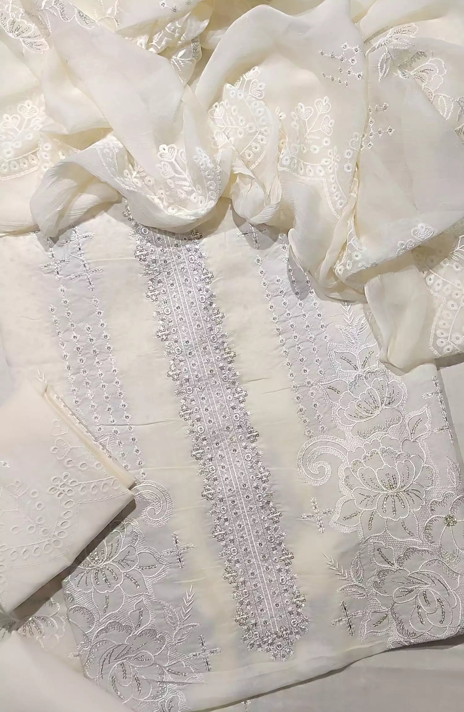 Exclusive Embroidered Lawn 3Pec Collection 2024 By Amna Khadija has been styled in the image for photography and illustrative purposes.