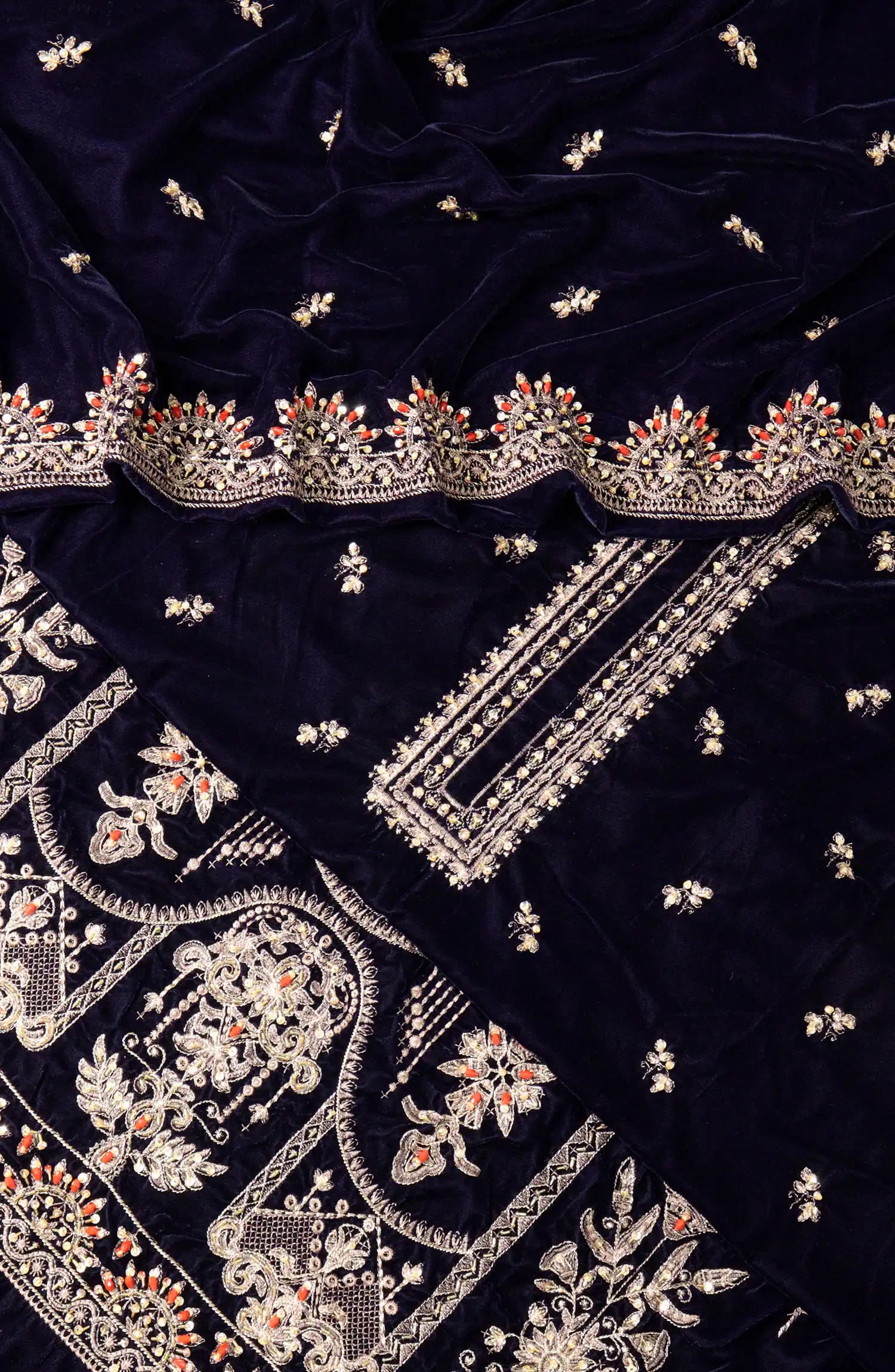 Exclusive Embroidered Velvet Collection has been styled in the image for photography and illustrative purposes.