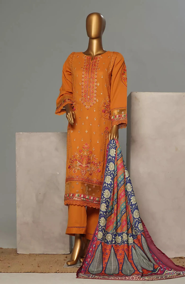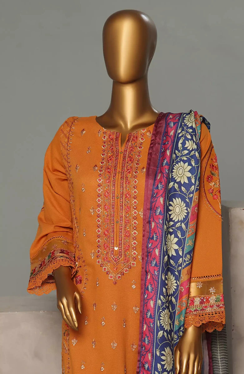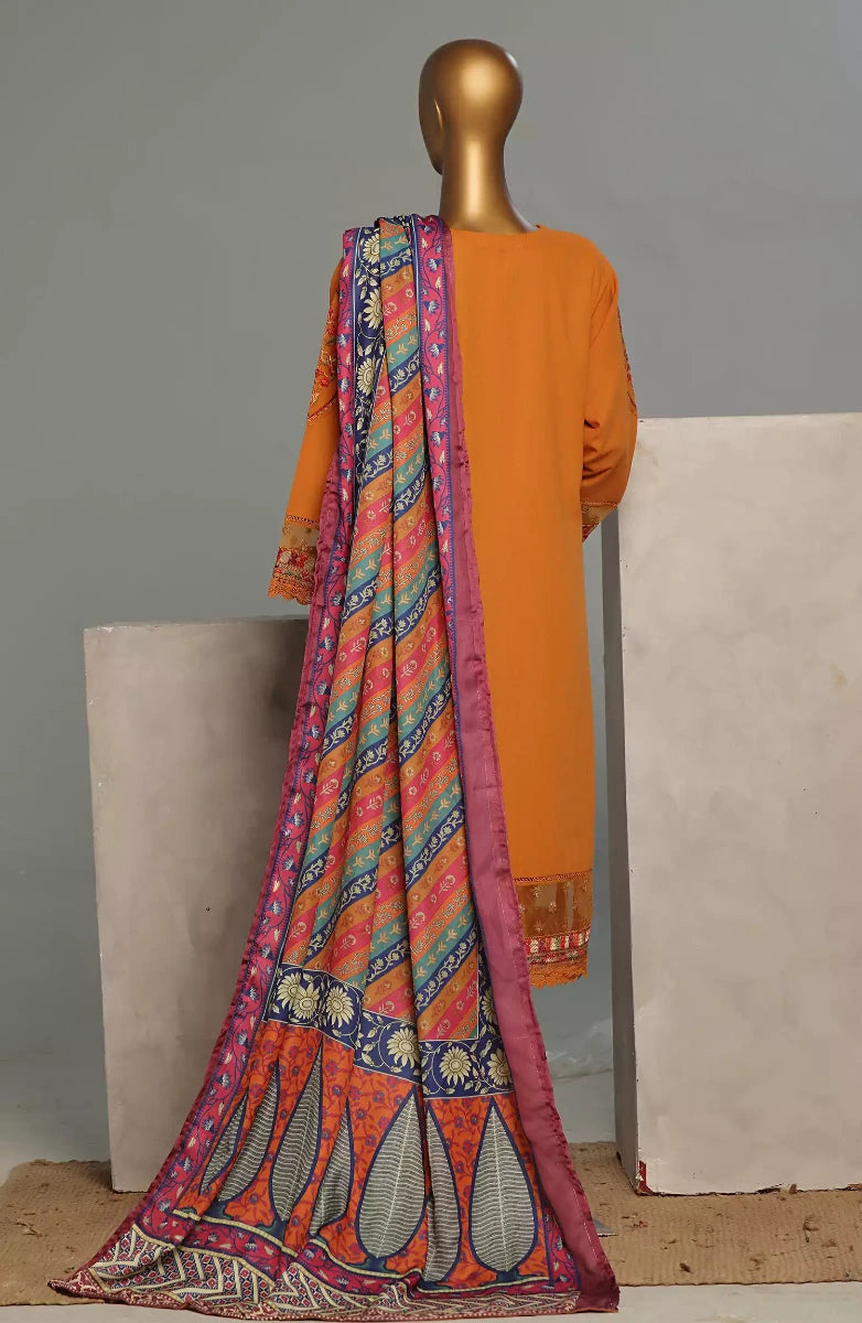 Bloom by Johra Premium Luxury Embroidered Dhanak Unstitched 3 Piece Suit - JW-596 - JH25BLOM - Orange - Winter Collection