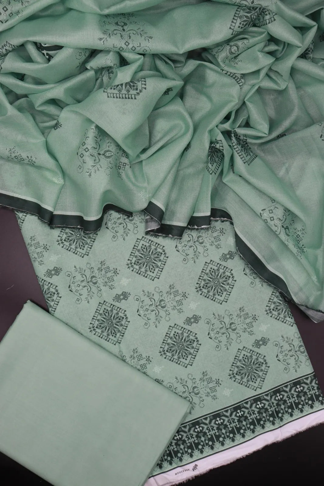 Zauk Printed Wrinkle-free Crepe Stitched 2 Piece Suit - Green Goddess - ZK25CAS - Green - Casual Collection