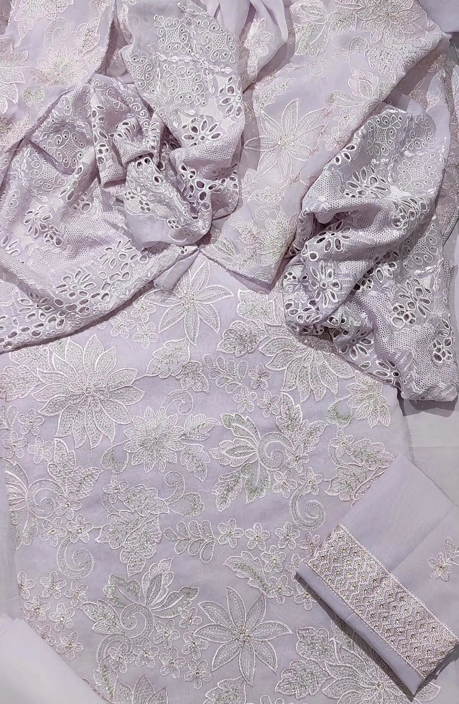 EXCLUSIVE Unstitched Luxury Embroidered Swiss Collection 2024 has been styled in the image for photography and illustrative purposes.