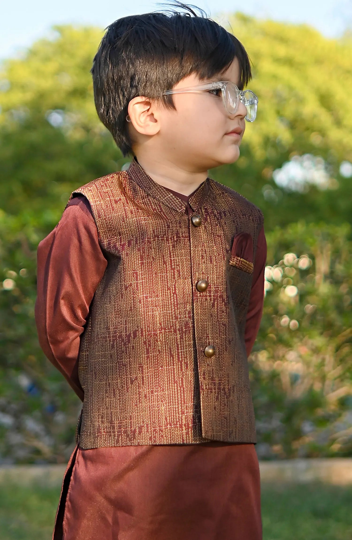 The combination of browns is always a classic and sophisticated choice. The kurta adds a touch of elegance, while the jamawar waistcoat with its intricate detailing and shimmering fabric takes the outfit to another level. It's a perfect choice for special occasions or formal events where you want to make a statement. You'll definitely turn heads and feel like a true fashion icon in this ensemble!