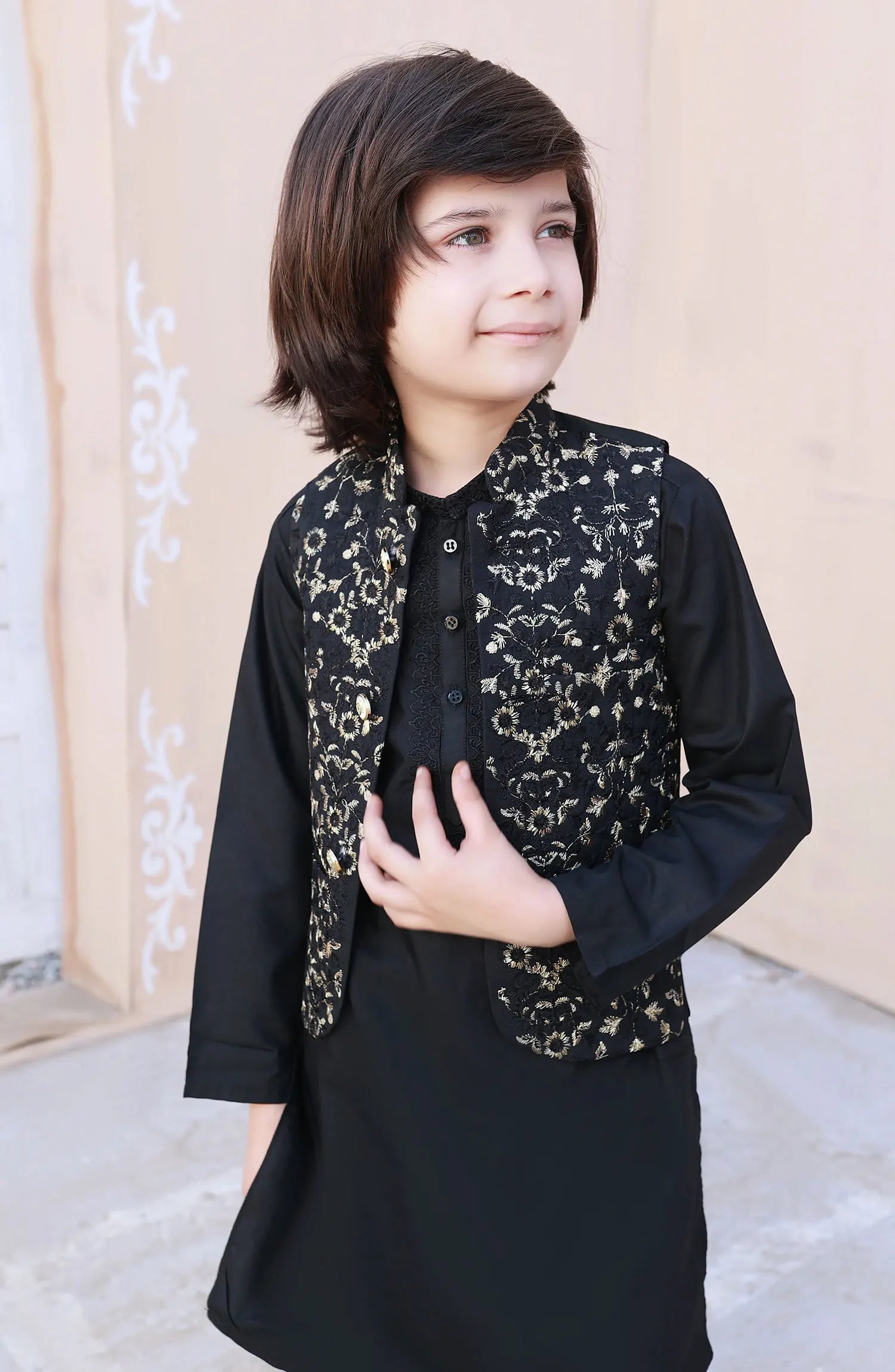 Includes Black embroidered waistcoat & black plain kameez shalwar