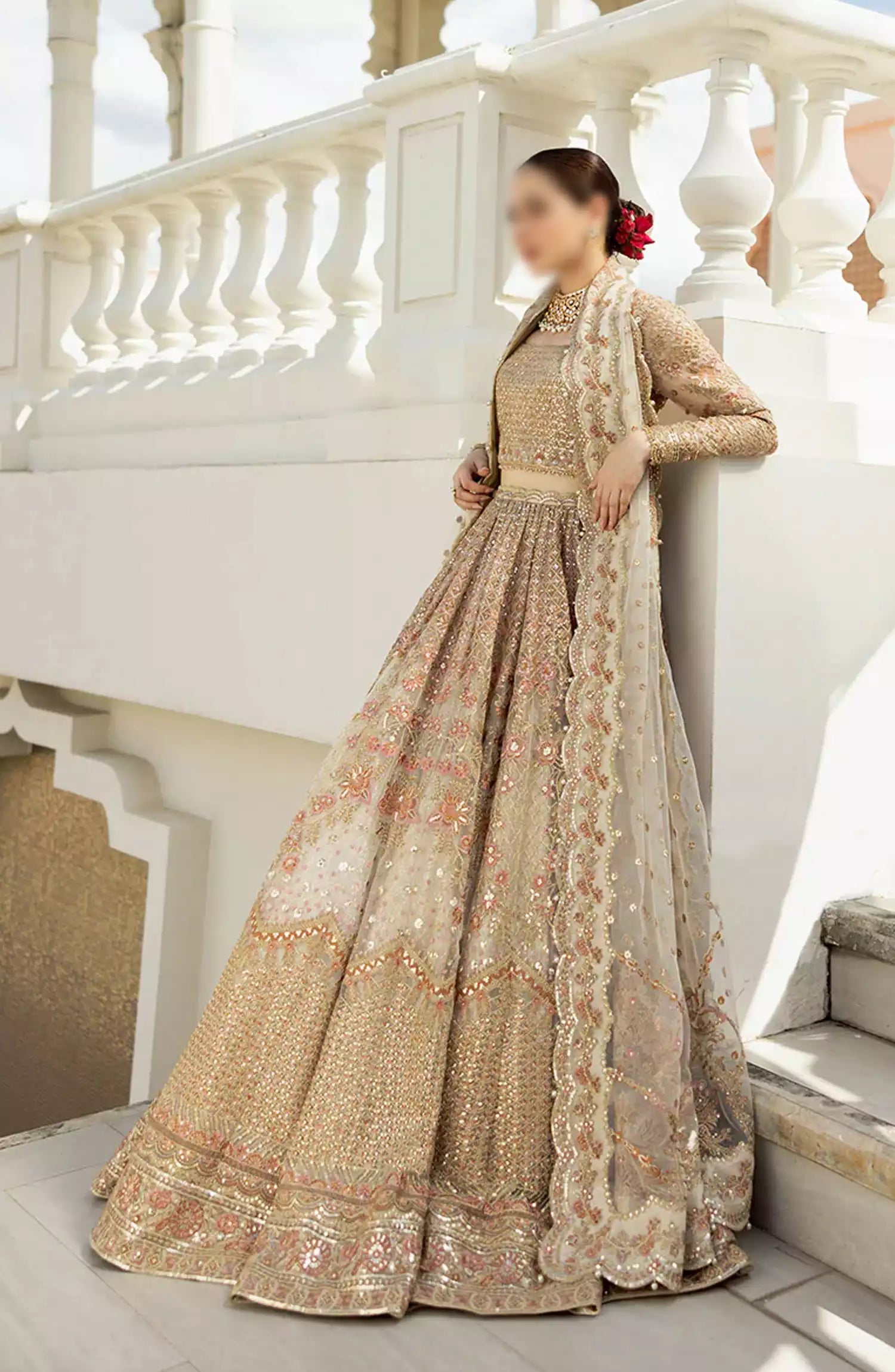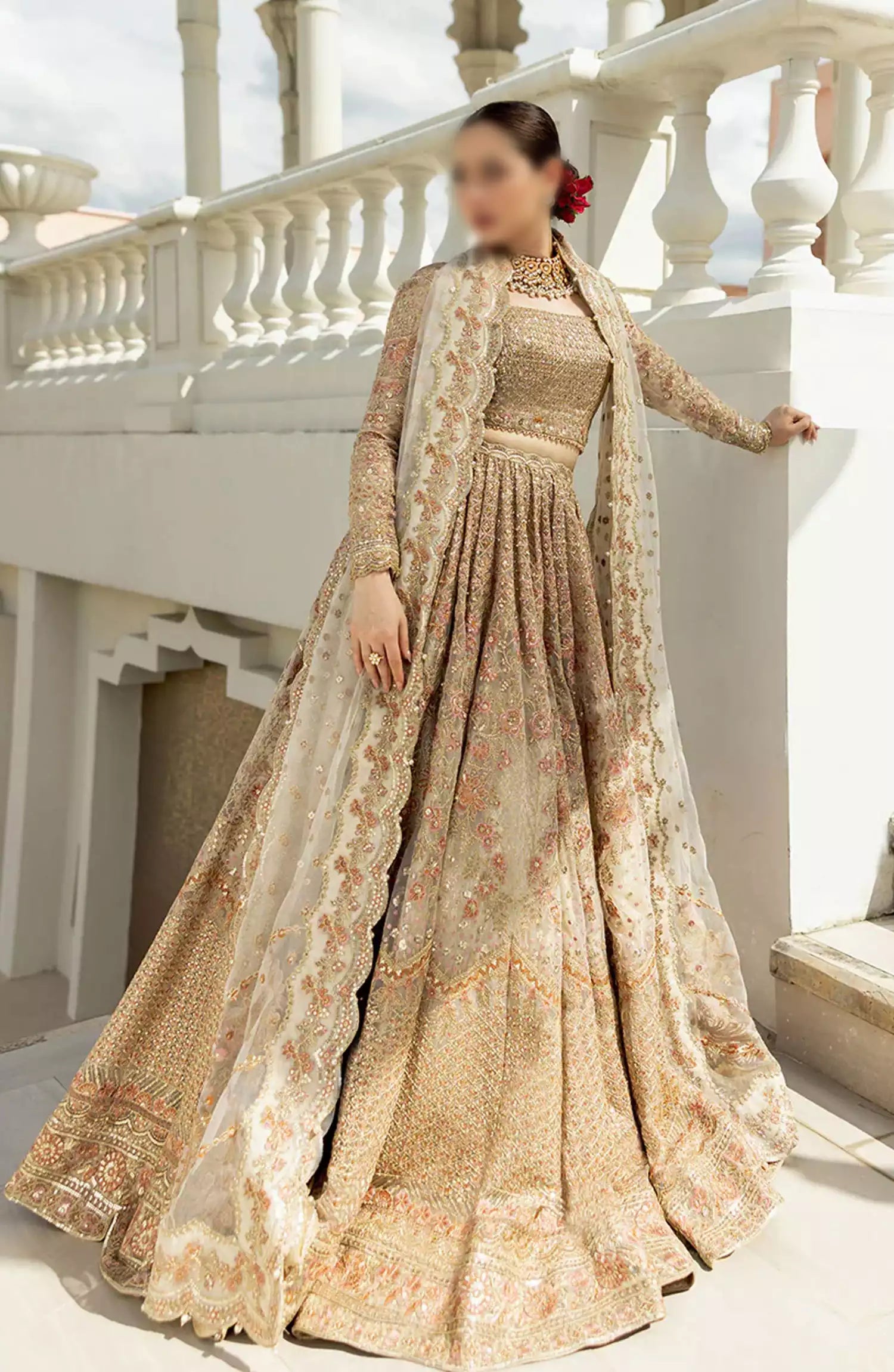 Faiza Saqlain Neorah Unstitched Wedding Festive 2024 has been styled in the image for photography and illustrative purposes.
