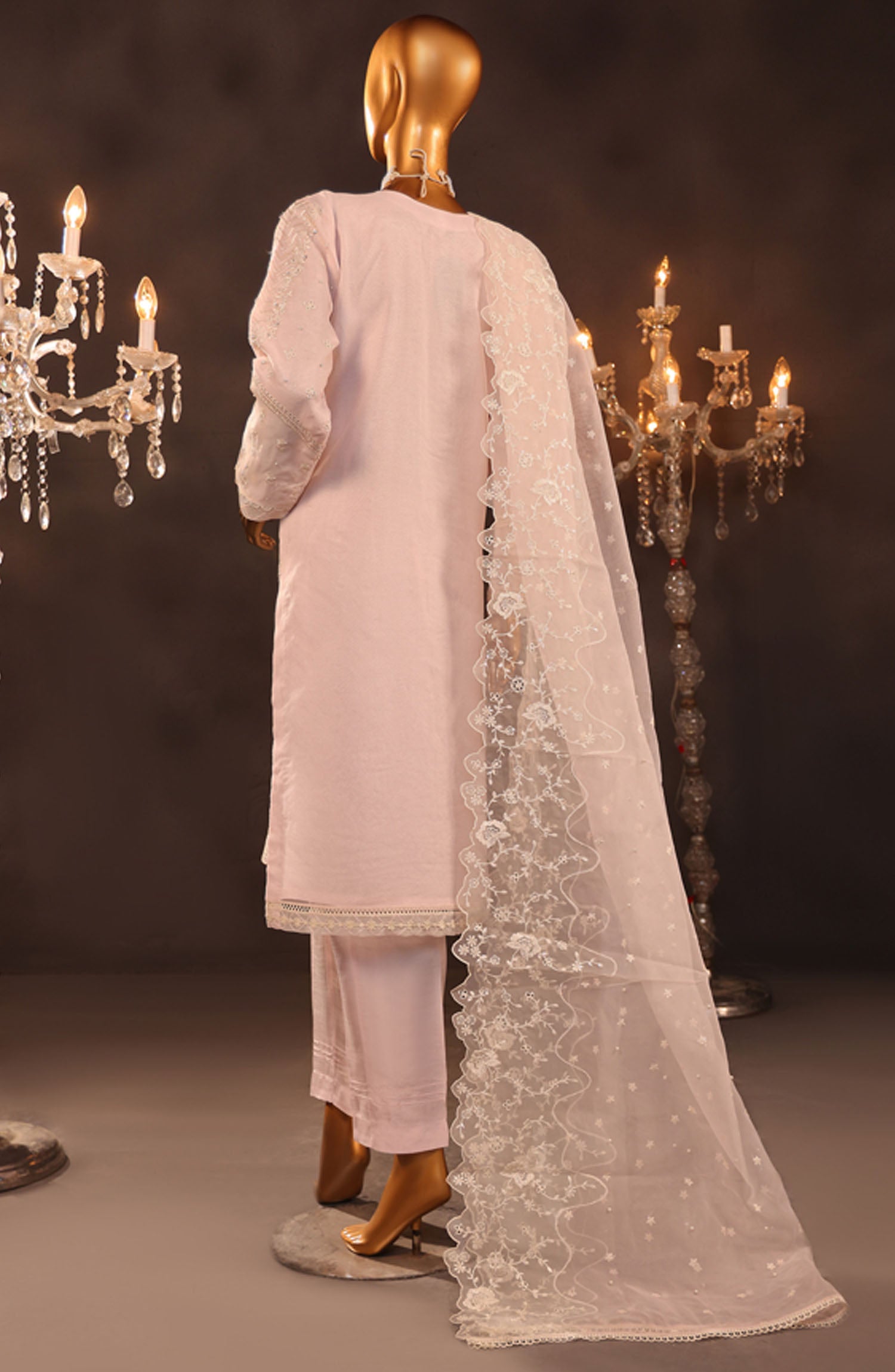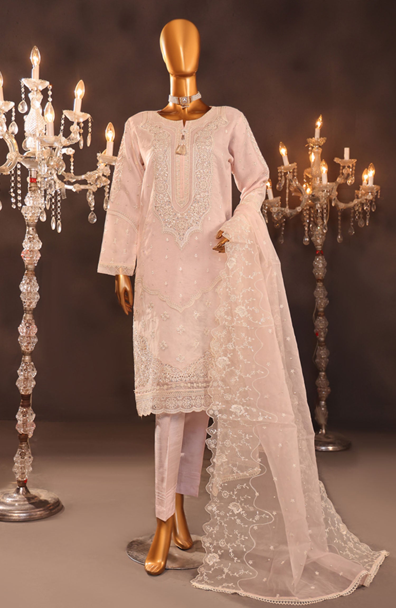 The standard style comes as a long-sleeved kameez with dupatta and trouser/shawlar.