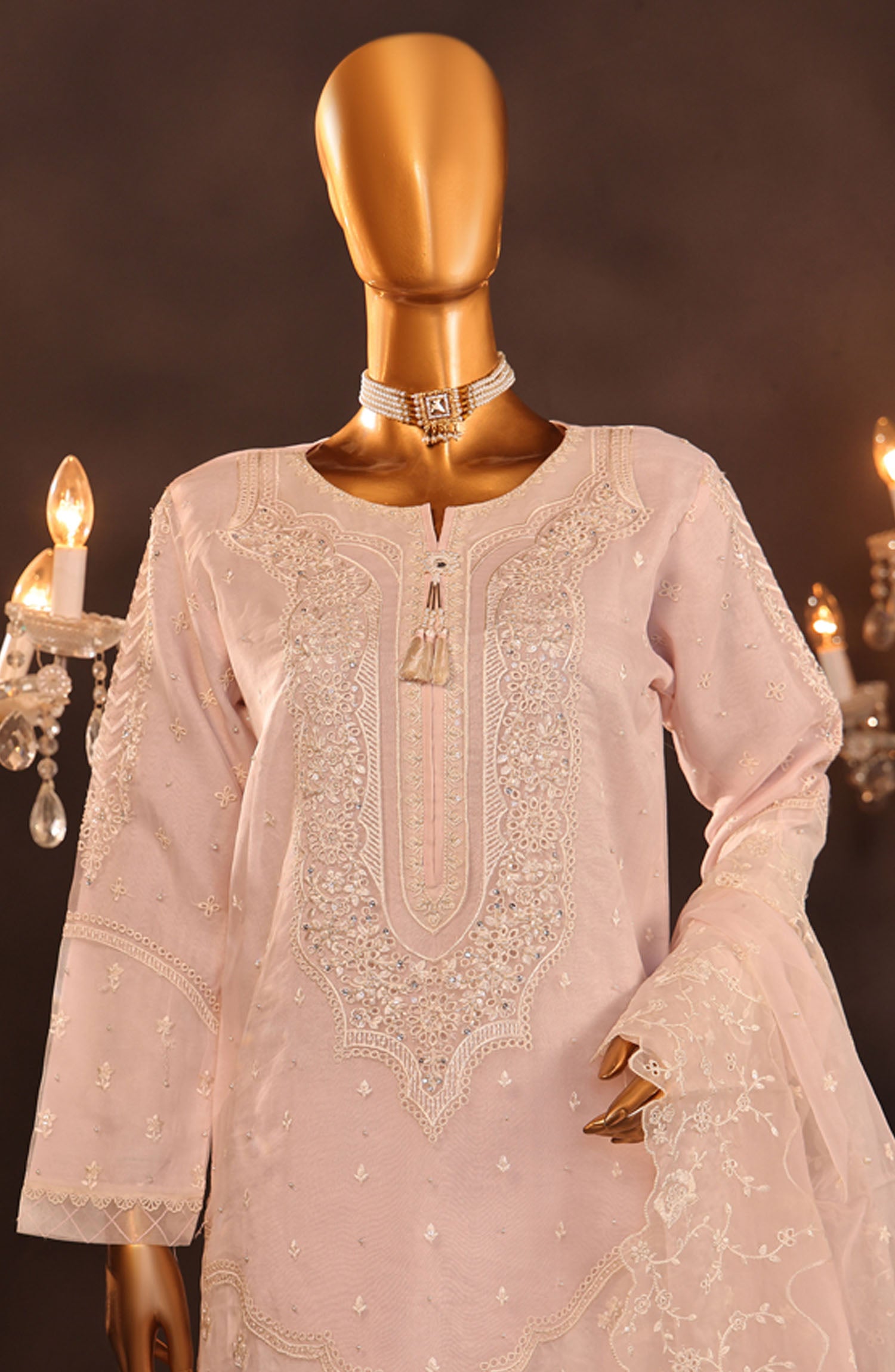 Embroidered Organza Shirt With Highlights Of Embroidered Plain