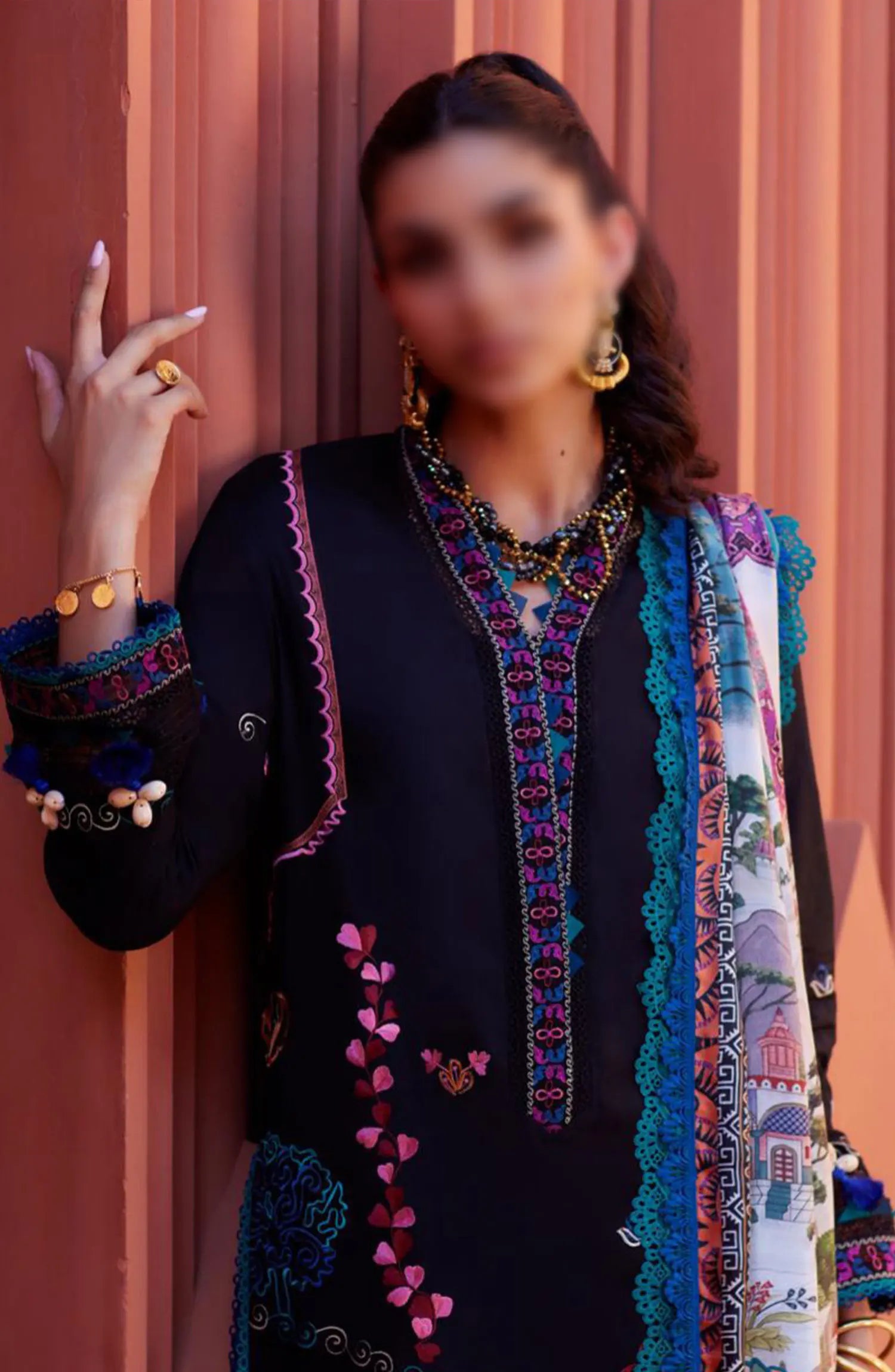 Farah Talib Aziz Suay Luxury Unstitched Collection 2024 has been styled in the image for photography and illustrative purposes.
