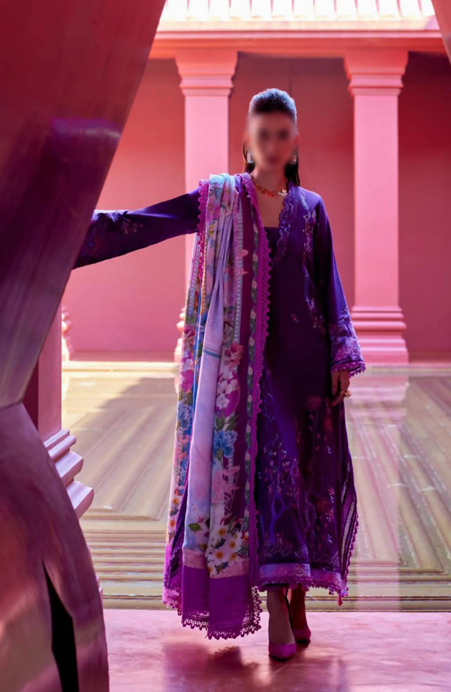 Farah Talib Aziz Suay Luxury Unstitched Collection 2024 has been styled in the image for photography and illustrative purposes.