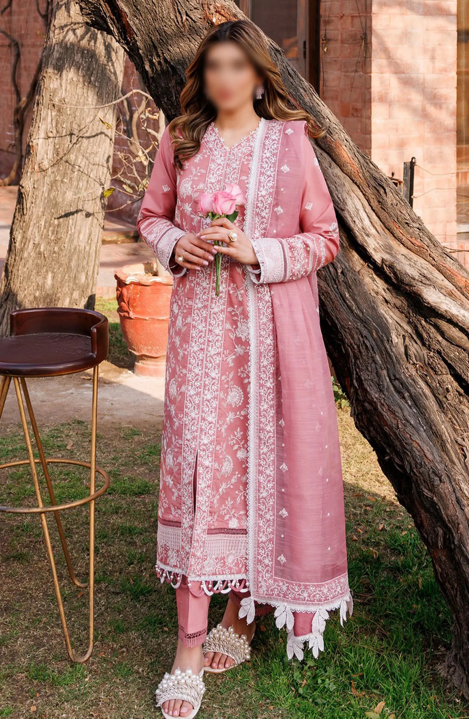 Farasha Dastoor Embroidered Lawn Collection 2024 has been styled in the image for photography and illustrative purposes.