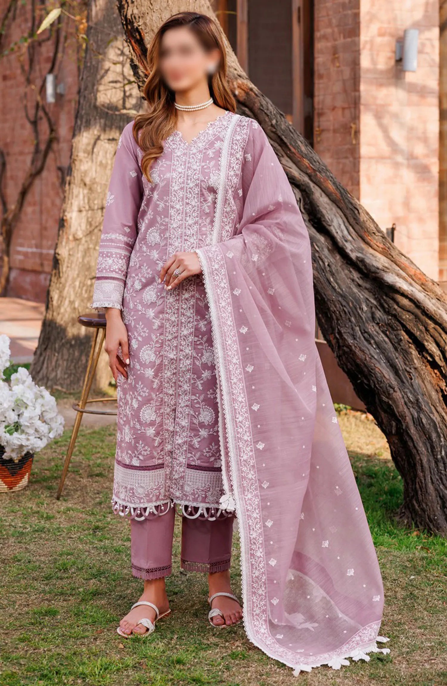 Farasha Dastoor Embroidered Lawn Collection 2024 has been styled in the image for photography and illustrative purposes.