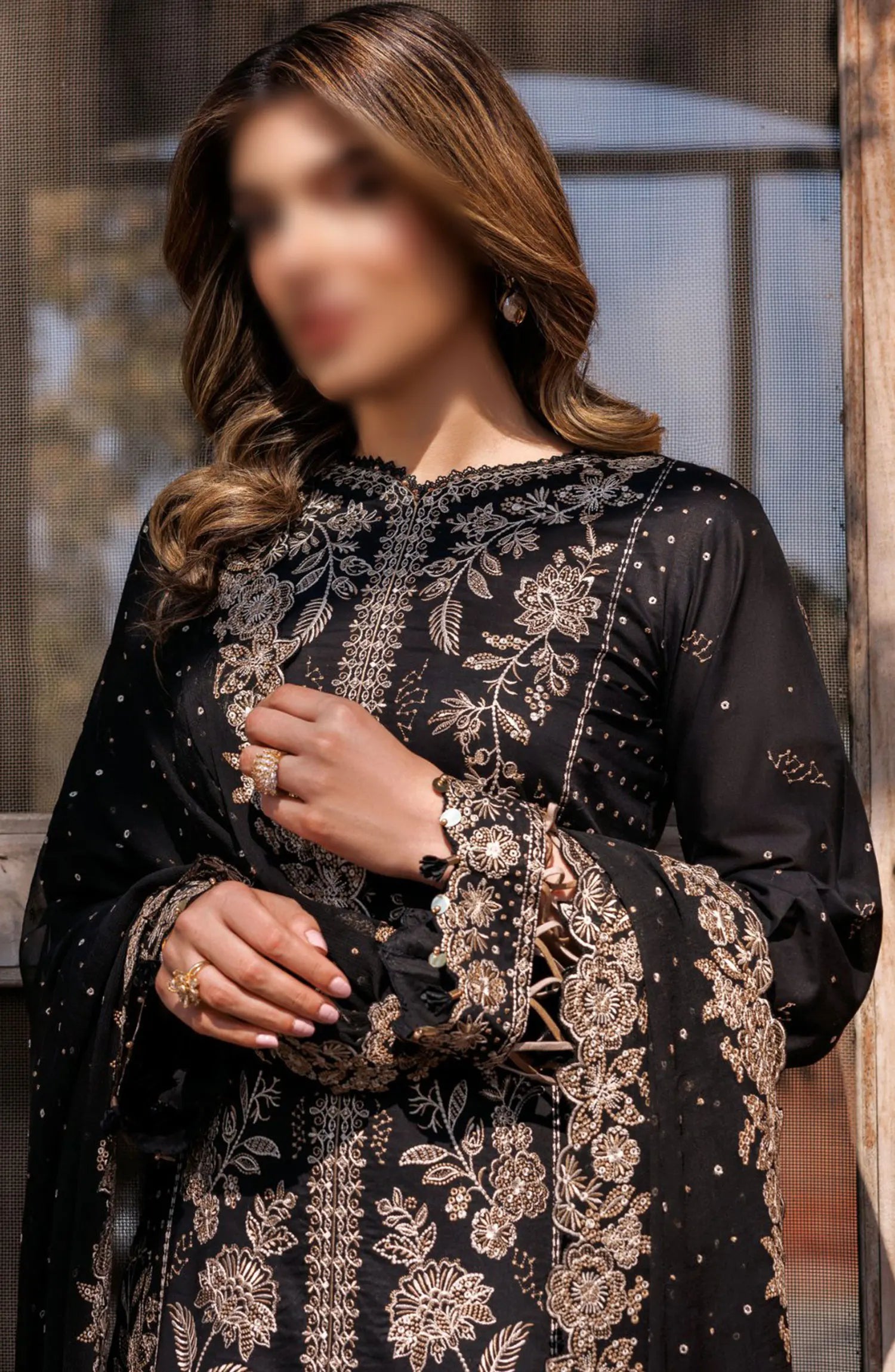 Farasha Kaavish Eid Festive Lawn SS Collection 2024 has been styled in the image for photography and illustrative purposes.