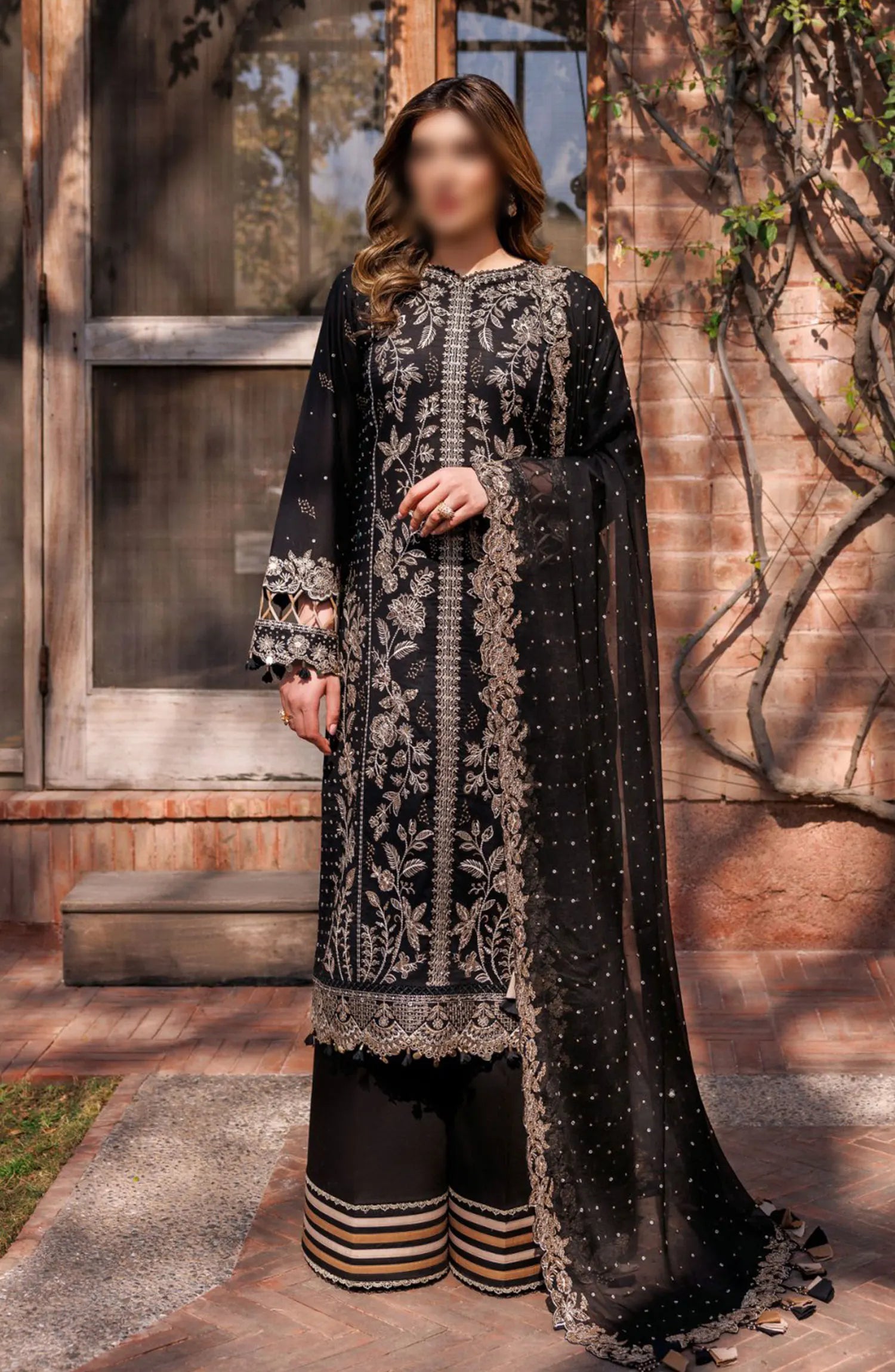The standard style comes as a long-sleeved kameez with dupatta and trouser/shawlar.