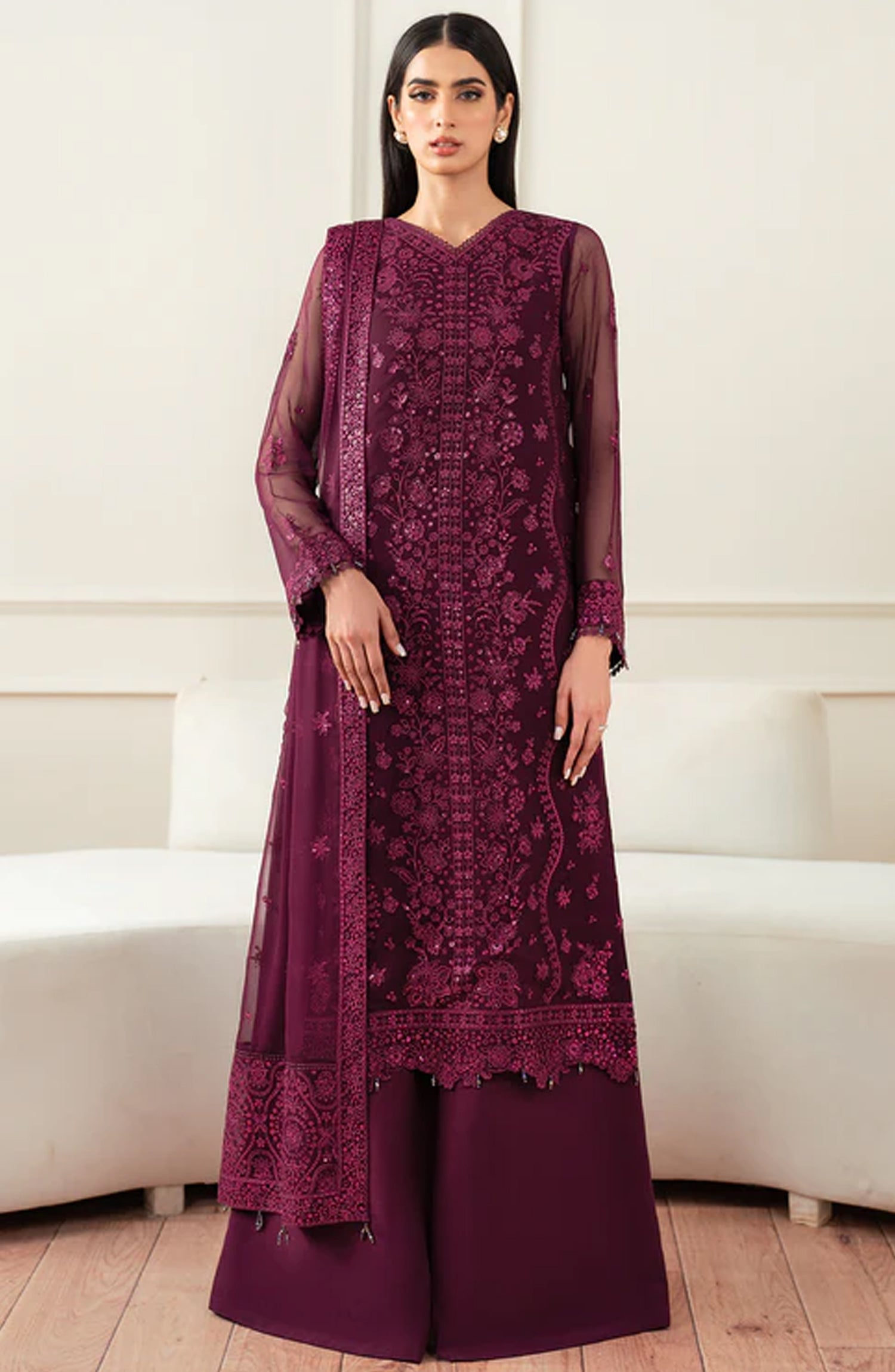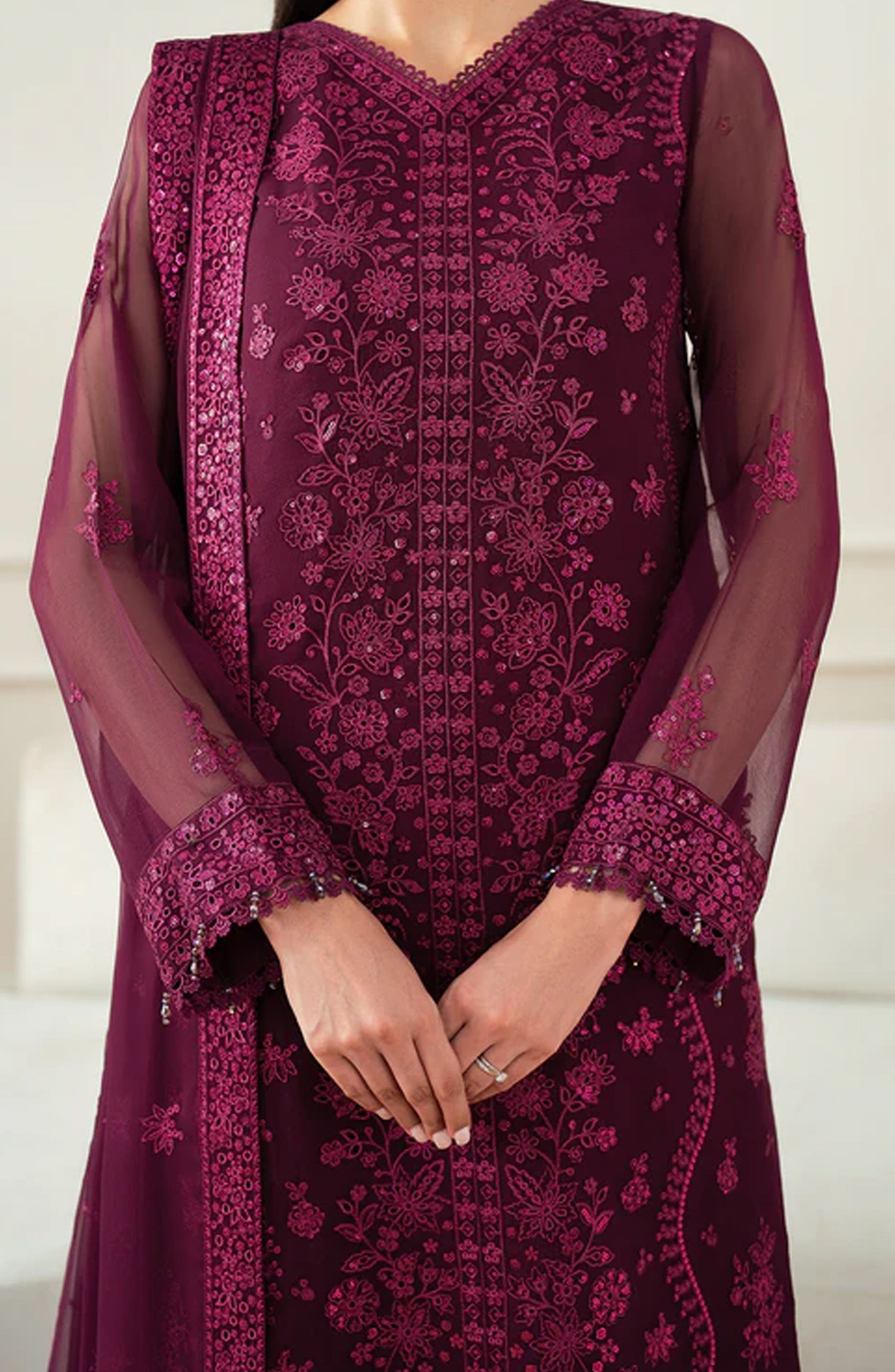 Borer Embroidered Chiffon Sleeves