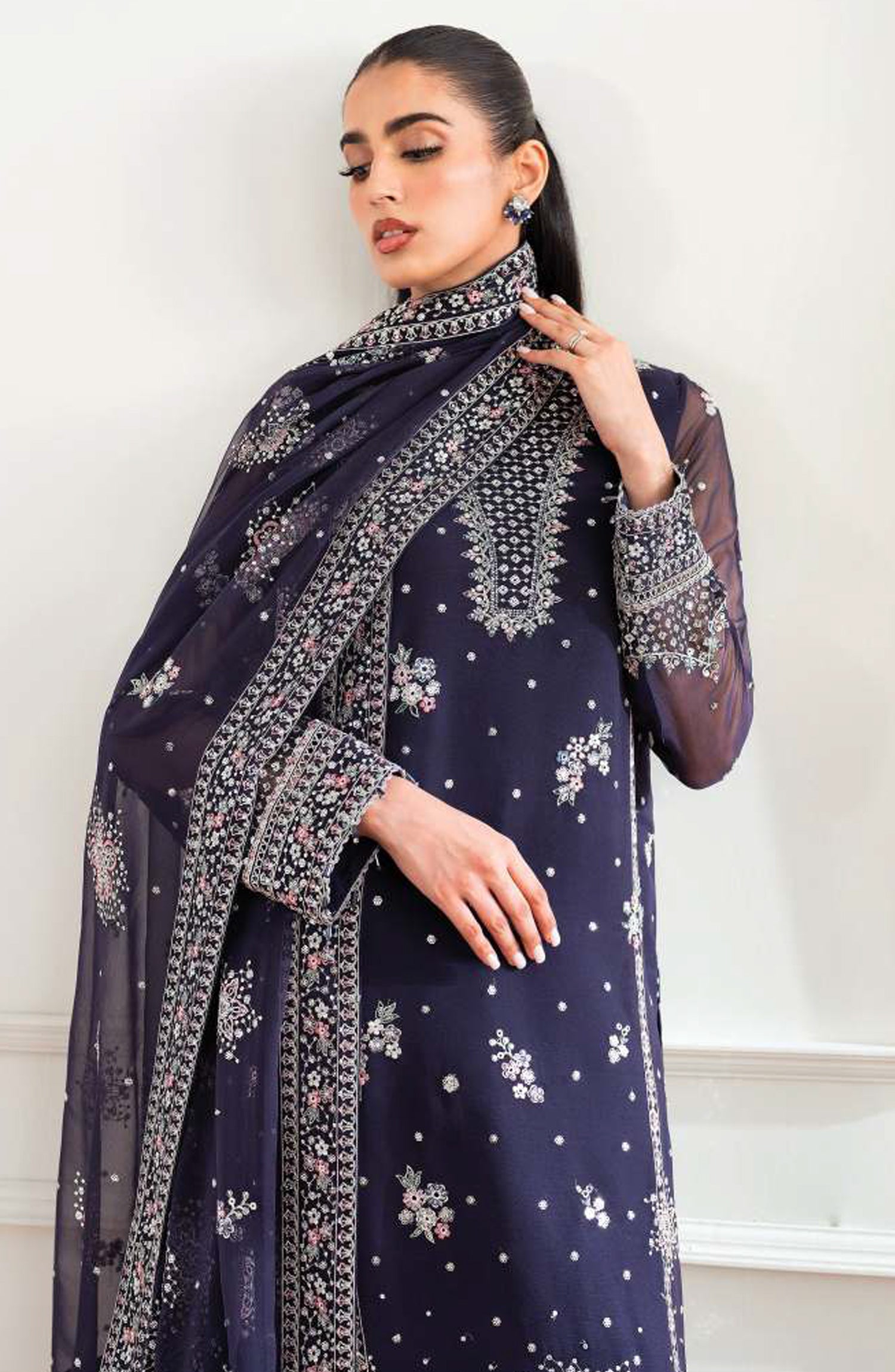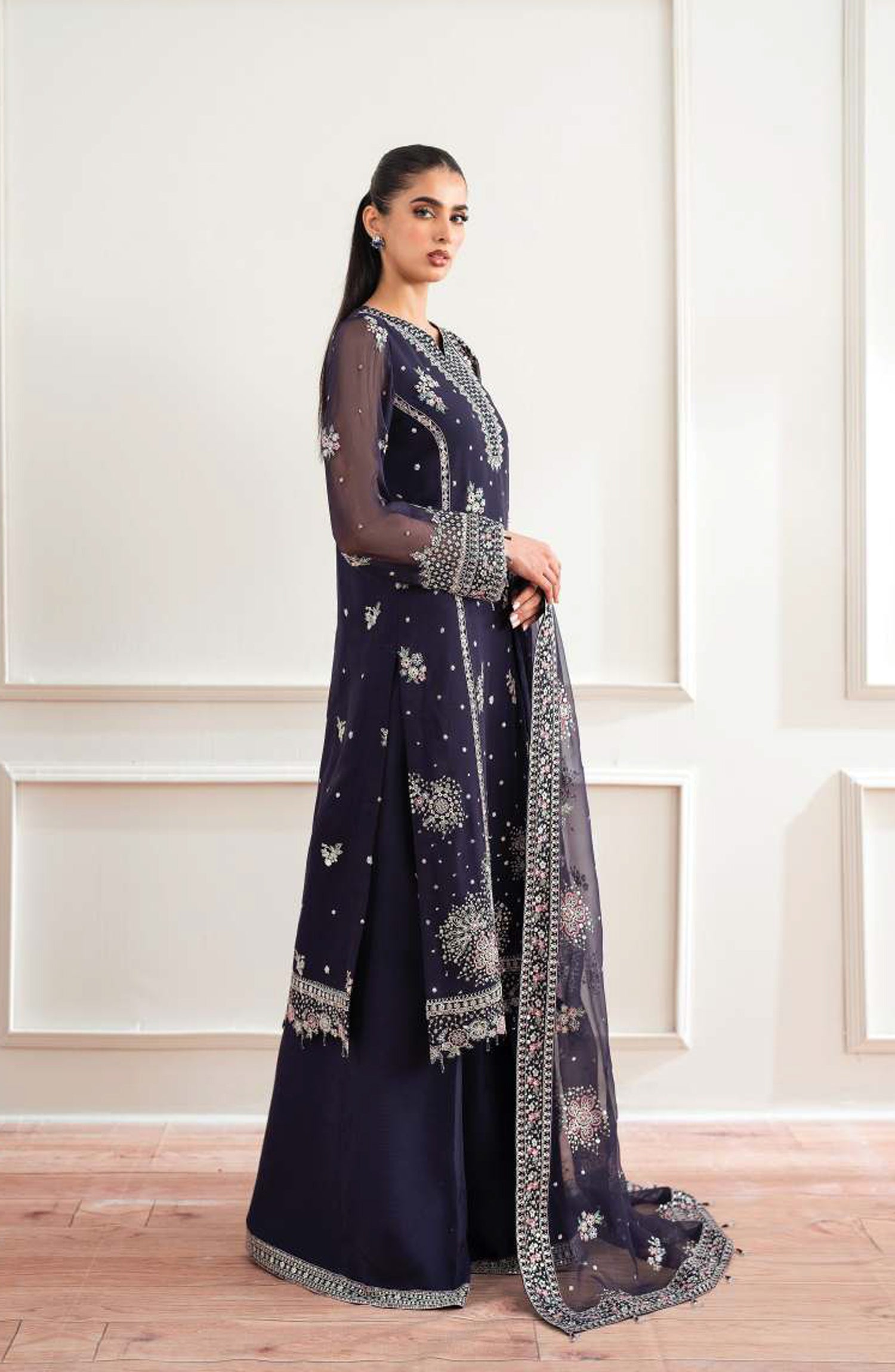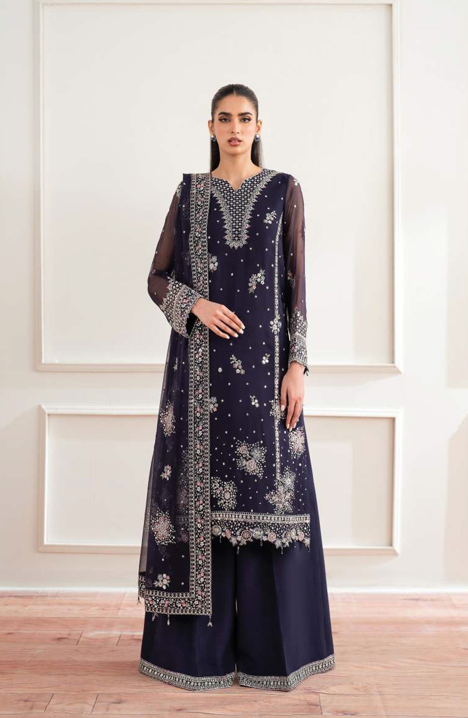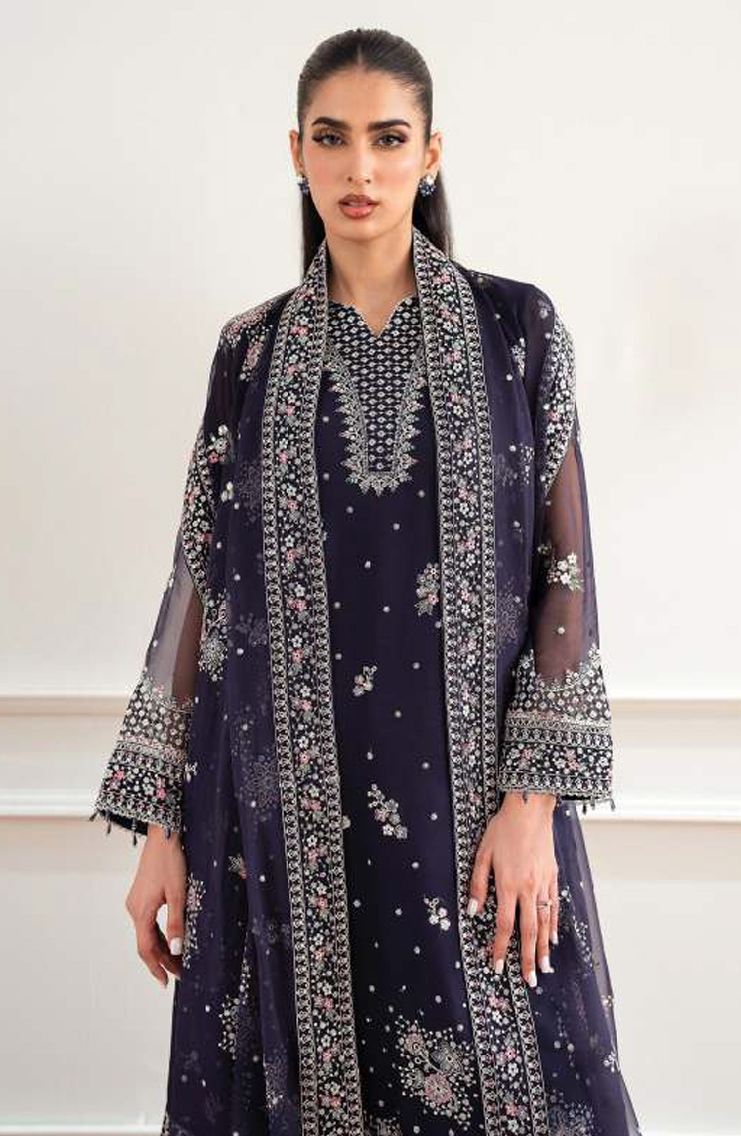 Embroidered Chiffon Front