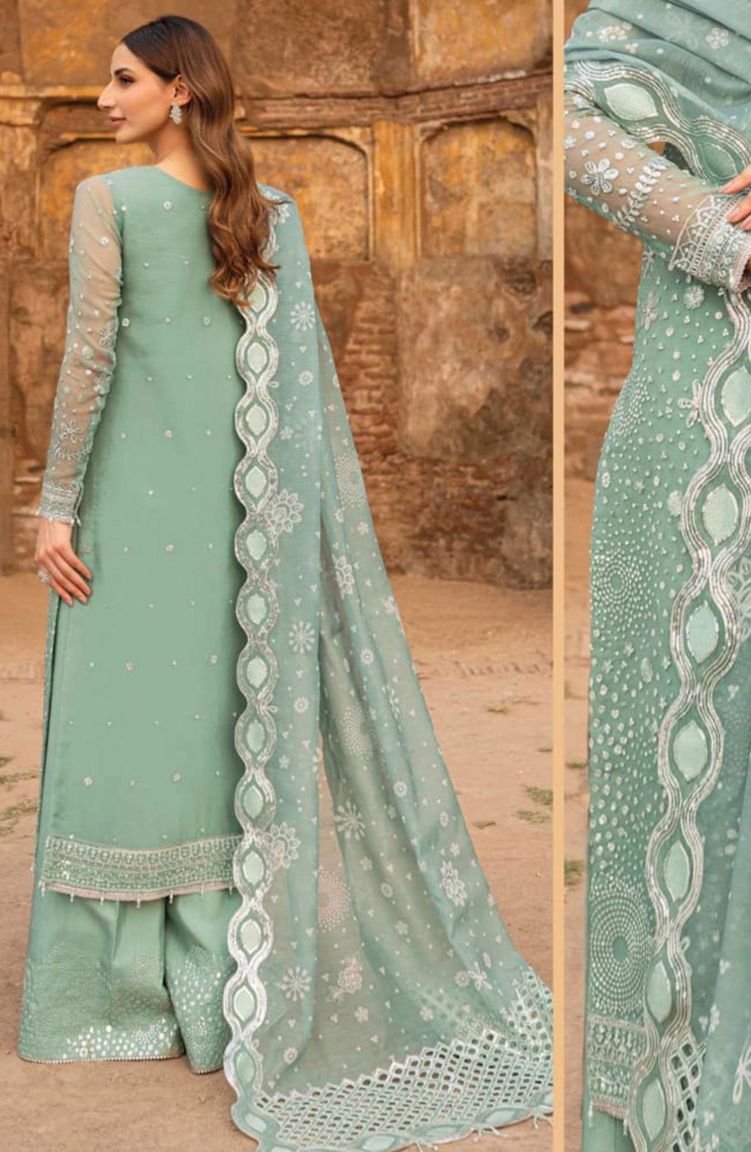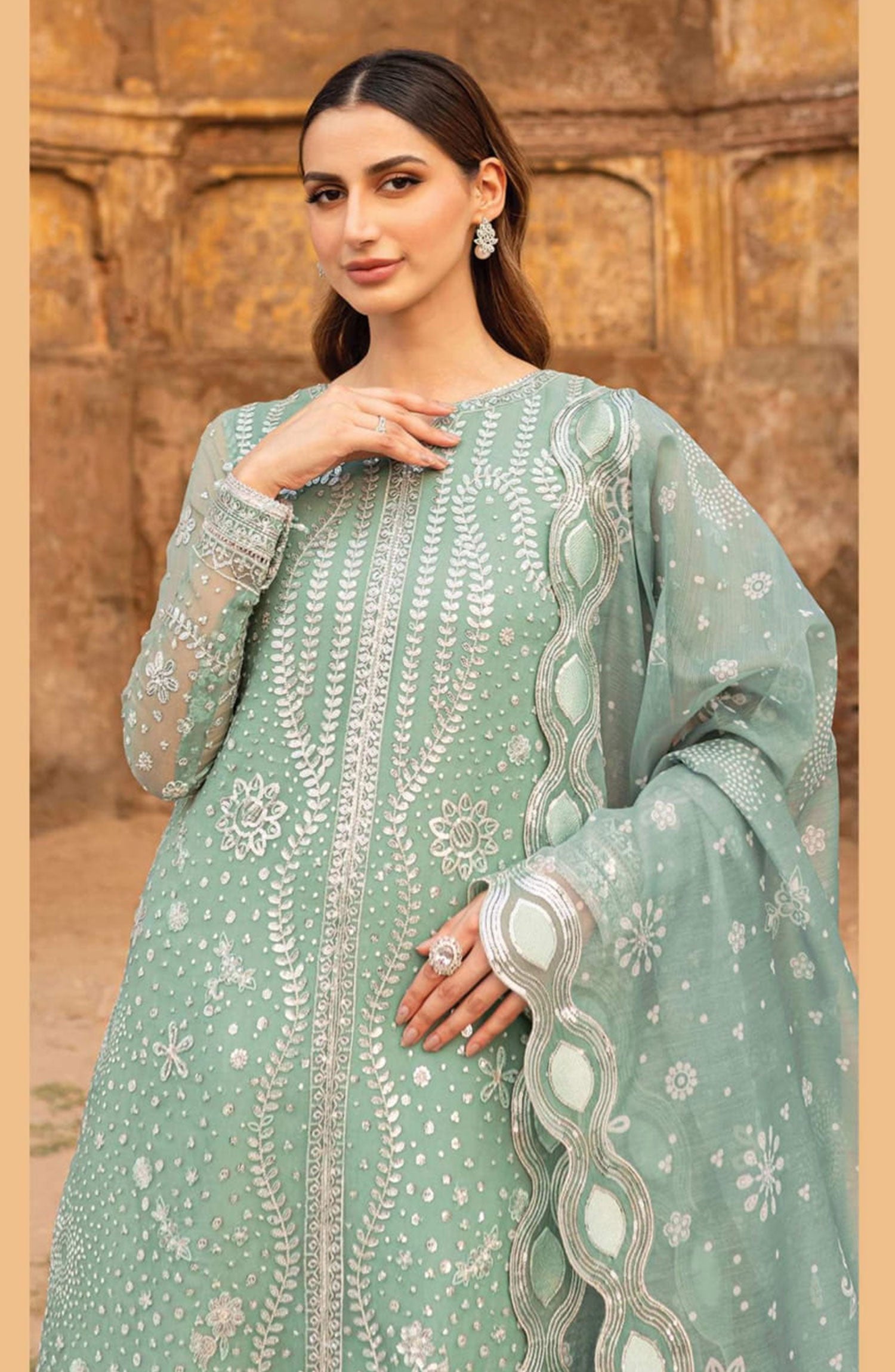 Farasha Ritzier Unstitched Luxury Collection has been styled in the image for photography and illustrative purposes.