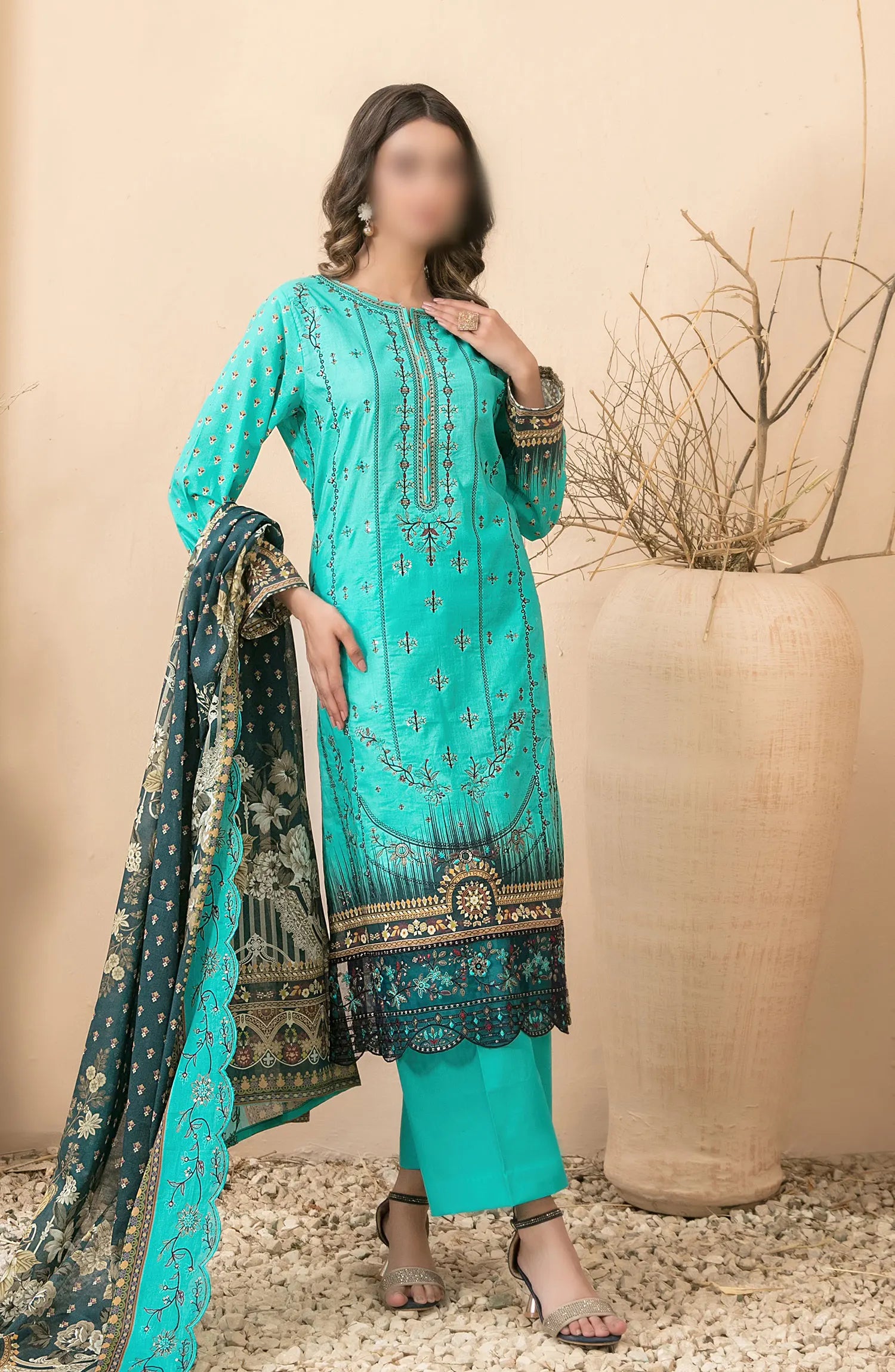 Un-Stitched Embroidered Digital Printed Lawn Shirt