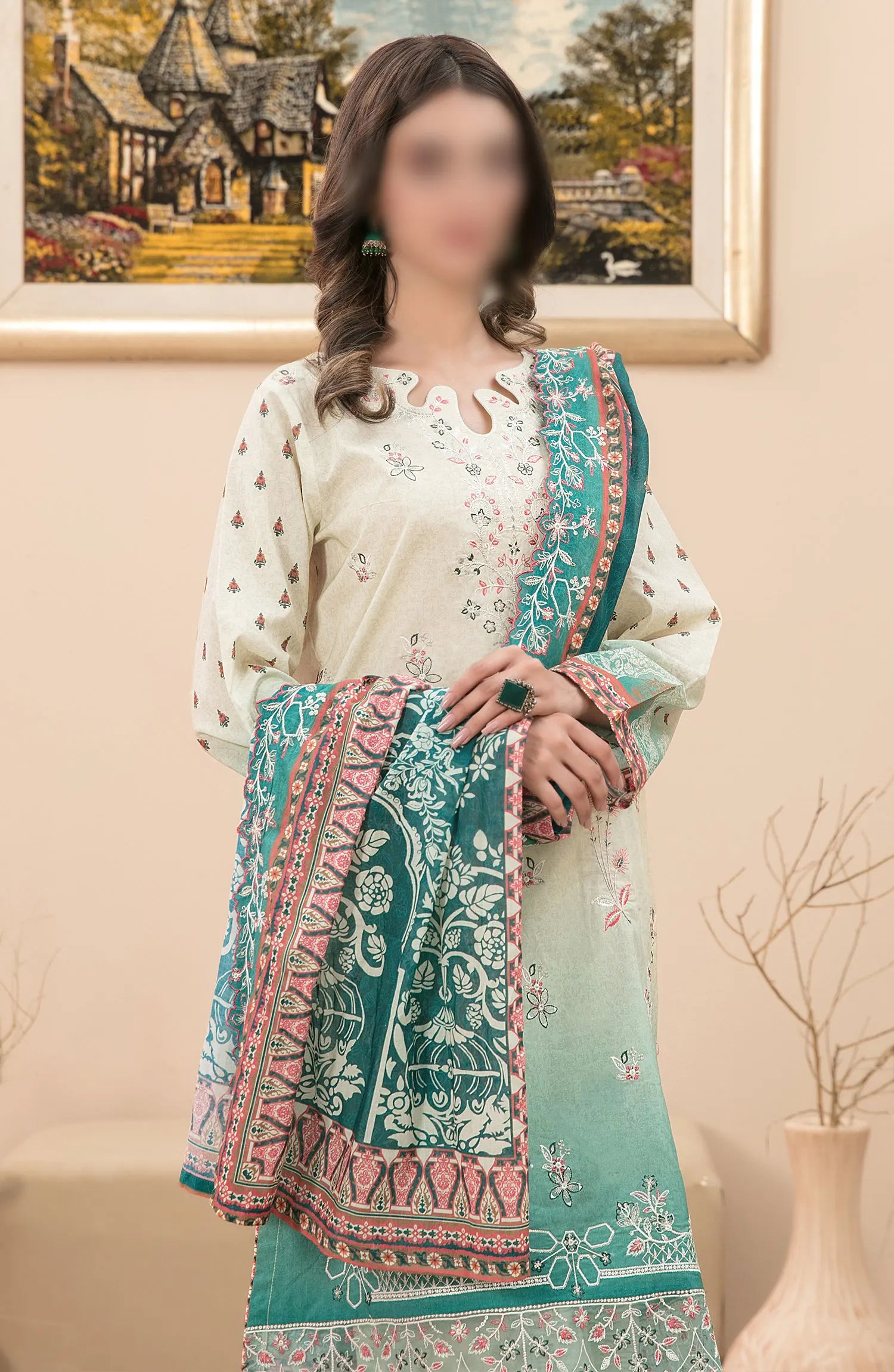 Un-Stitched Embroidered Digital Printed Lawn Shirt