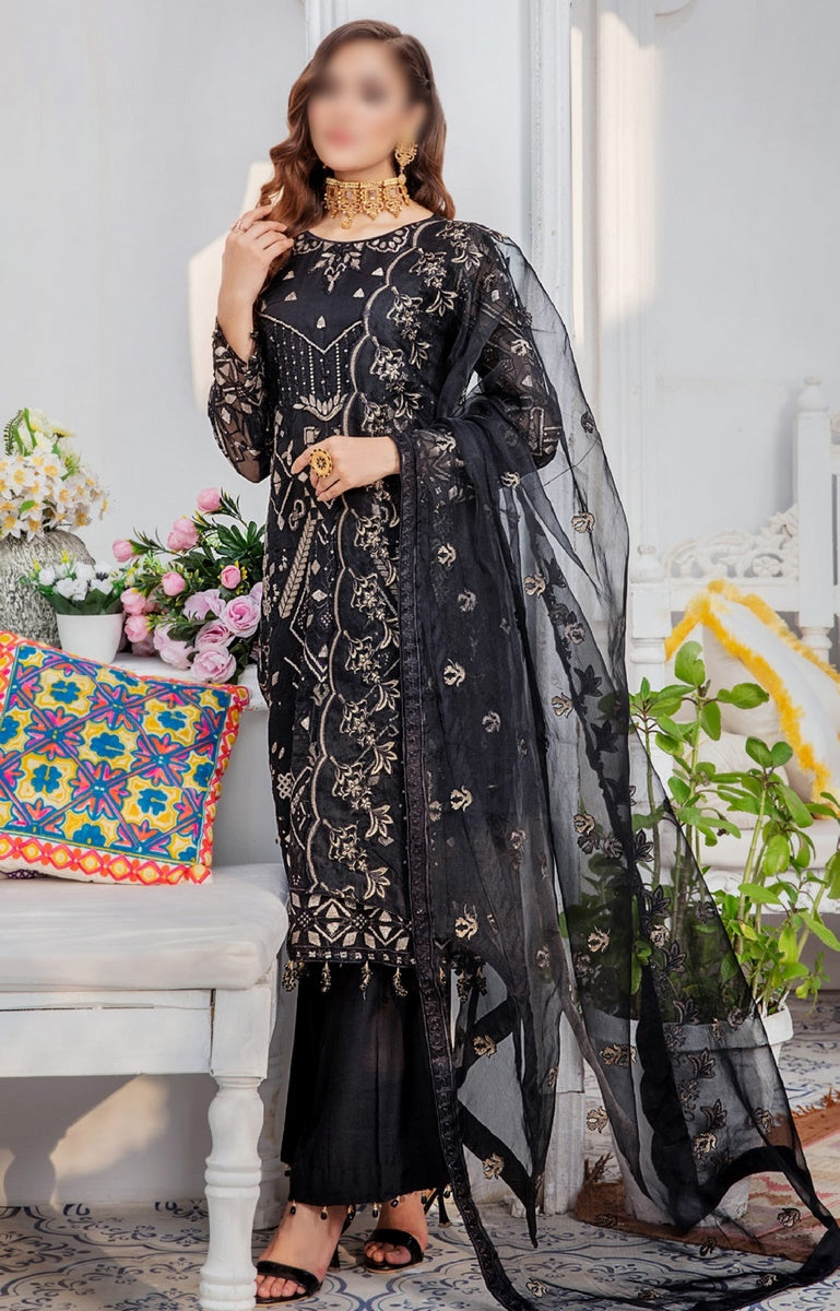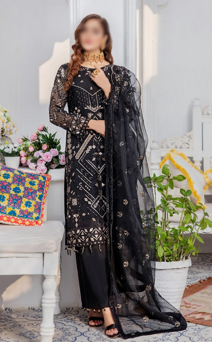 The standard style comes as a long-sleeved kameez with dupatta and trouser/shalwar.