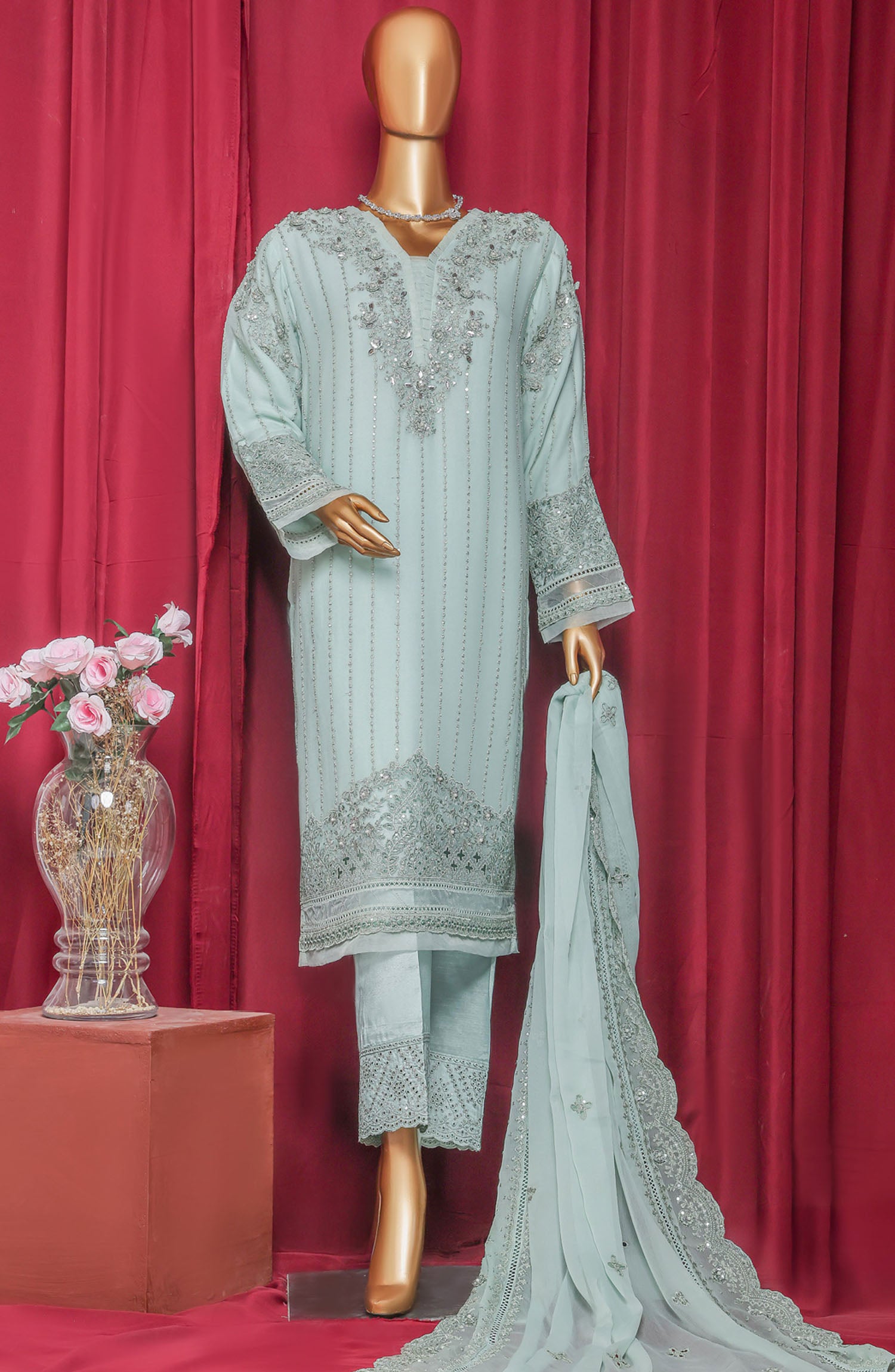 Home Fasaane by HZ Textile Chiffon Stitched 3 Piece Suit - HZK-212 Pastel Green - HZ25HZKV9 - Formal Collection