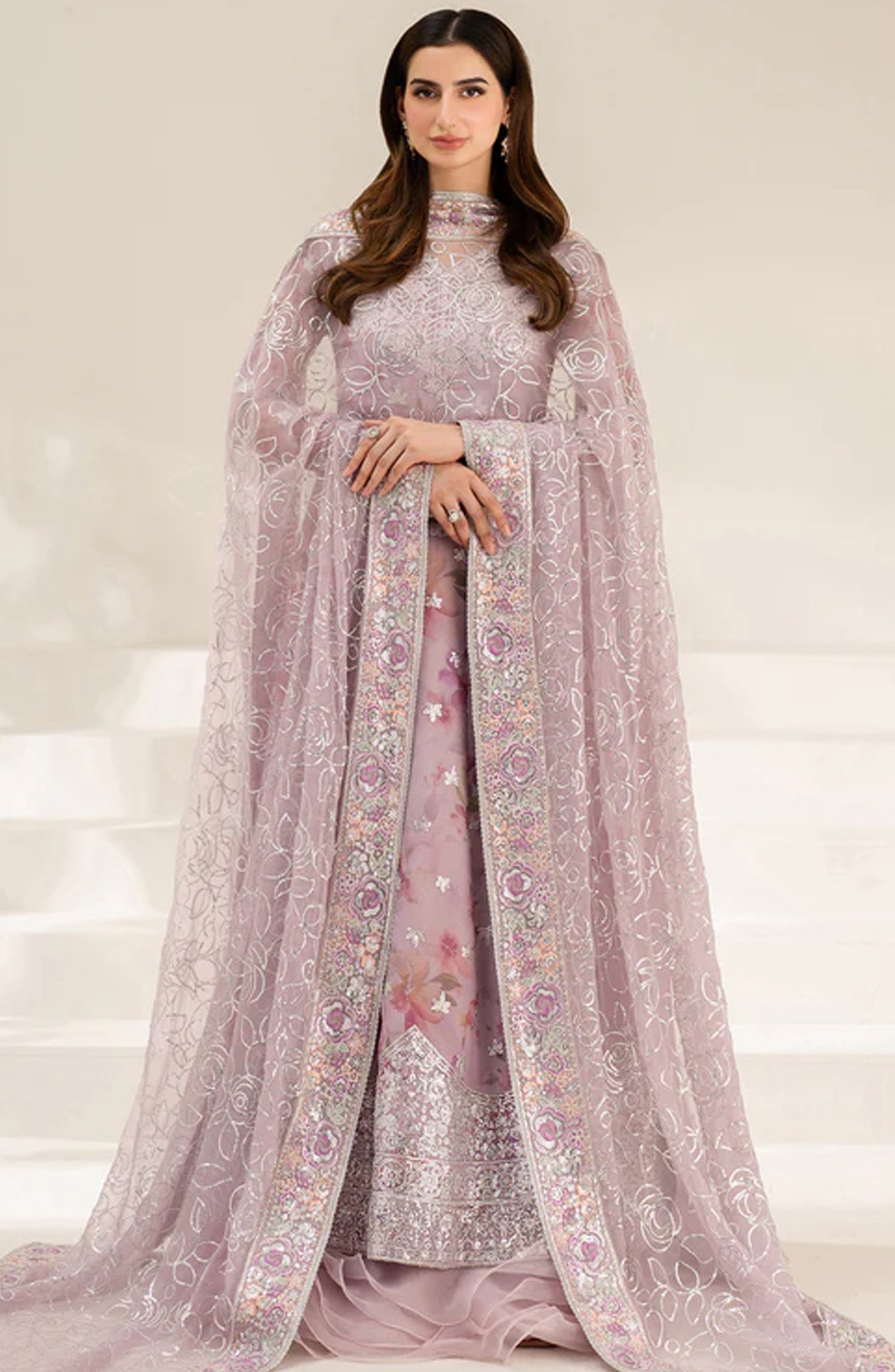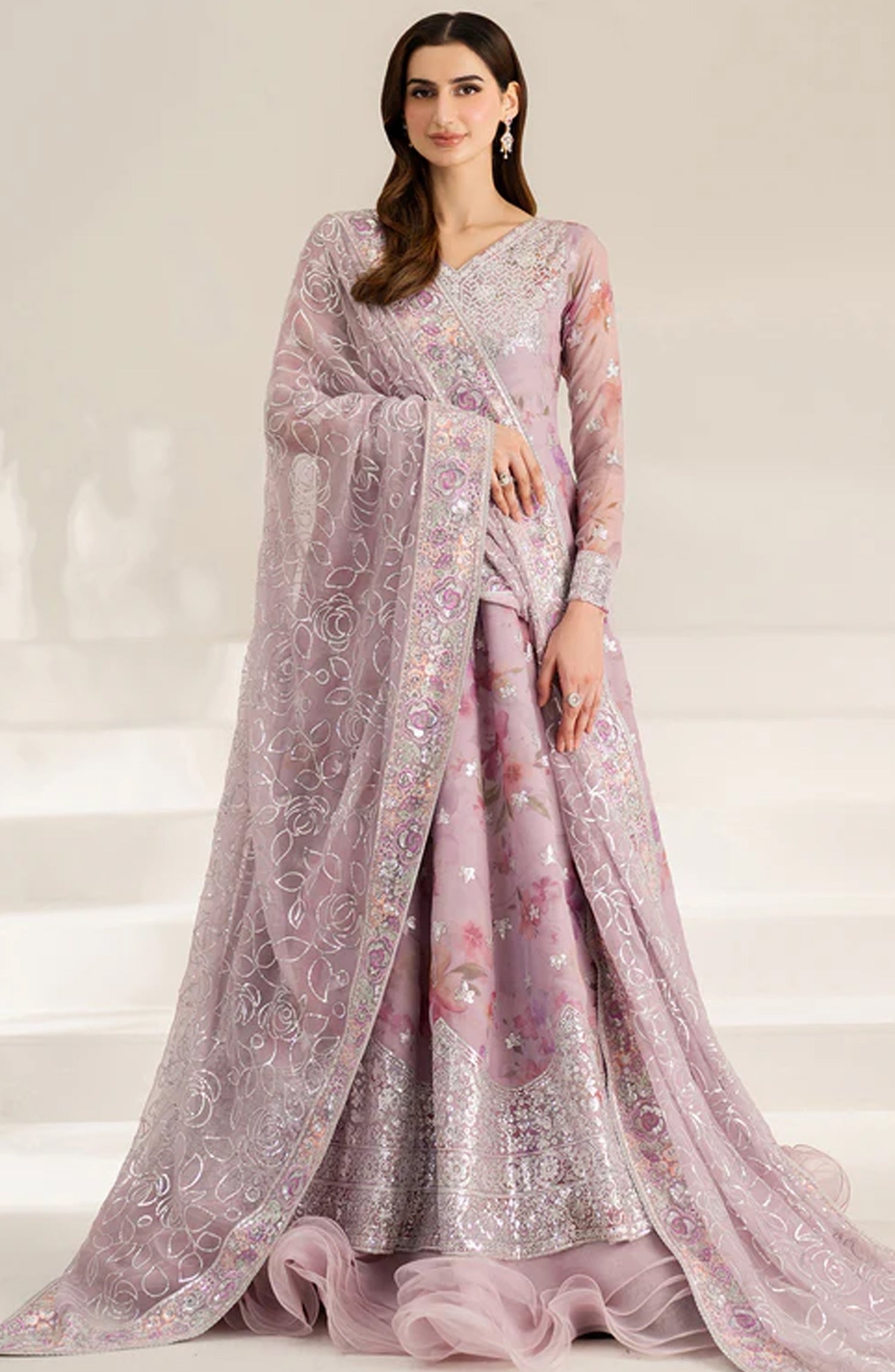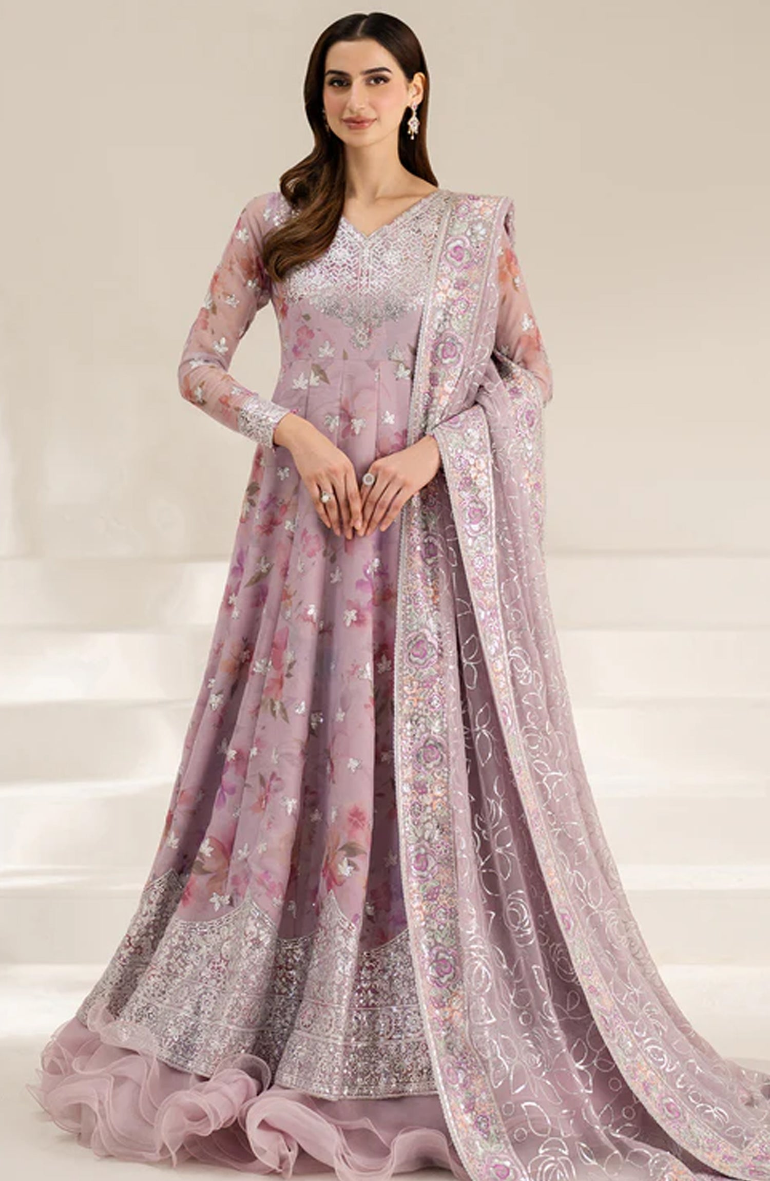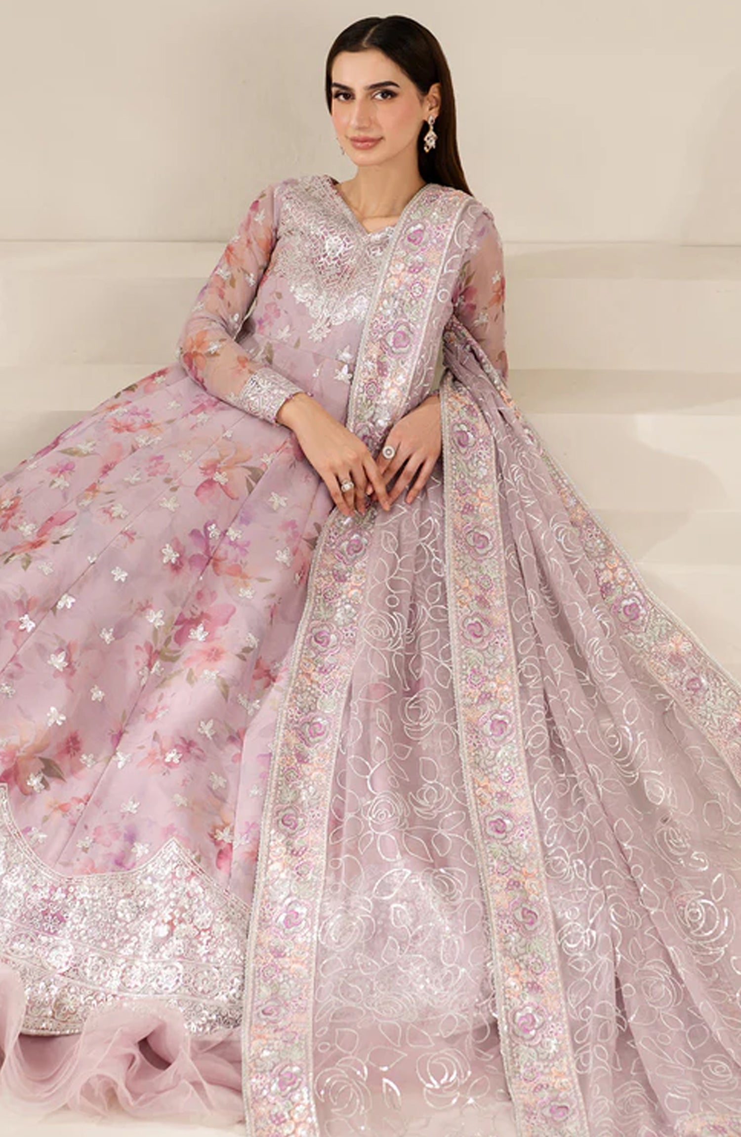 Digital Printed Embroidered Chiffon Sleeves