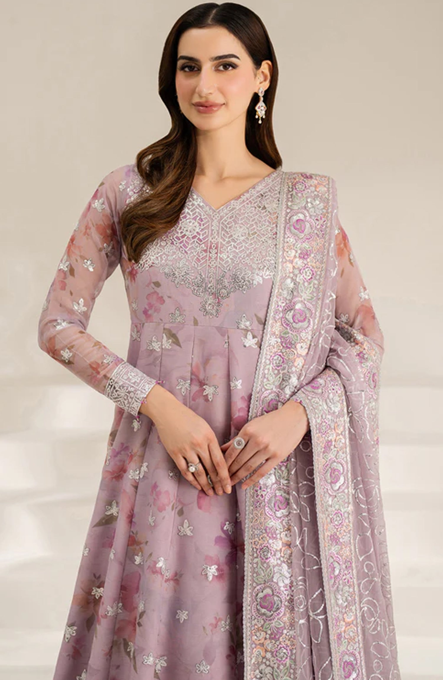 Digital Printed Embroidered Chiffon Front & Back Bodice