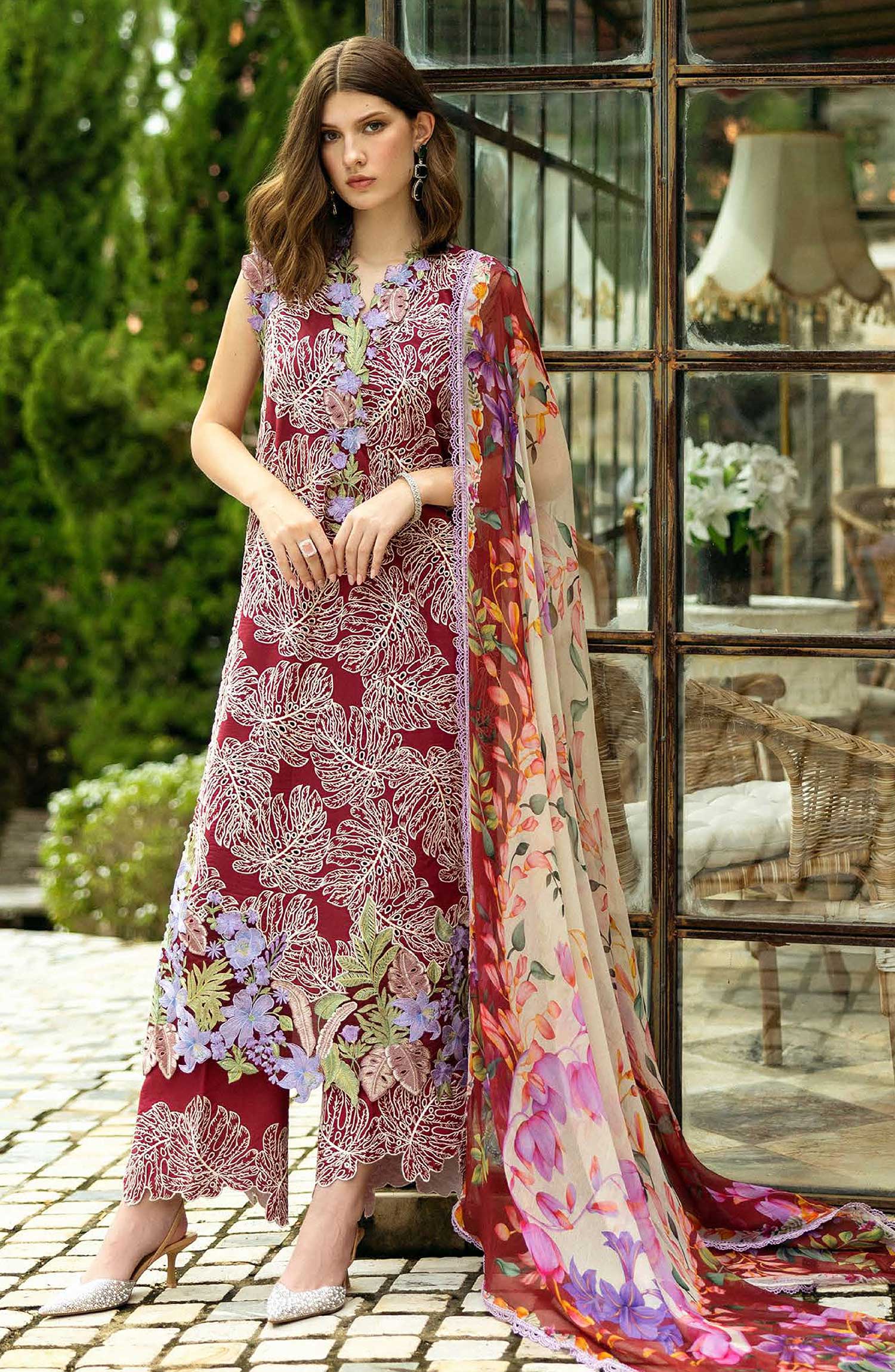 Flanerie by Roheenaz Embroidered Lawn Unstitched 3 Piece - RNZ-03A Gabriella - RH25F - Red - Summer Collection