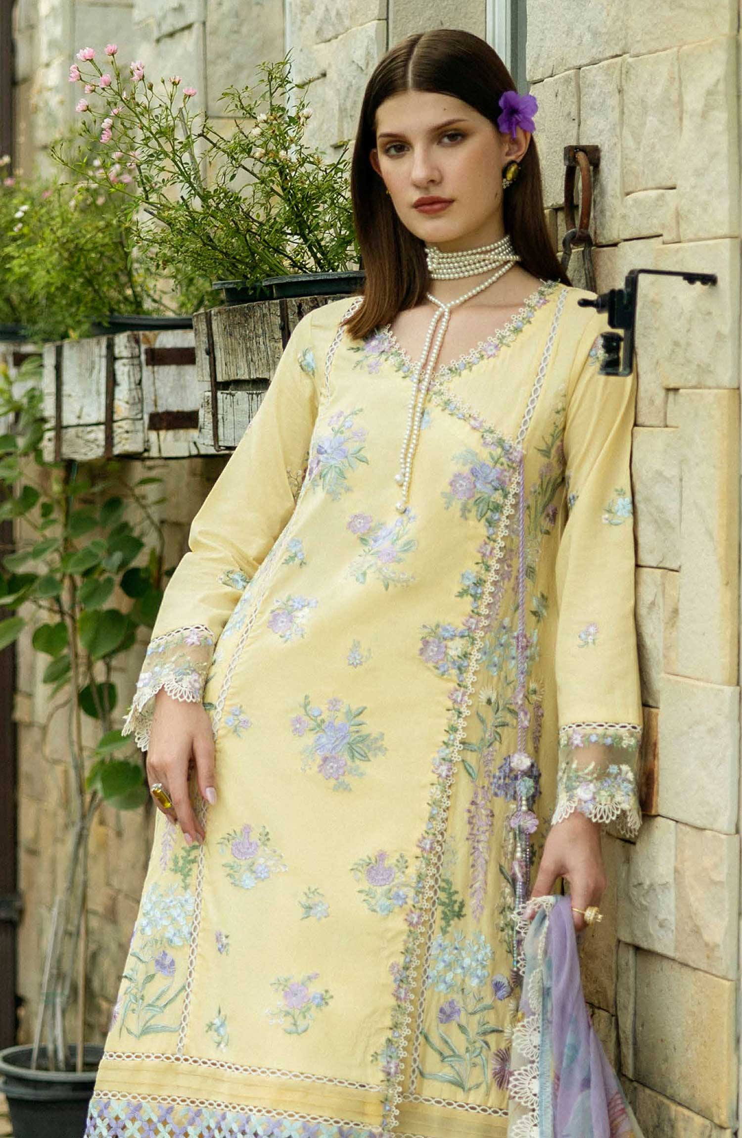 Flanerie by Roheenaz Embroidered Lawn Unstitched 3 Piece - RNZ-04A Gisele - RH25F - Creamy Yellow - Summer Collection