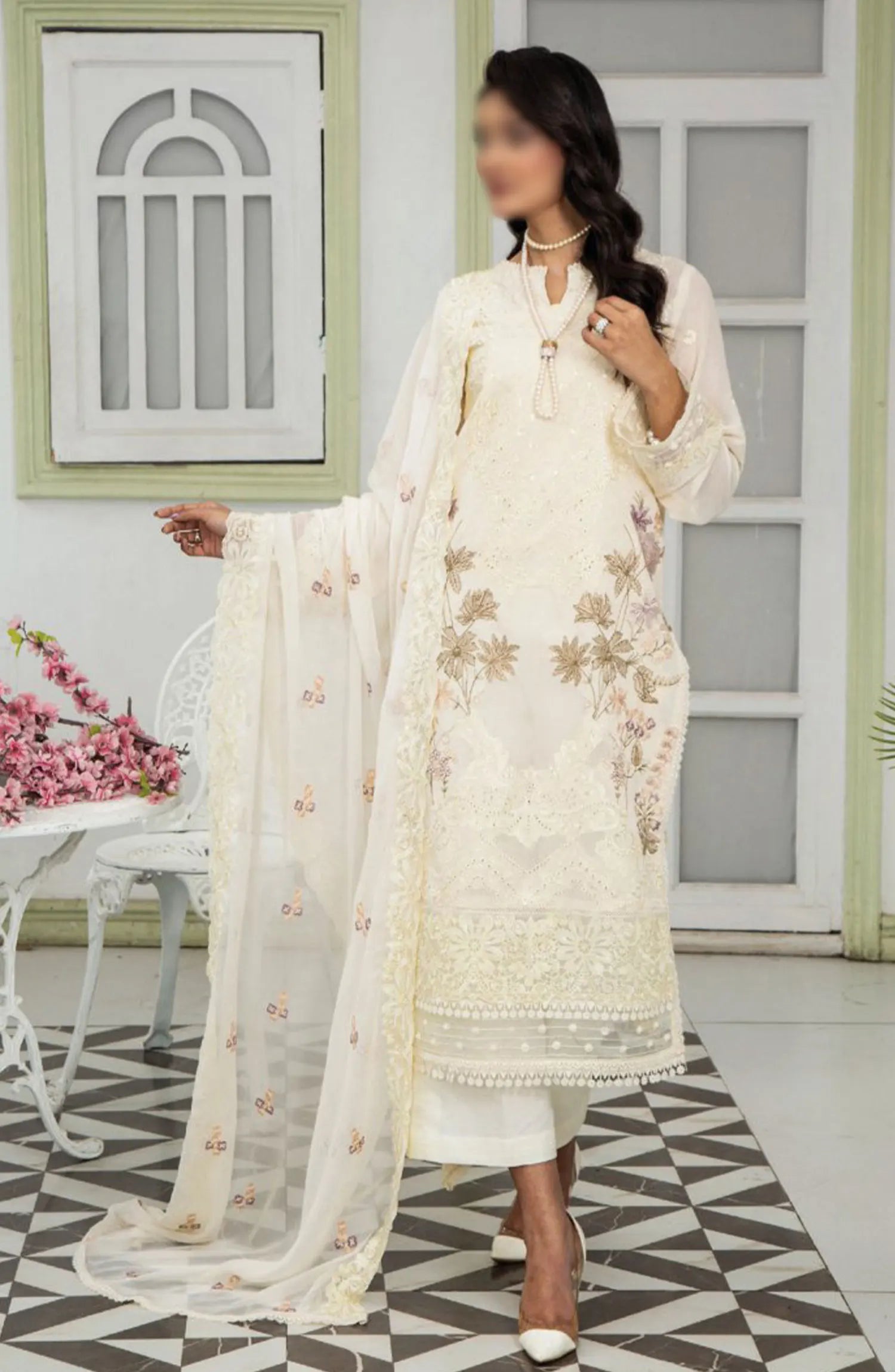 AJR Garden Whisper Embroidered Silk Unstitched 3 Piece Suit - AJR-GW-06 LUMIERE - AJR25GW - Beige - Luxury Collection
