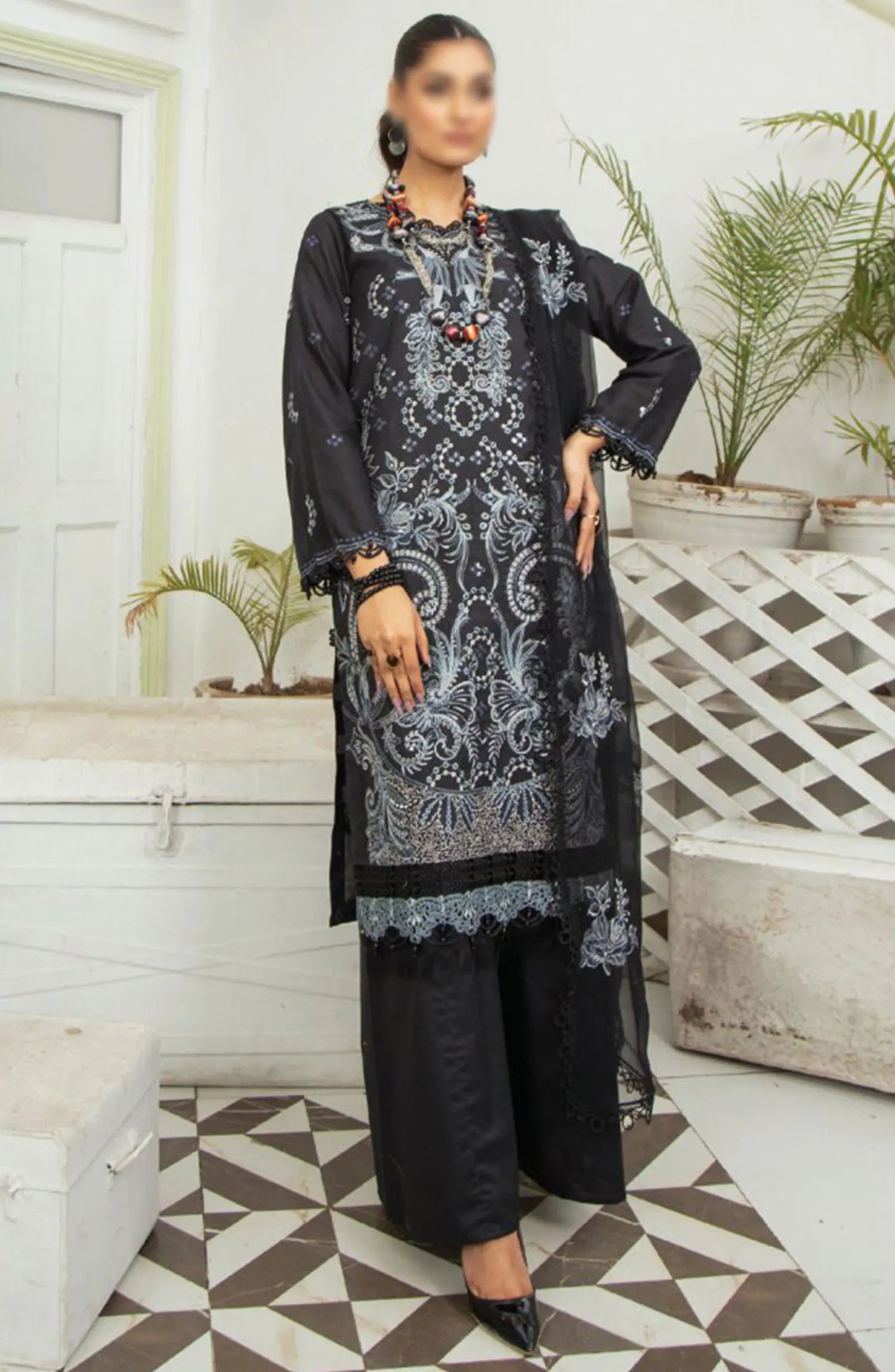 AJR Garden Whisper Embroidered Silk Unstitched 3 Piece Suit - AJR-GW-04 AURINA - AJR25GW - Sky Blue - Luxury Collection