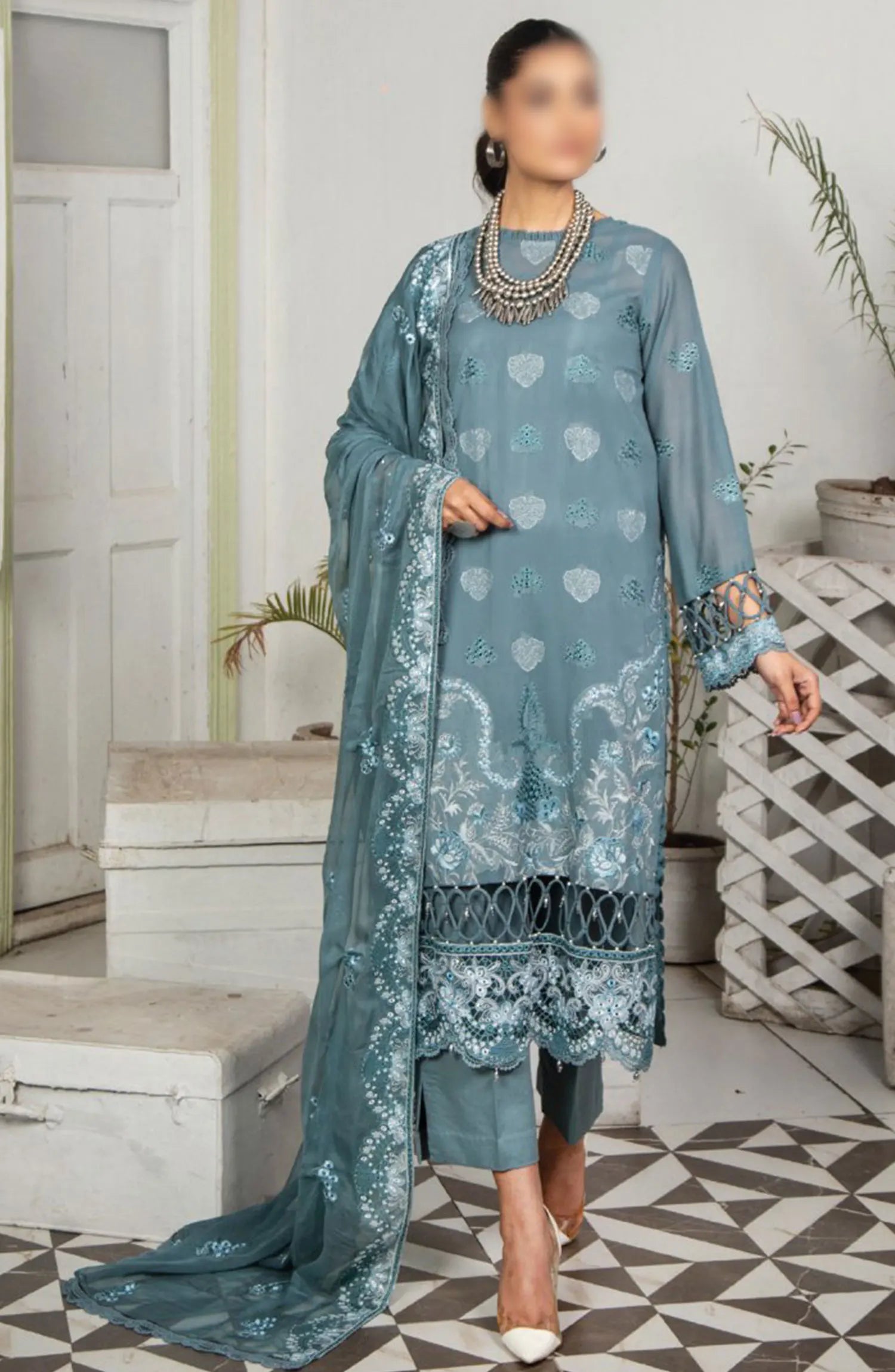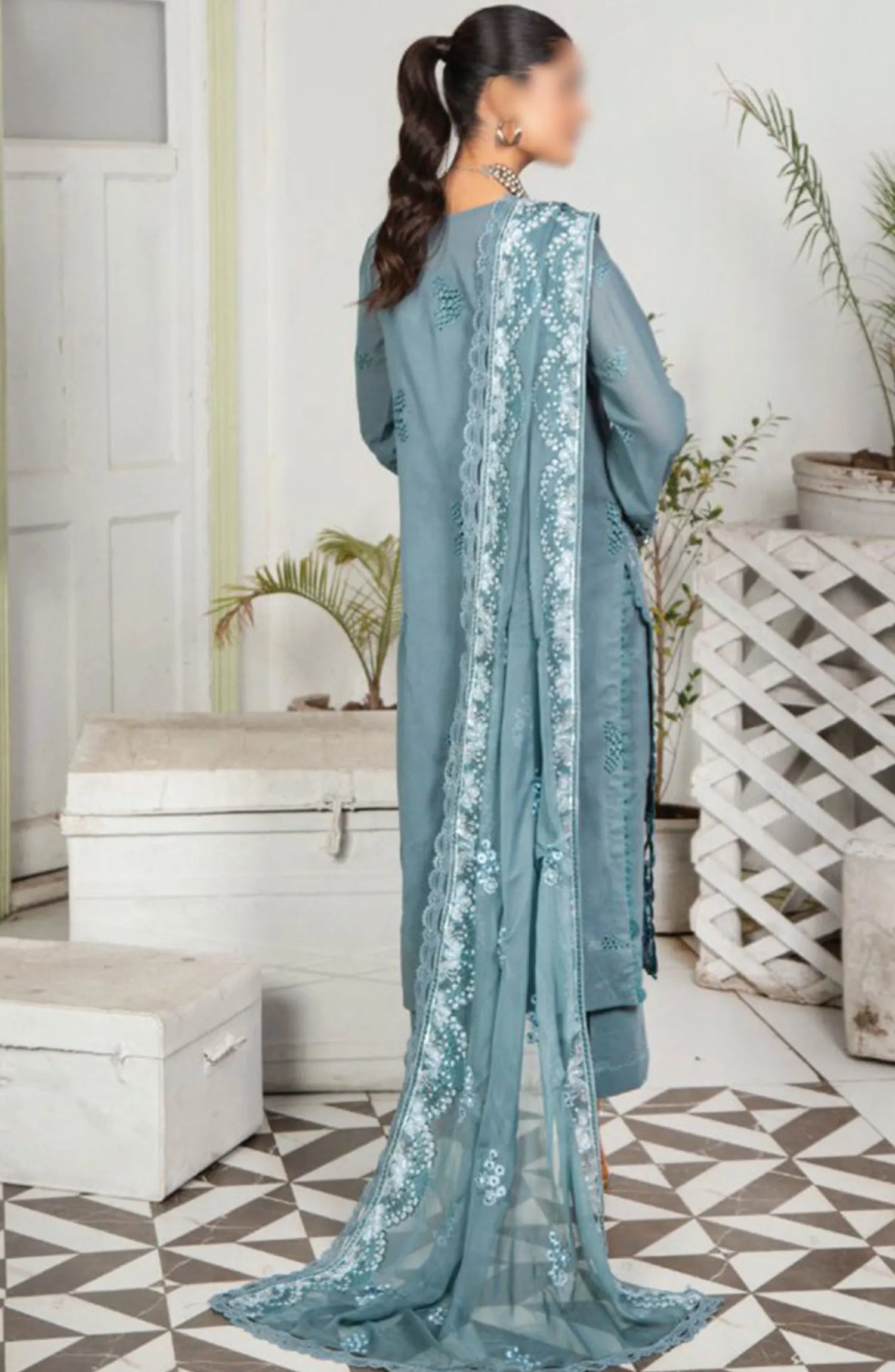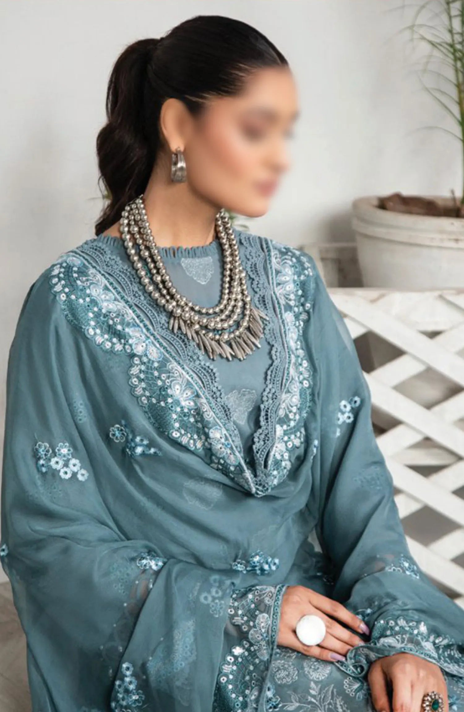 AJR Garden Whisper Embroidered Silk Unstitched 3 Piece Suit - AJR-GW-04 AURINA - AJR25GW - Sky Blue - Luxury Collection