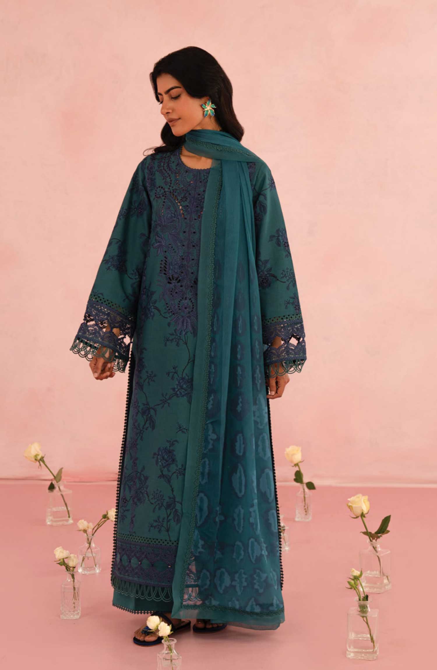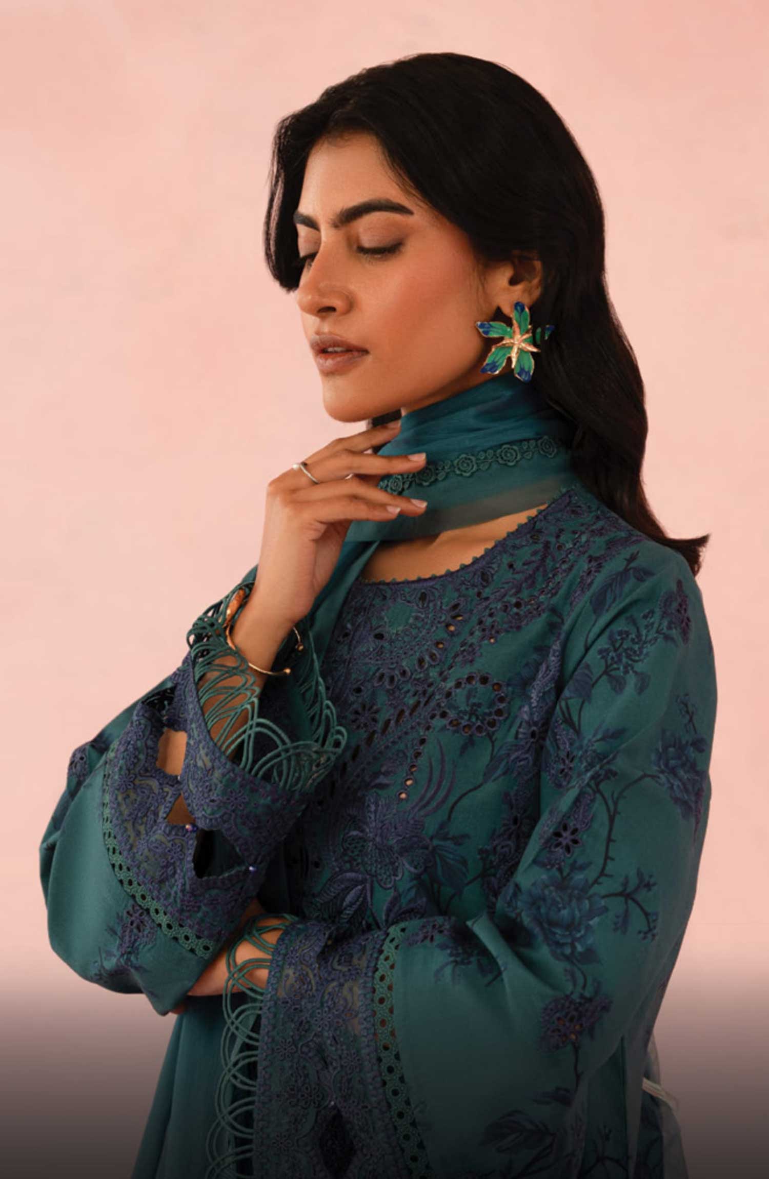 Home Floral Charm by Afrozeh Embroidered Lawn Unstitched 3 Piece - AL-25-V5-03 Acacia - AF25FC - Blue - Summer Collection