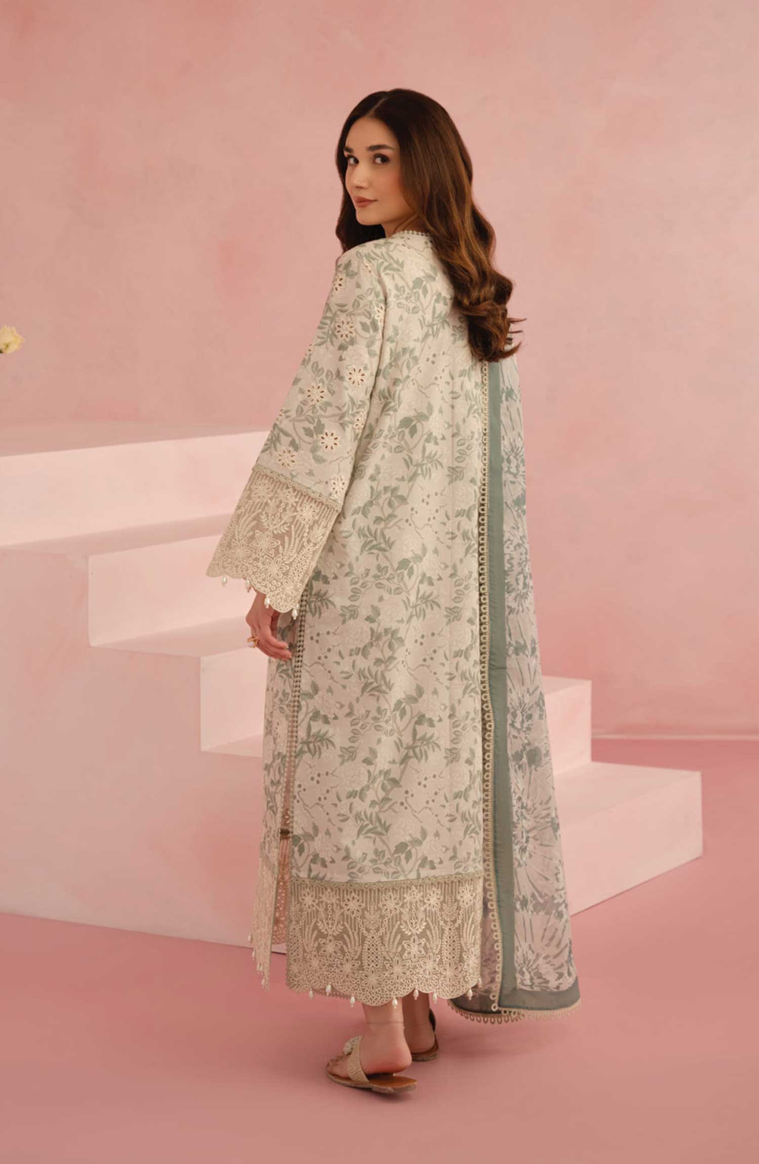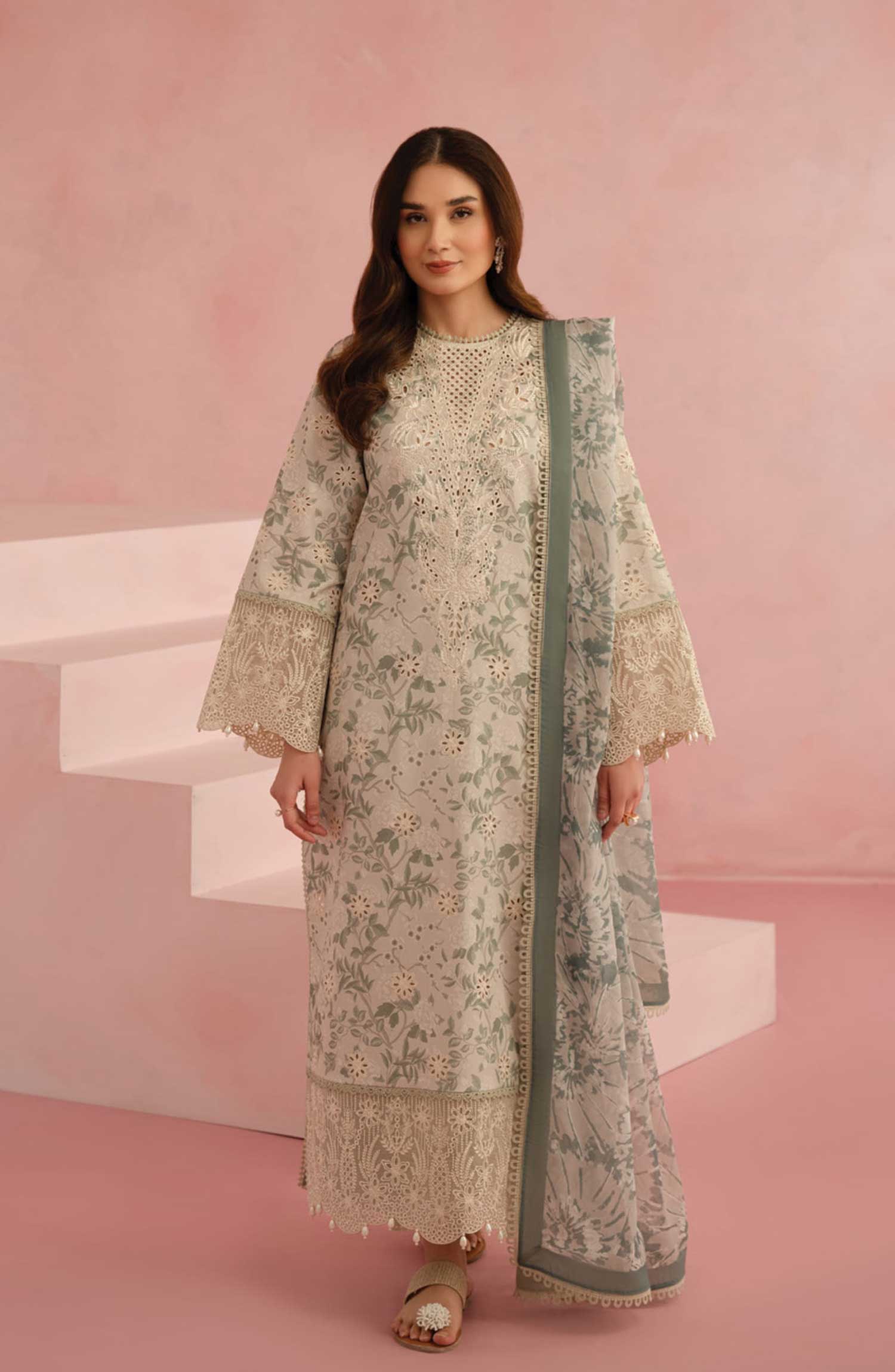 Home Floral Charm by Afrozeh Embroidered Lawn Unstitched 3 Piece - AL-25-V5-04 Kylon - AF25FC - White - Summer Collection