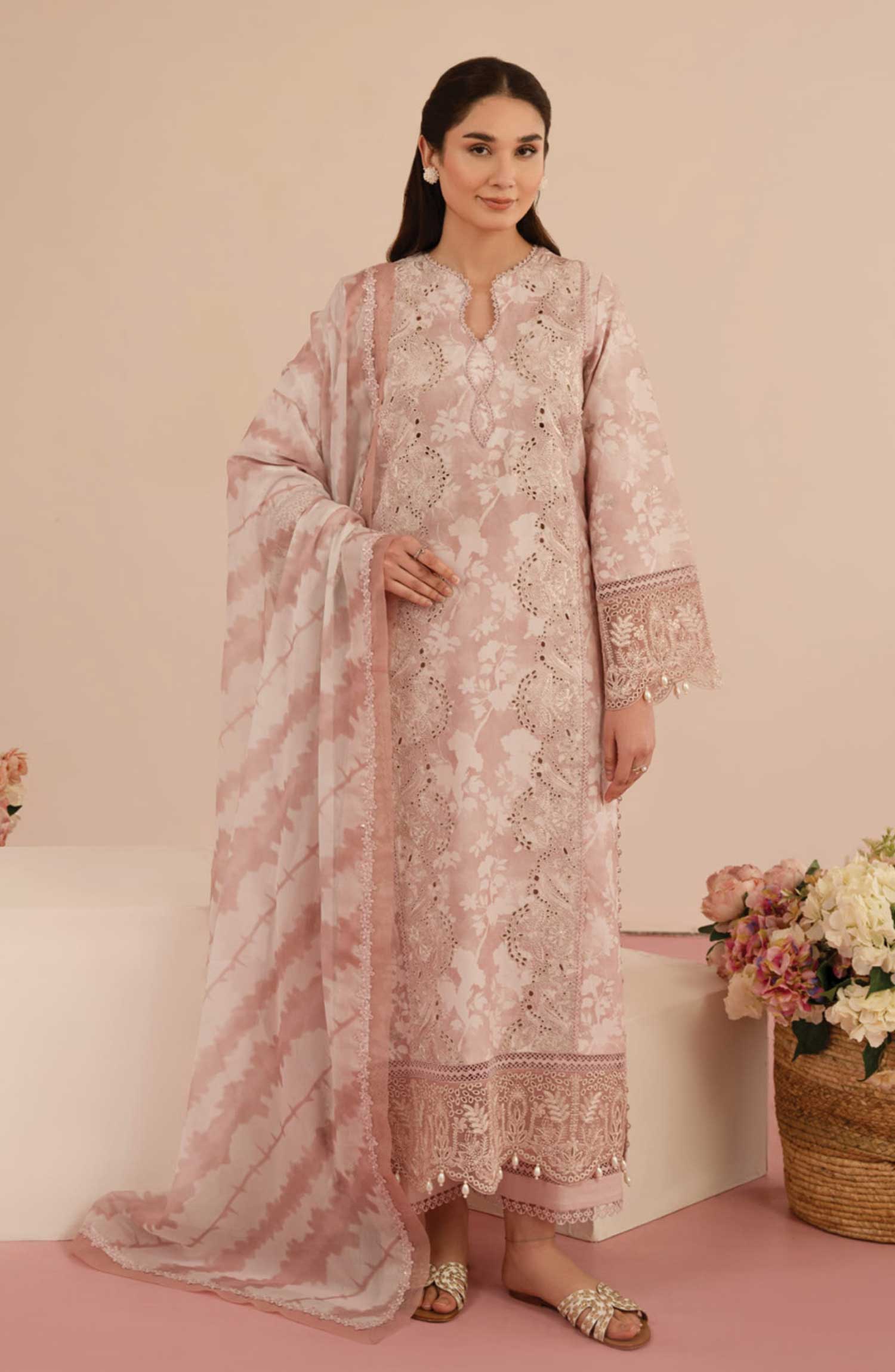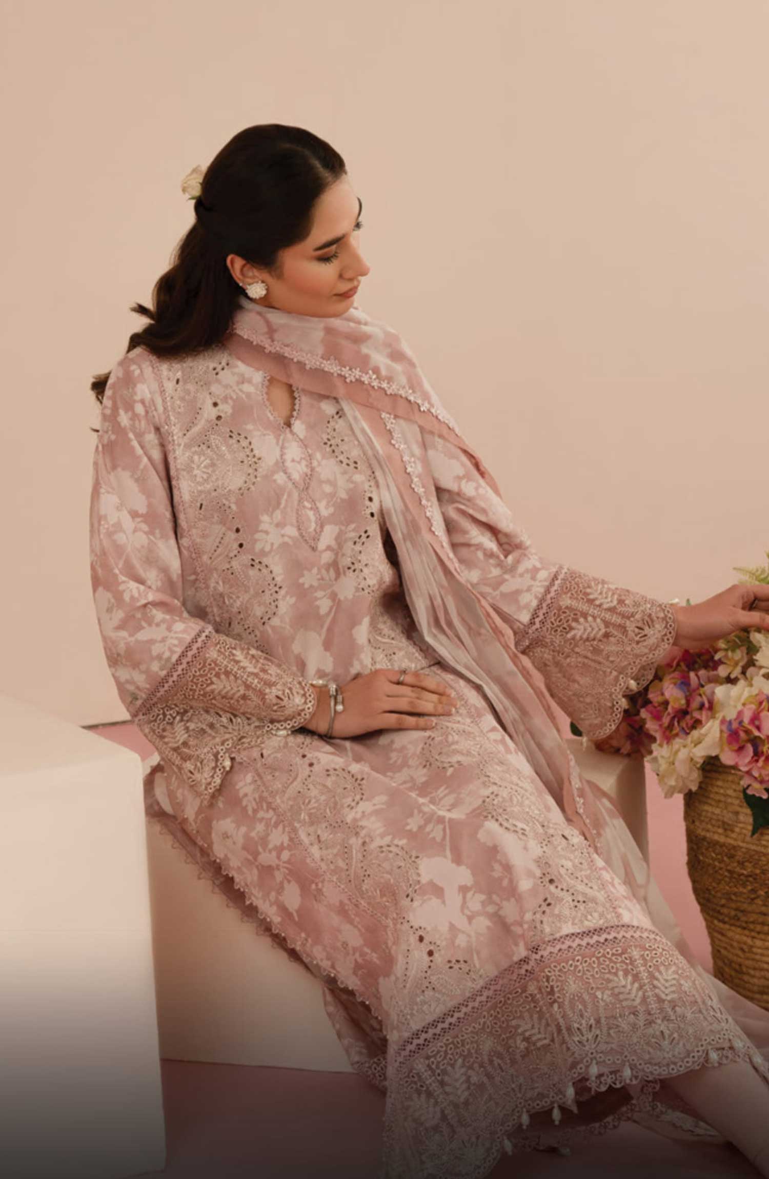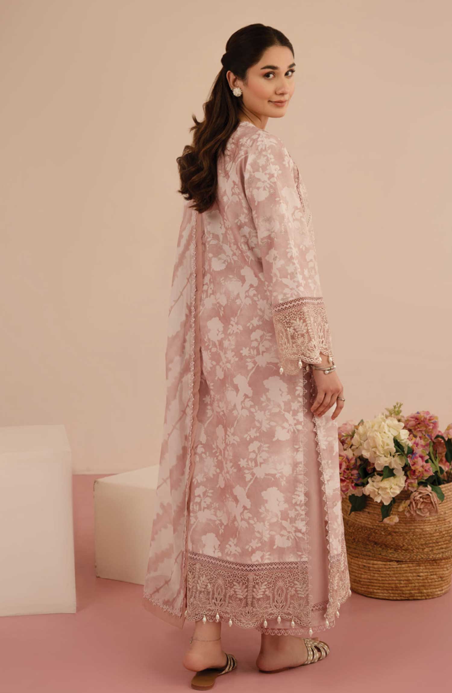 Home Floral Charm by Afrozeh Embroidered Lawn Unstitched 3 Piece - AL-25-V5-08 Myrtle - AF25FC - pink - Summer Collection