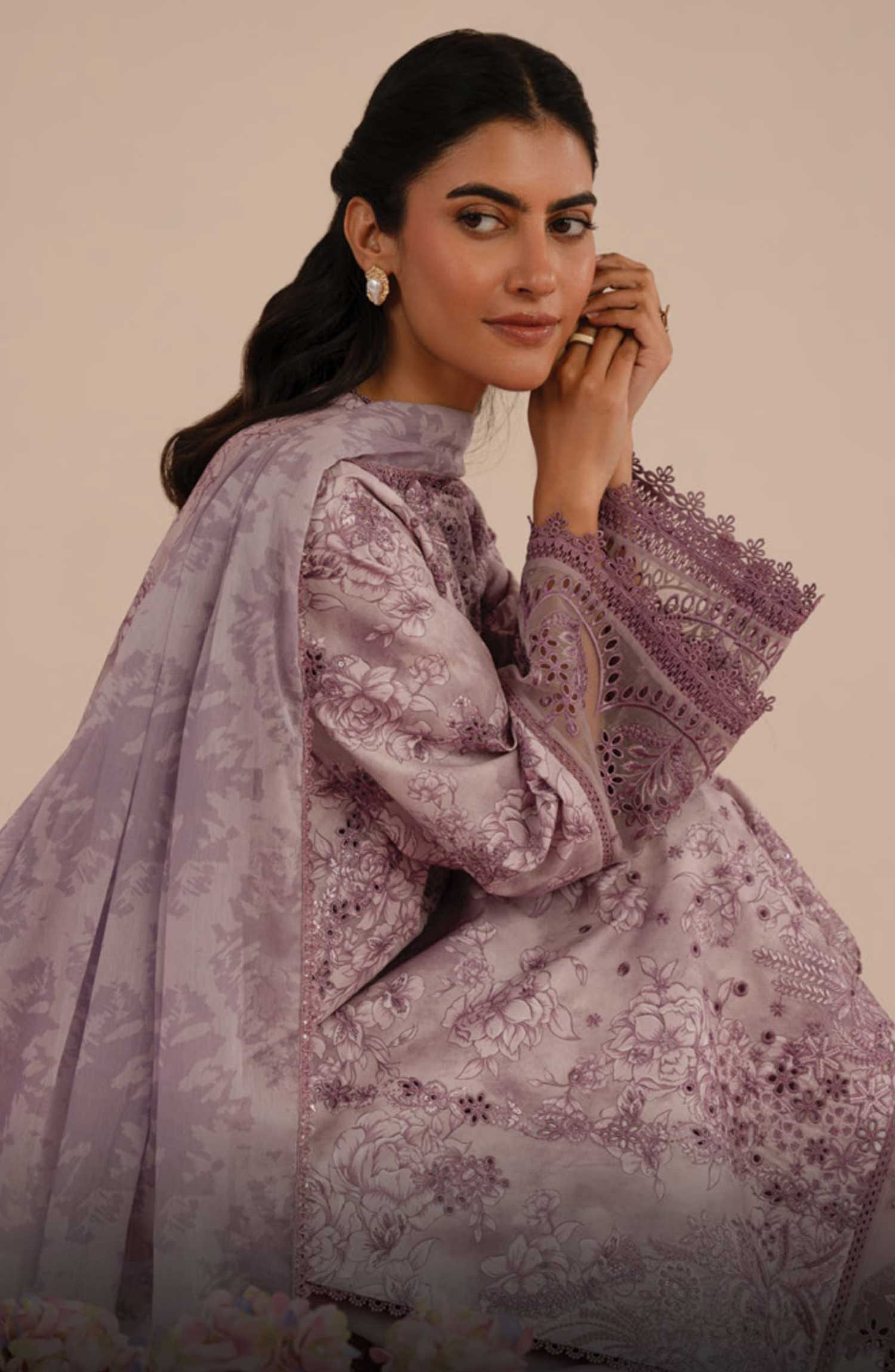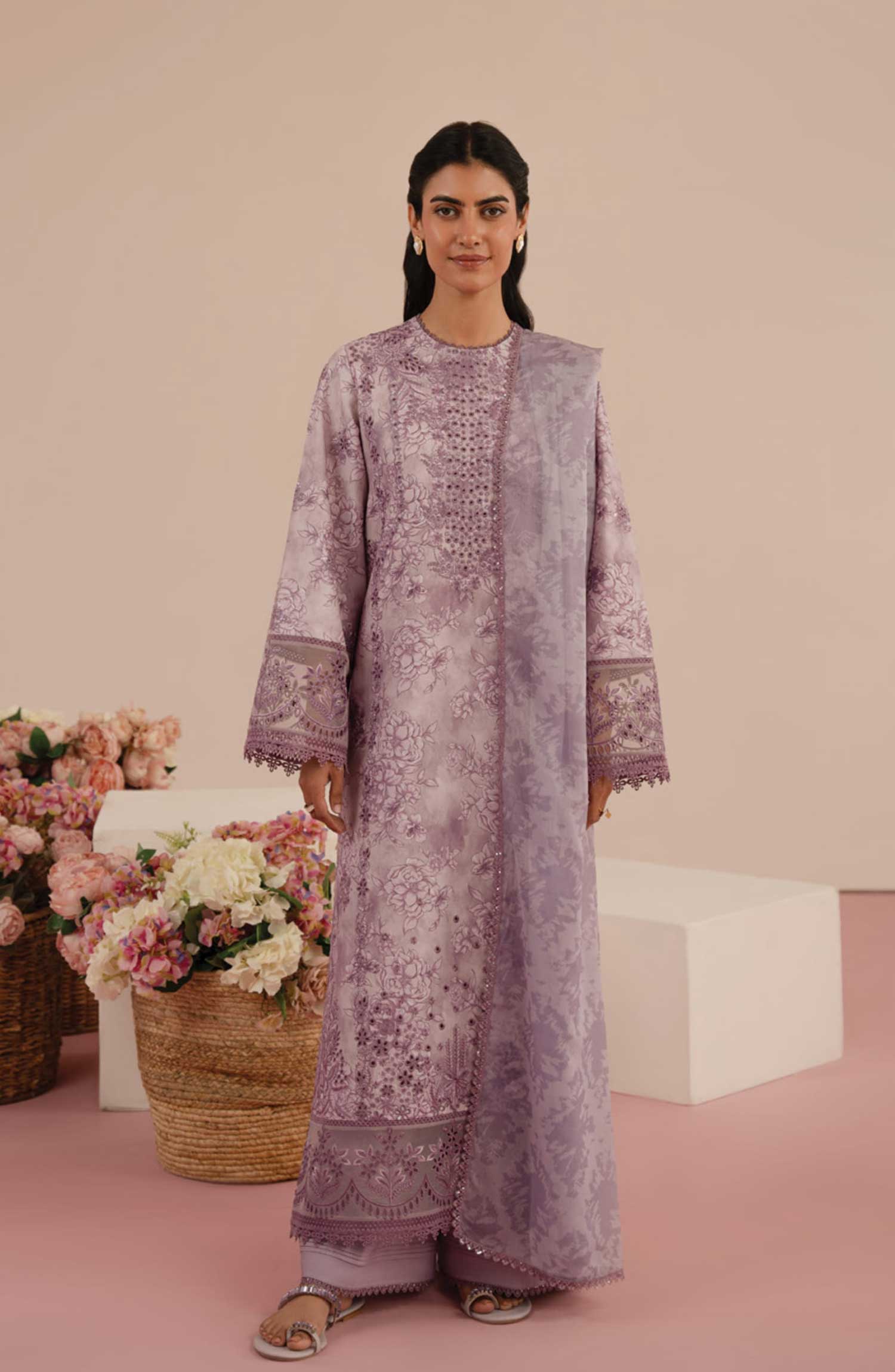 Home Floral Charm by Afrozeh Embroidered Lawn Unstitched 3 Piece - AL-25-V5-10 Bellerose - AF25FC - Purple - Summer Collection