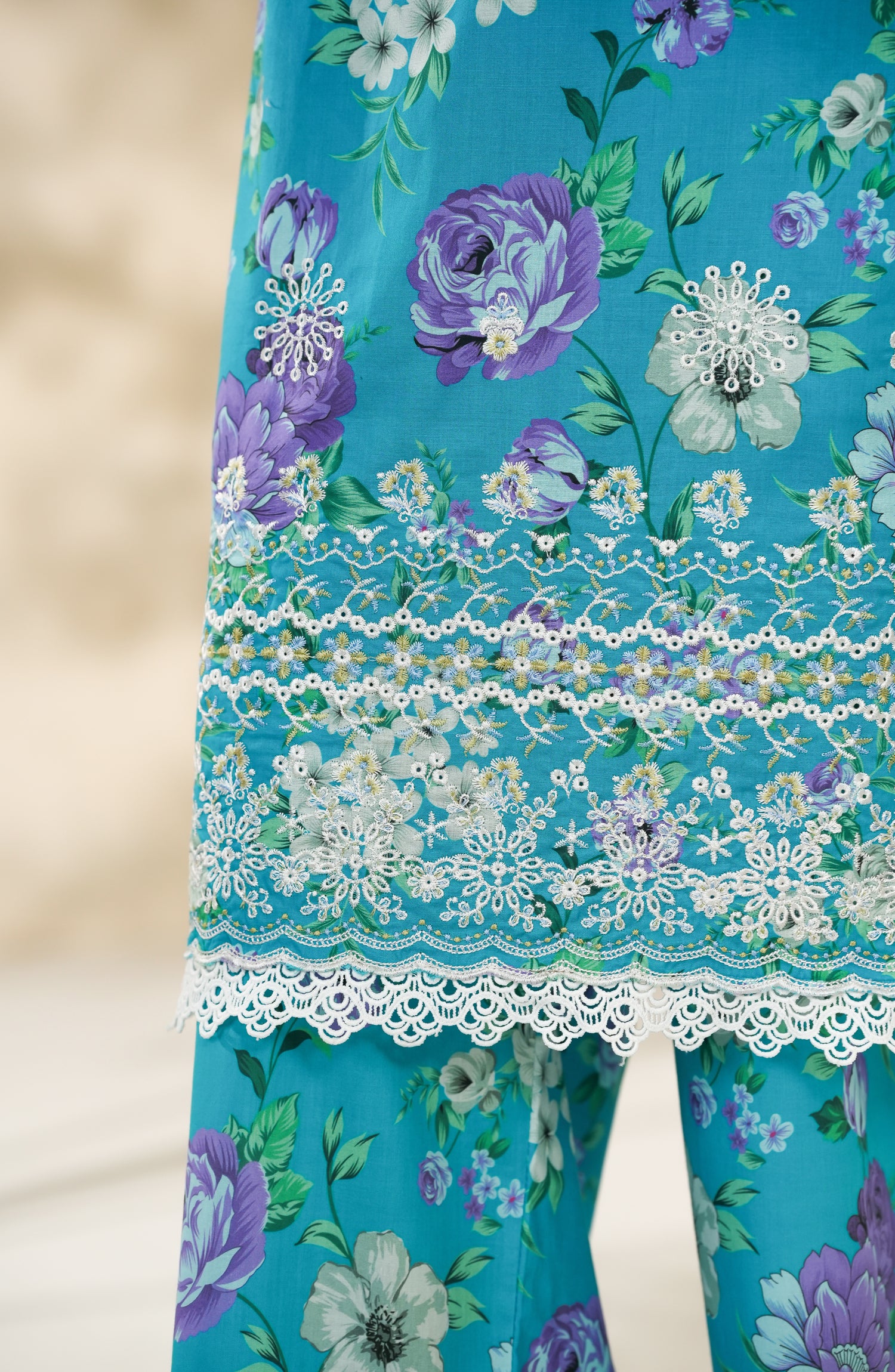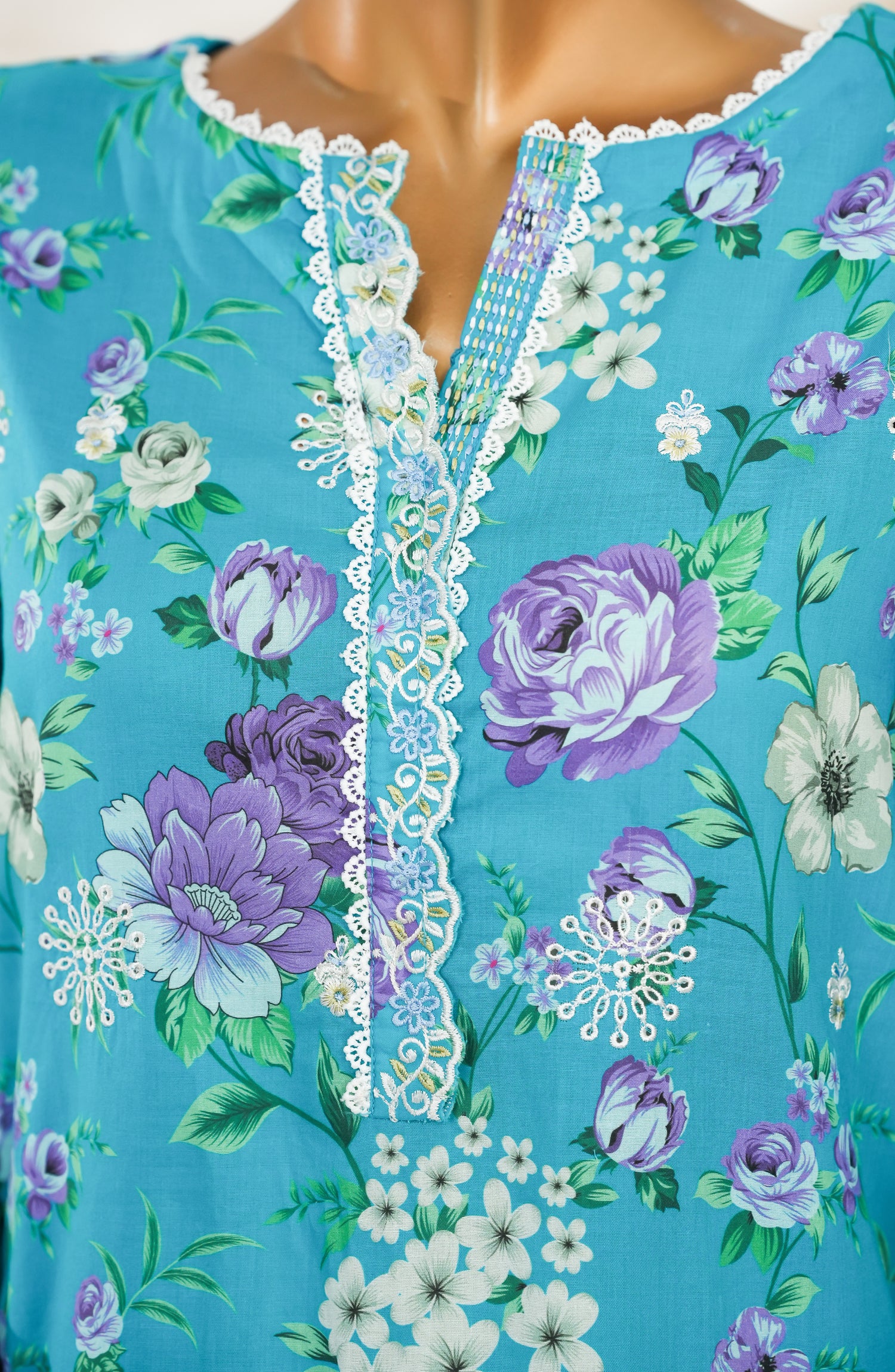 Digital print and chikankari embroidery fine cotton cambric stitch shirt