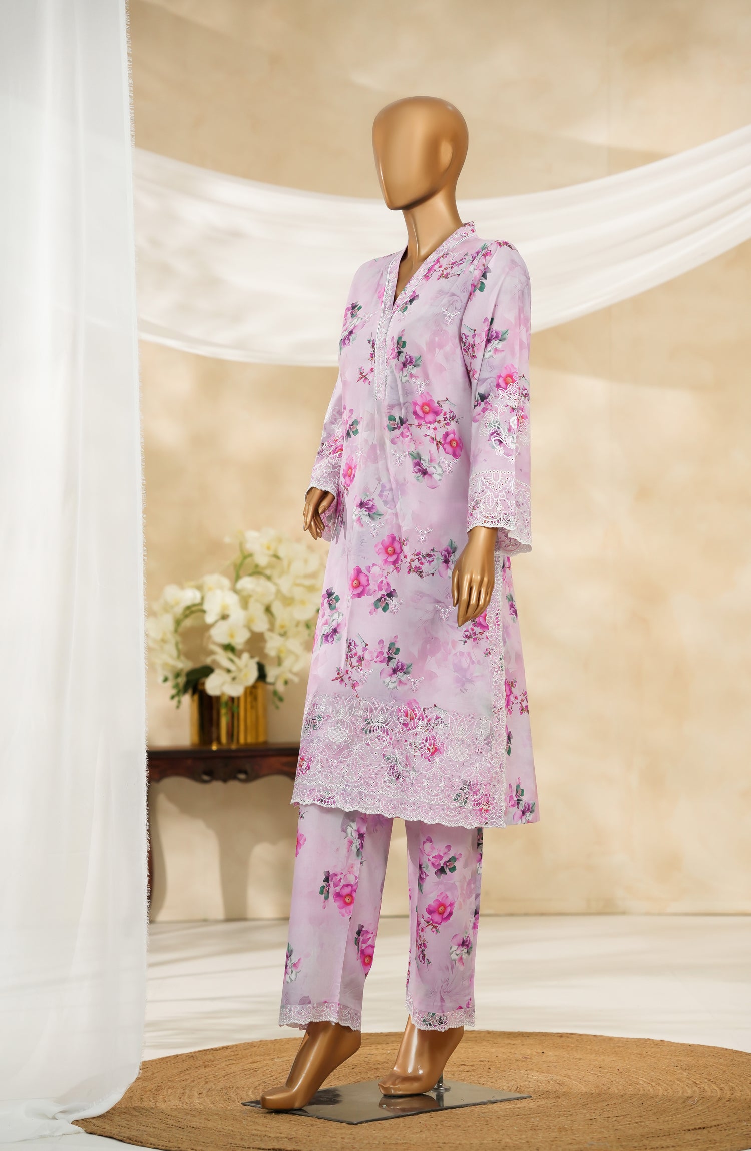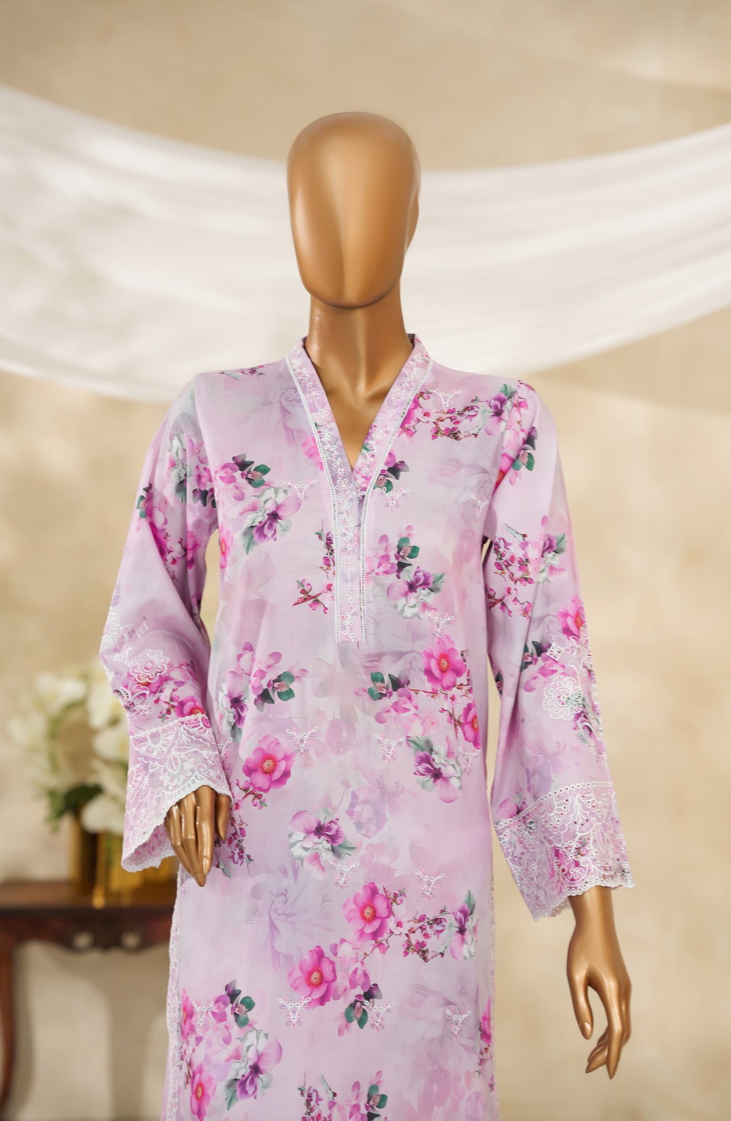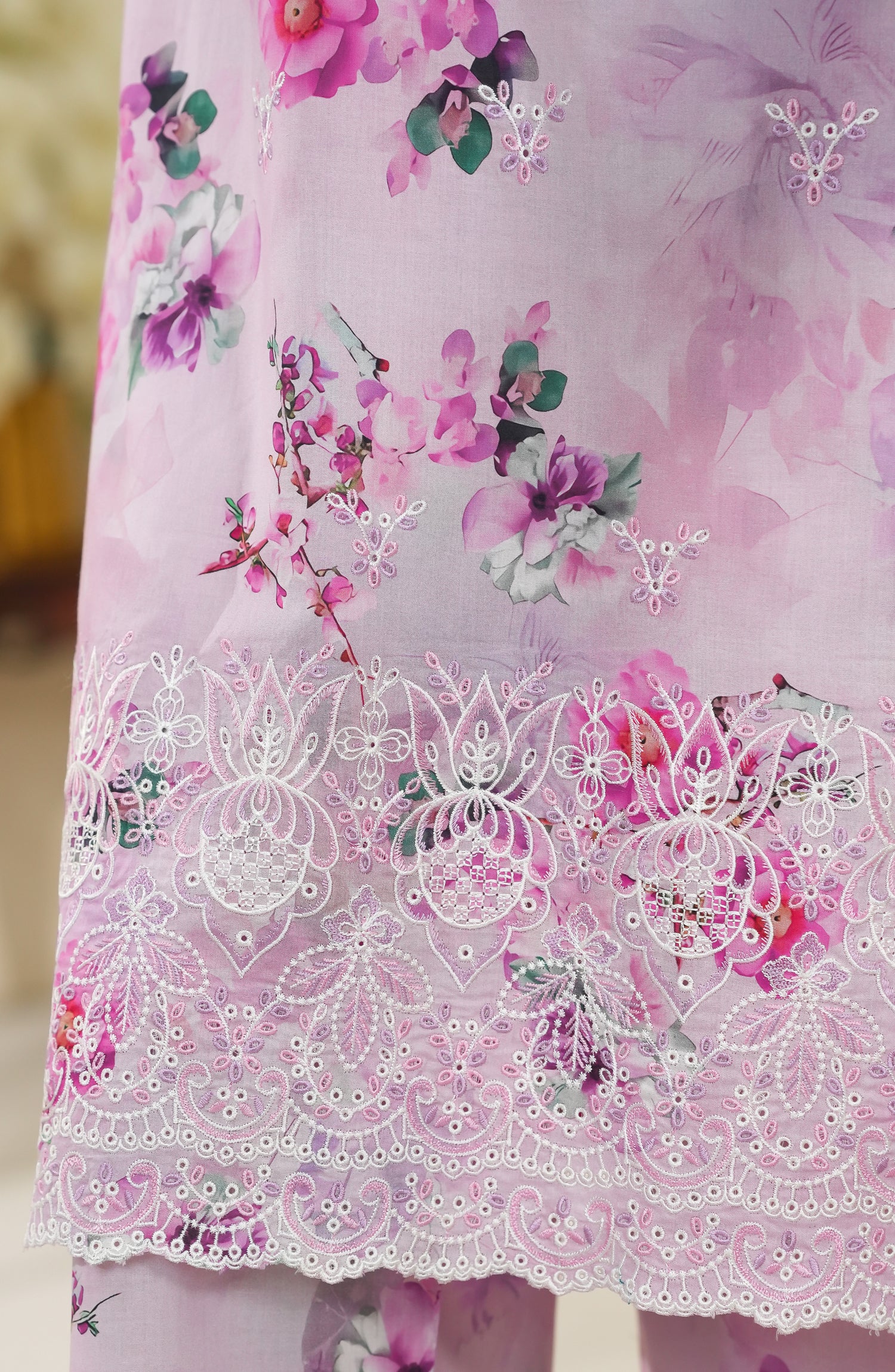 Digital print and chikankari embroidery fine cotton cambric stitch shirt