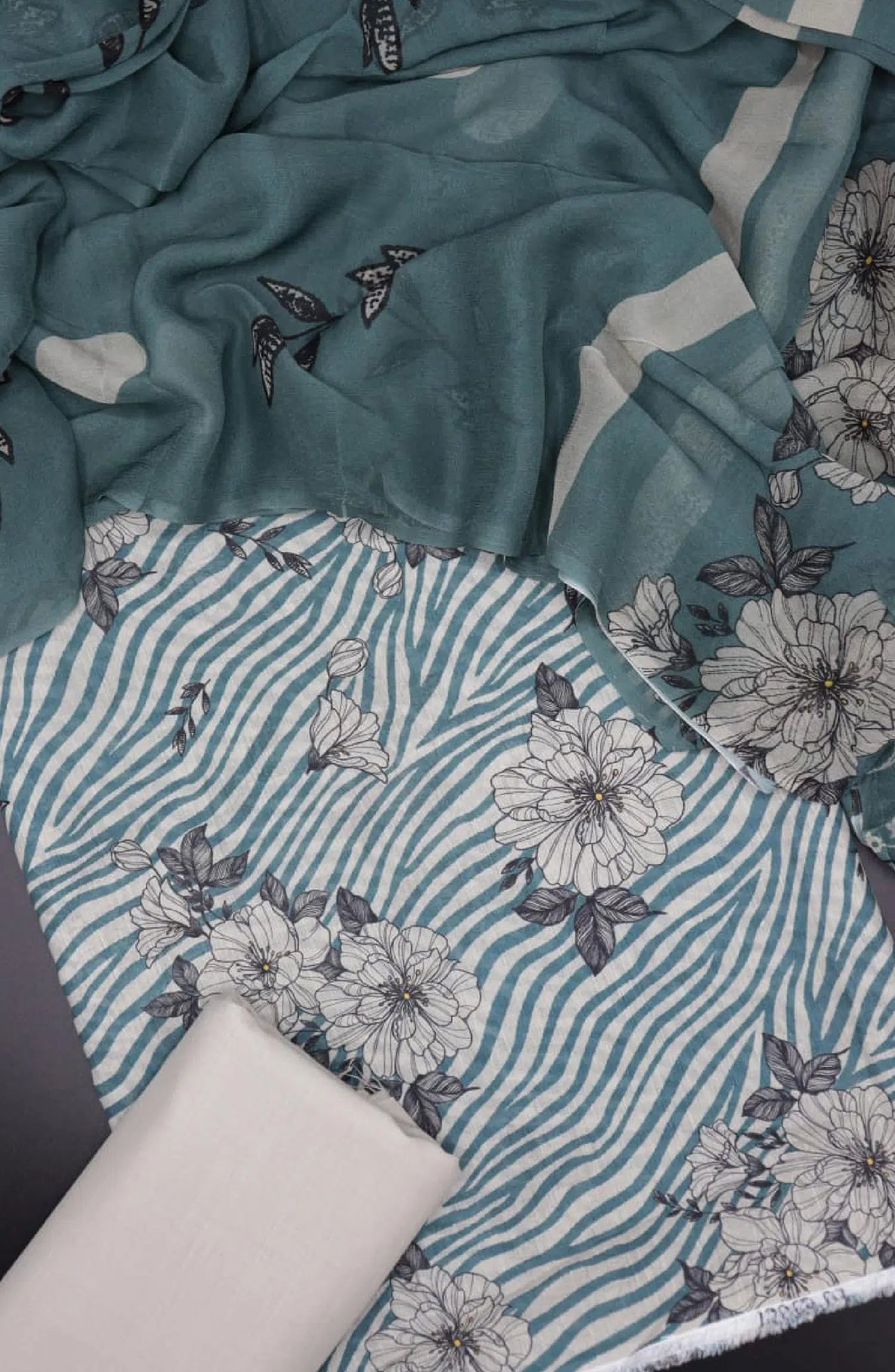 Floral Prints Unstitched Digital Printed Lawn Collection 2024 by Amna Khadija has been styled in the image for photography and illustrative purposes.