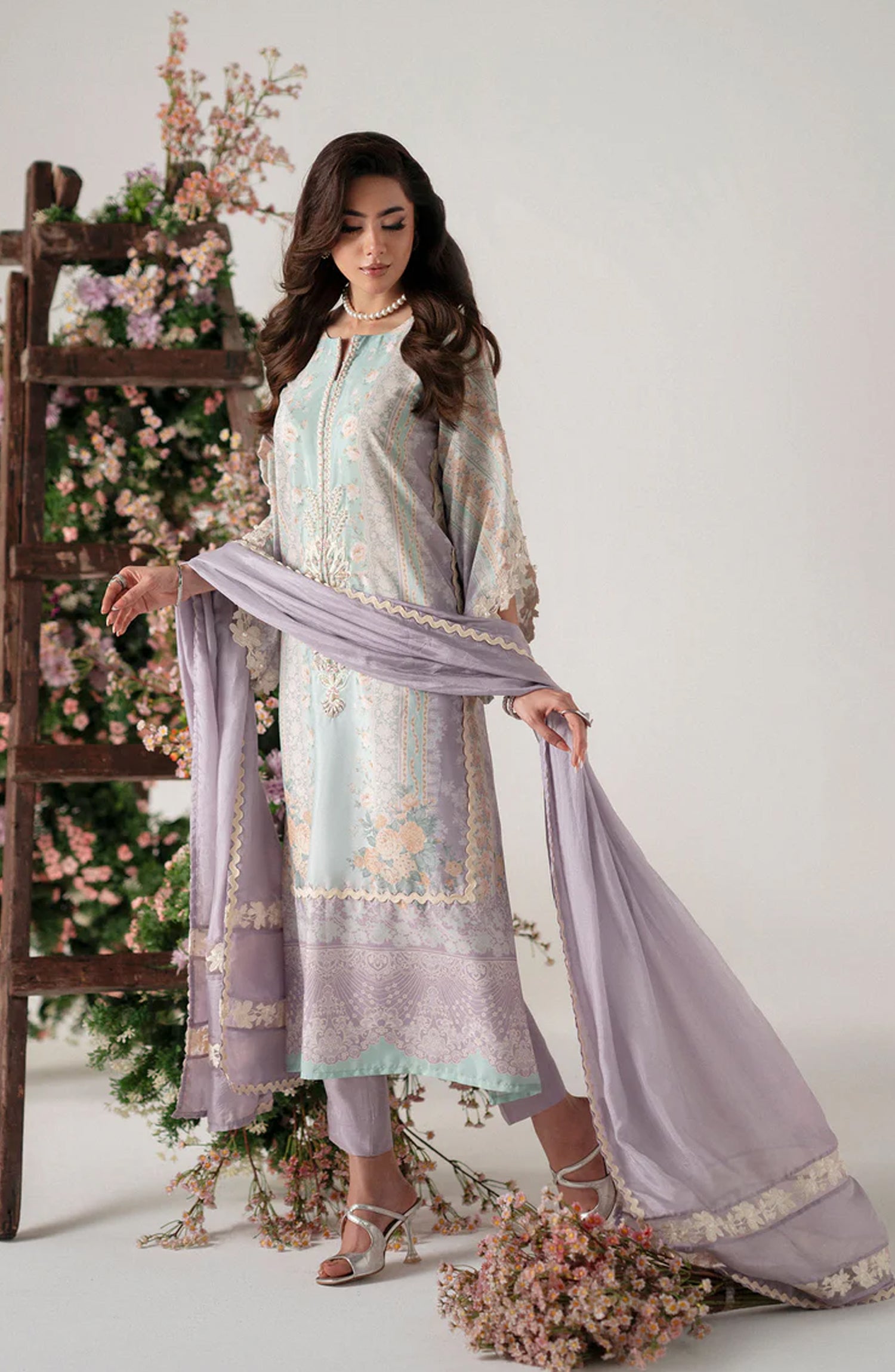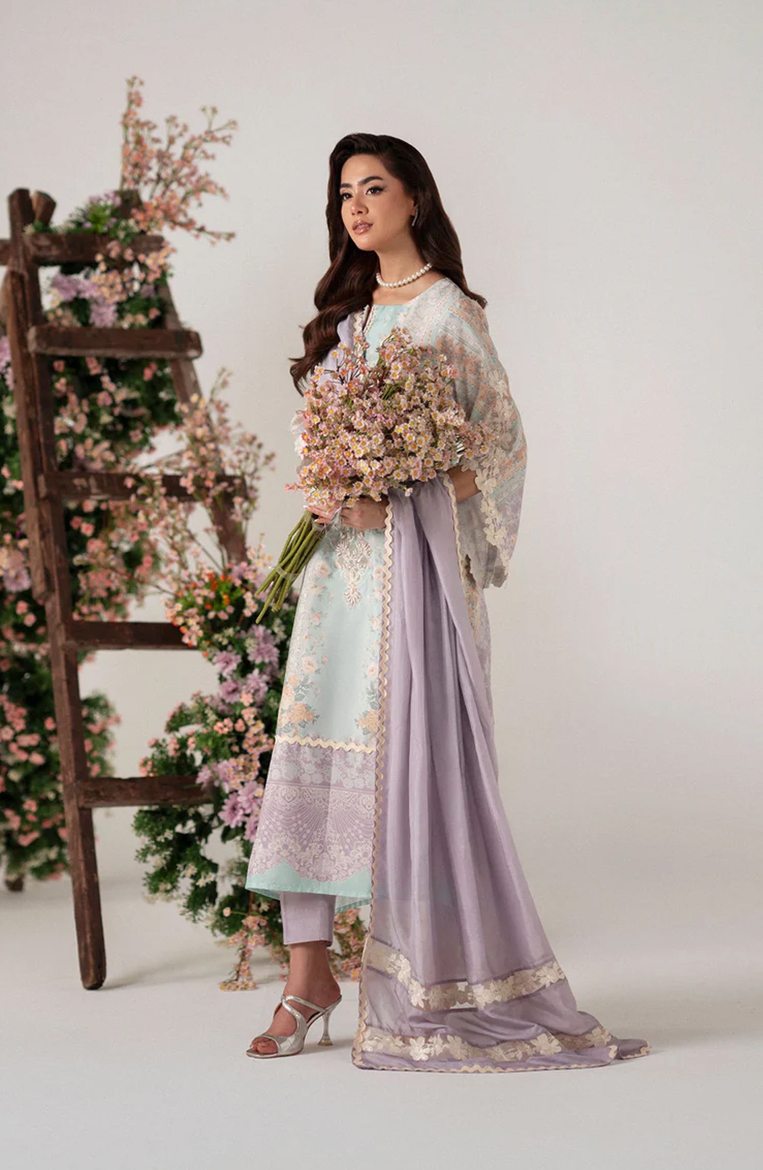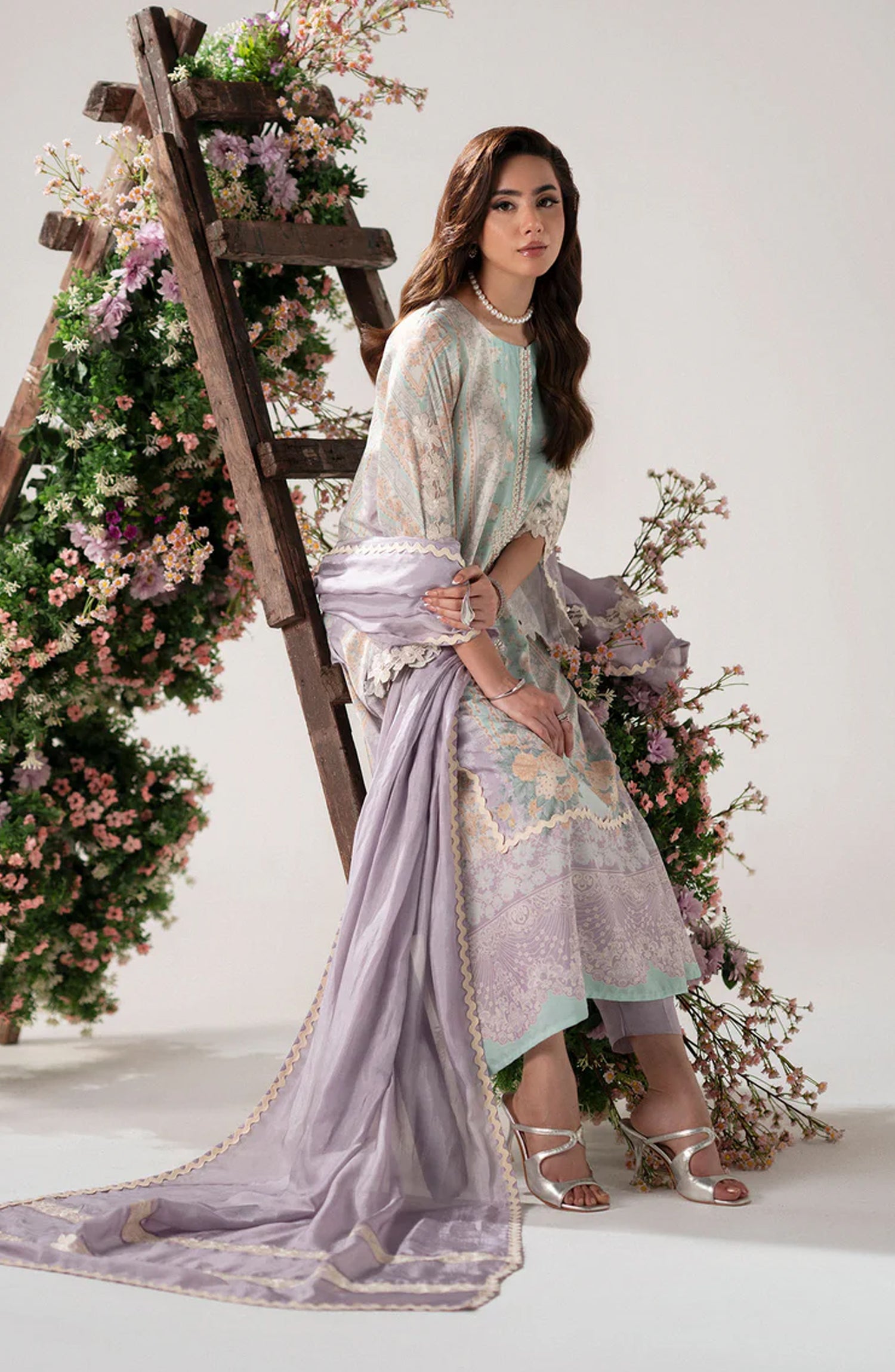 A poetic blend of modern elegance and floral charm, Roselle captures the spirit of understated sophistication. The outfit features a composed print in soothing shades of lilac and mint, evoking a soft, dreamy palette perfect for refined tastes.