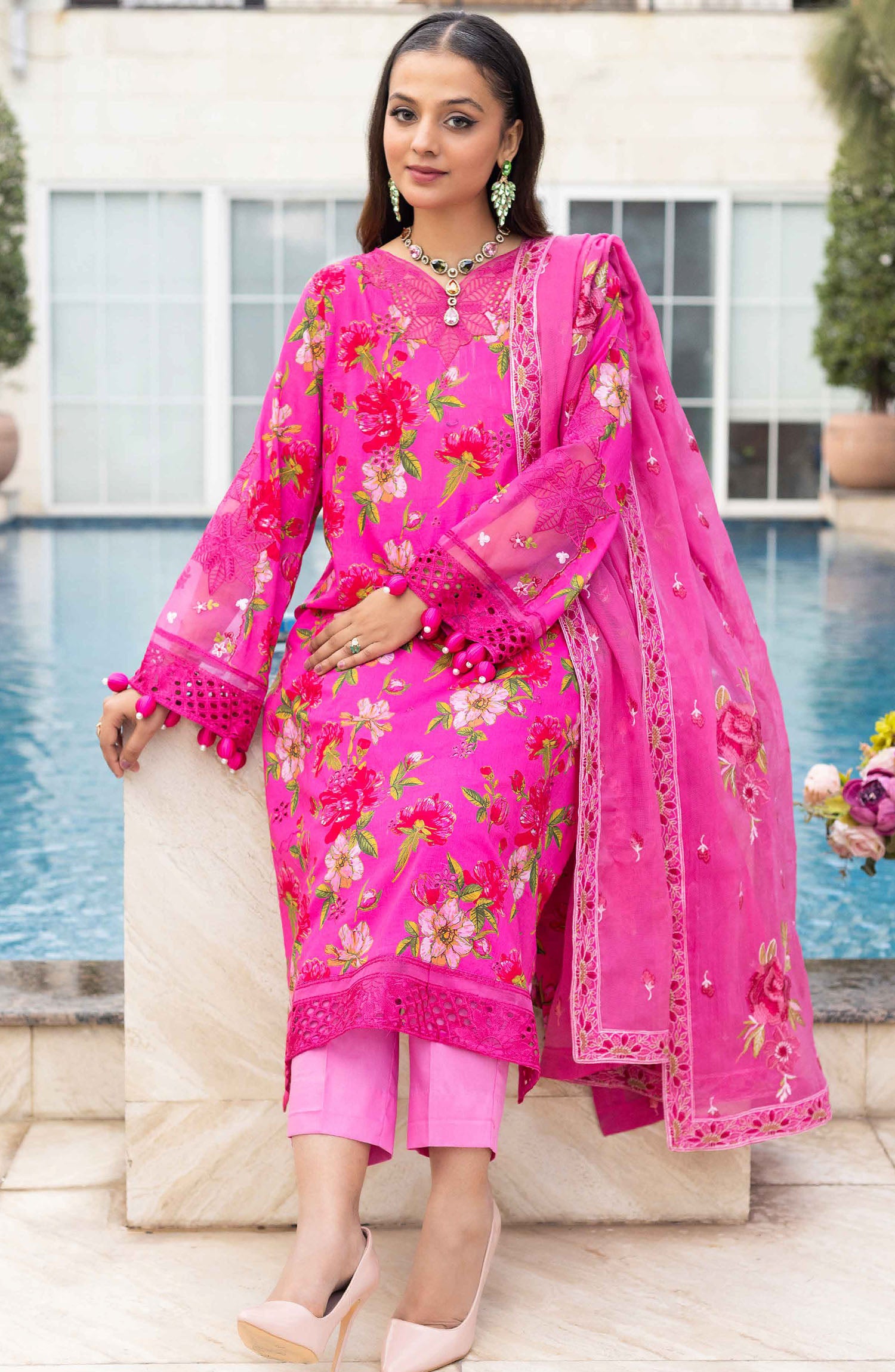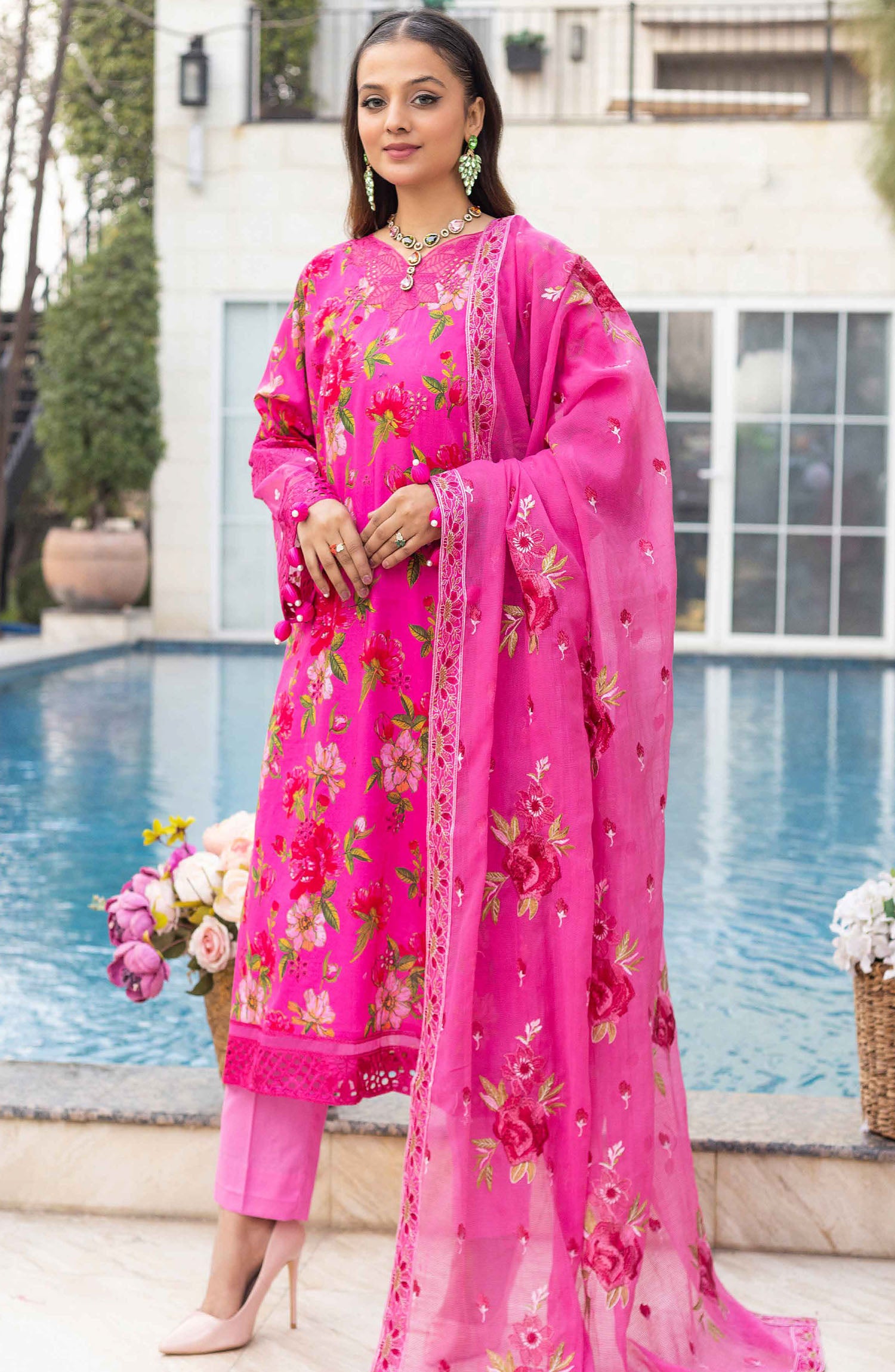 Home Florence by Nur Embroidered Lawn Unstitched 3 Piece Suit - FN-233 - NUR25FL - Pink - Summer Collection
