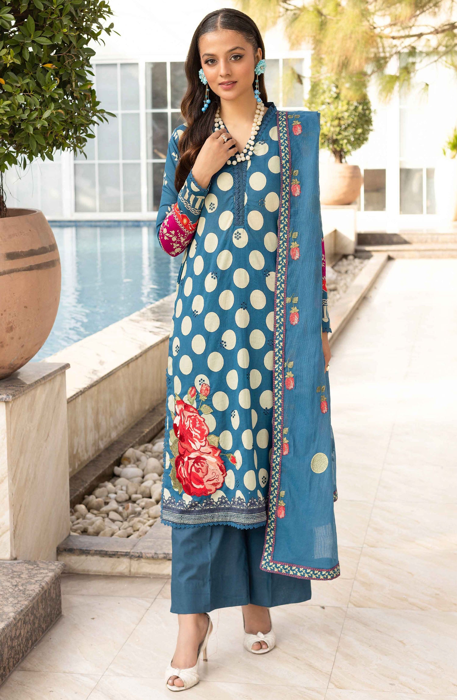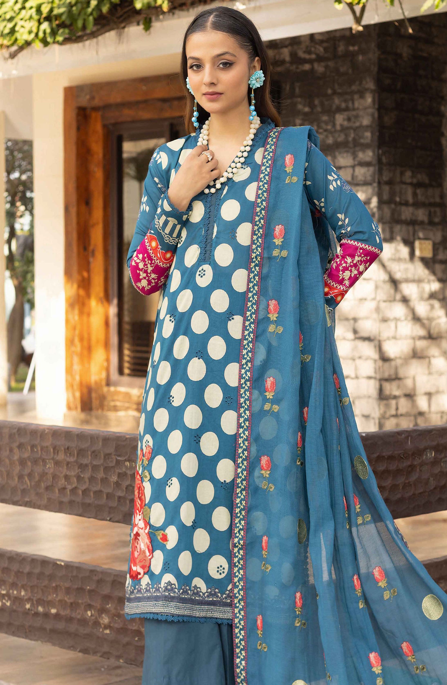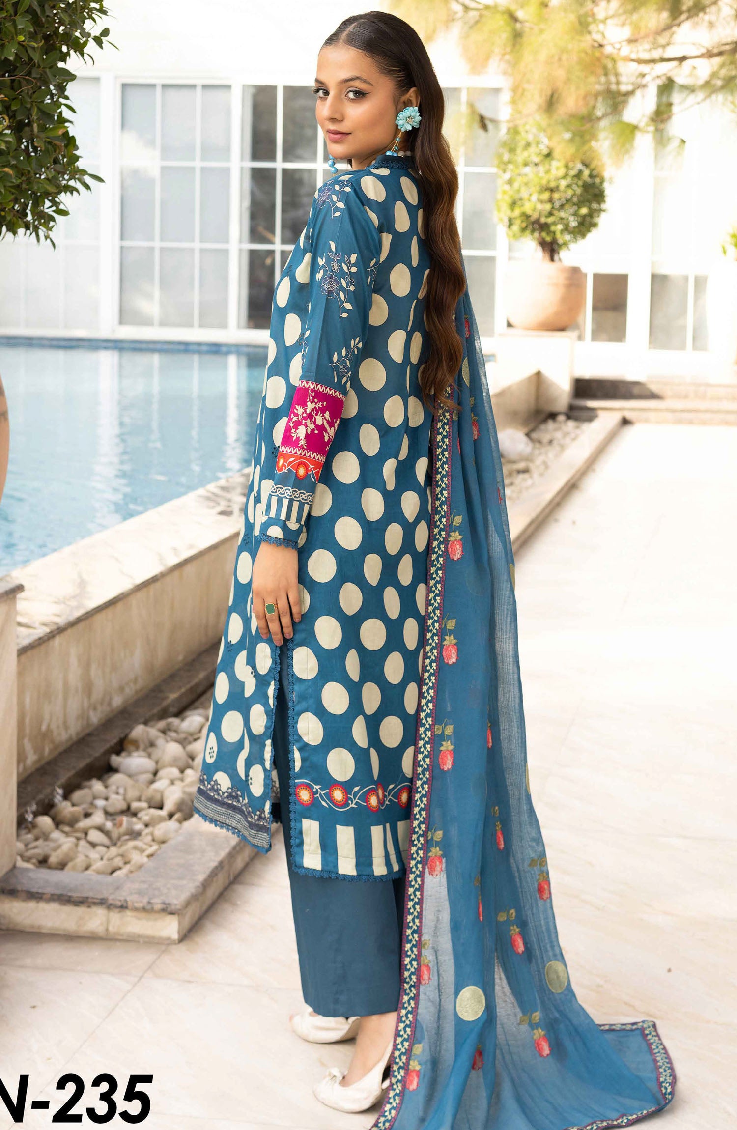 Florence by Nur Embroidered Lawn Unstitched 3 Piece Suit - FN-235 - NUR25FL - Blue - Summer Collection