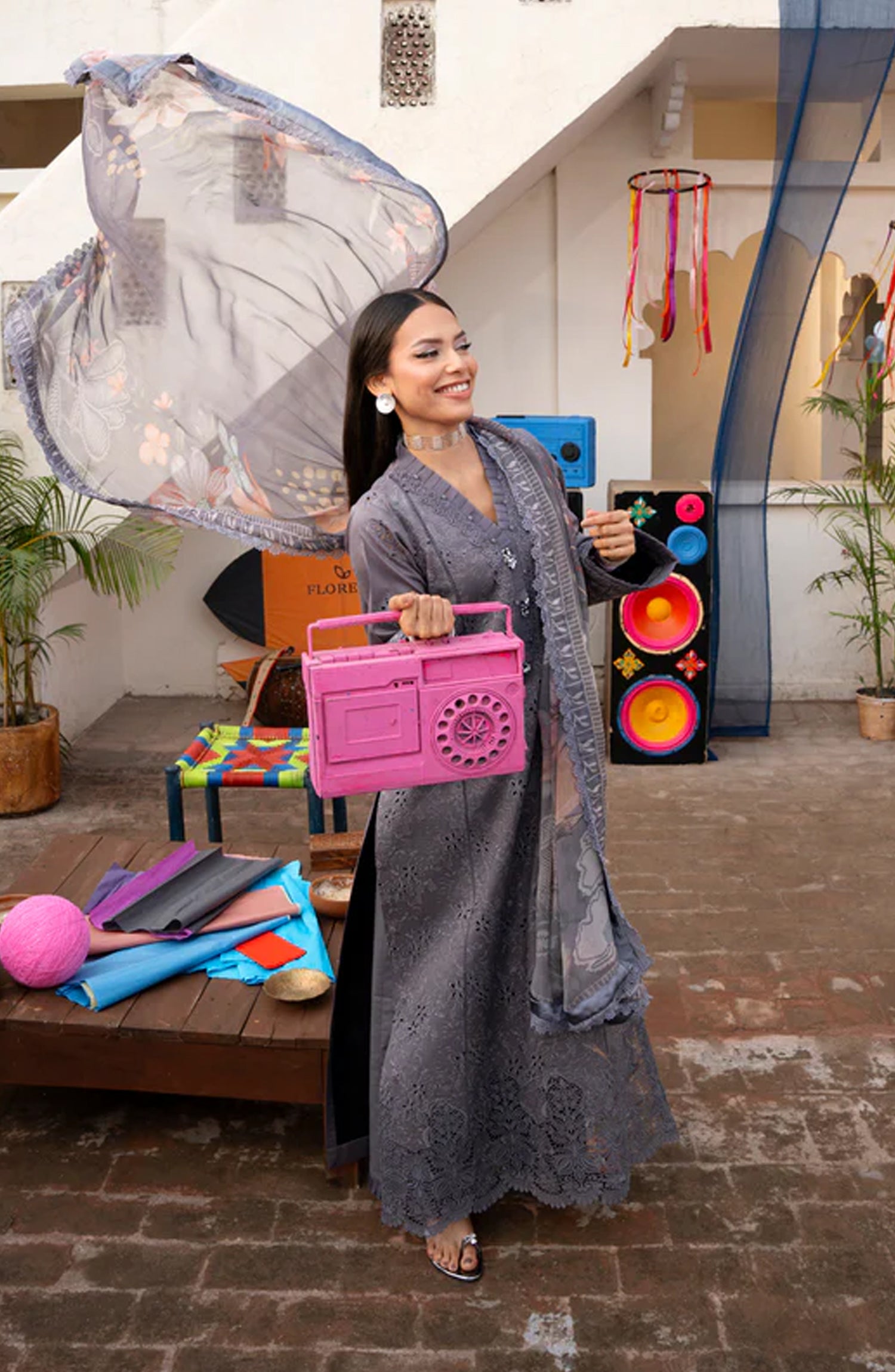 Dyed Embroidered Chikankari Front 1.25 Mtr