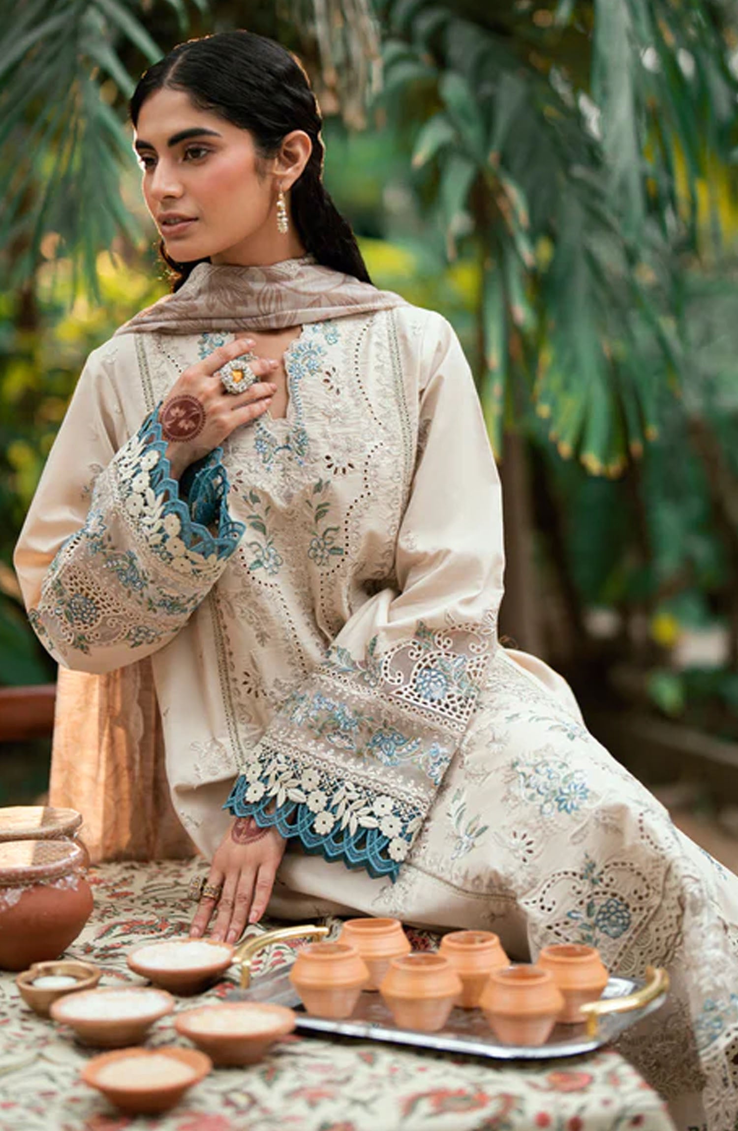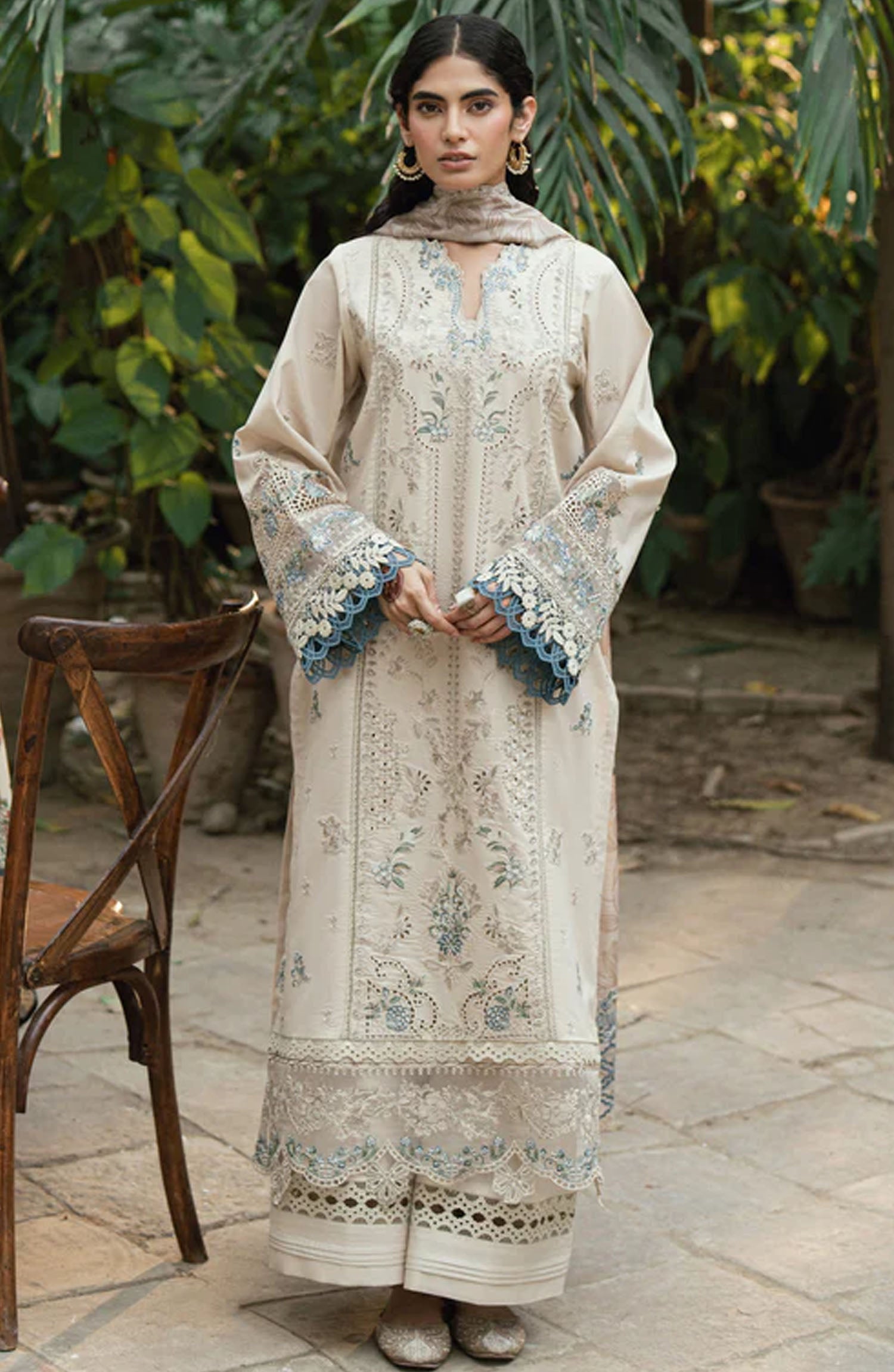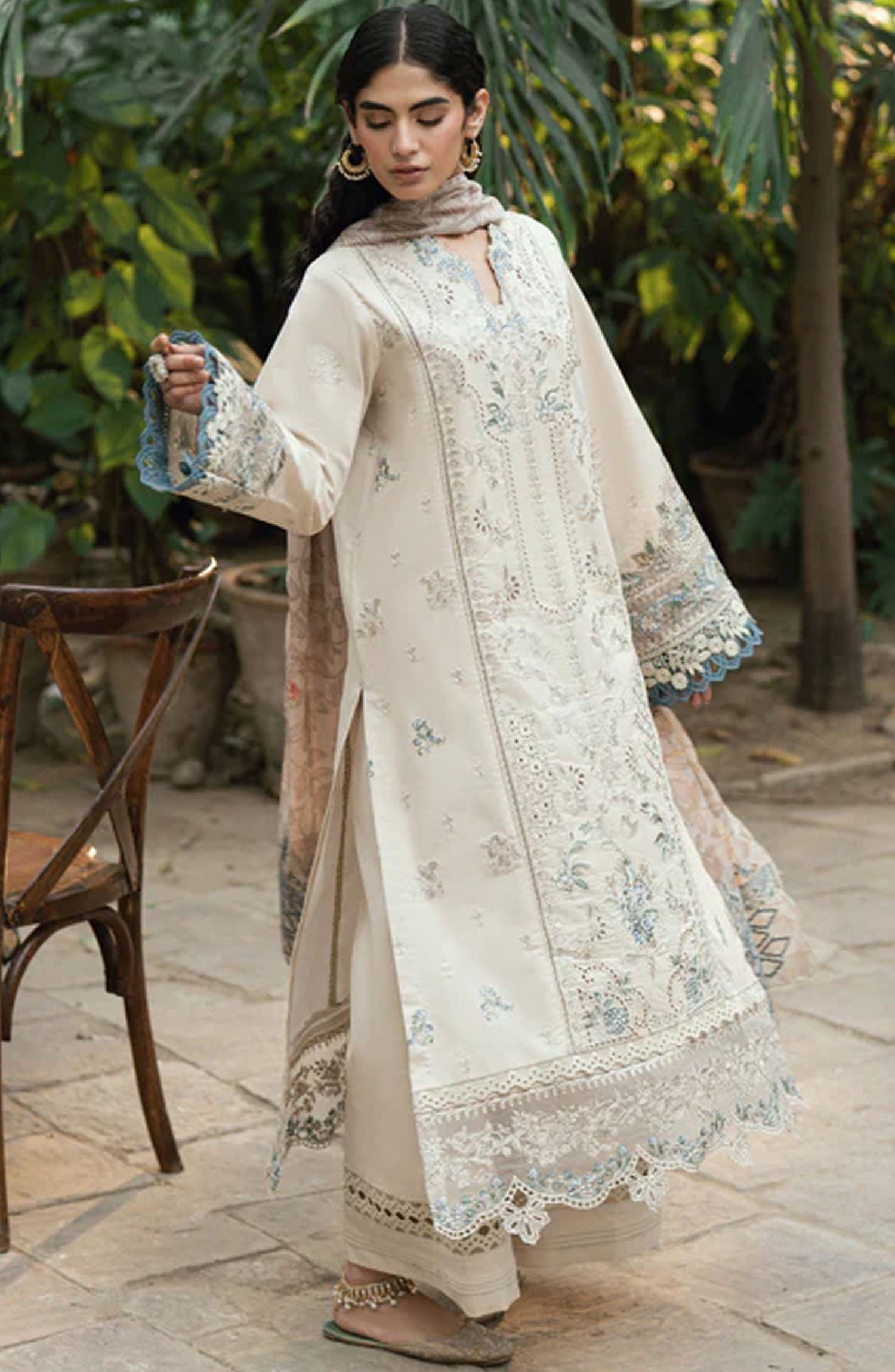 Florent Embroidered Lawn Unstitched 3 Piece Suit - FEE-04 B - FL25EELL - Off White - Eid Collection