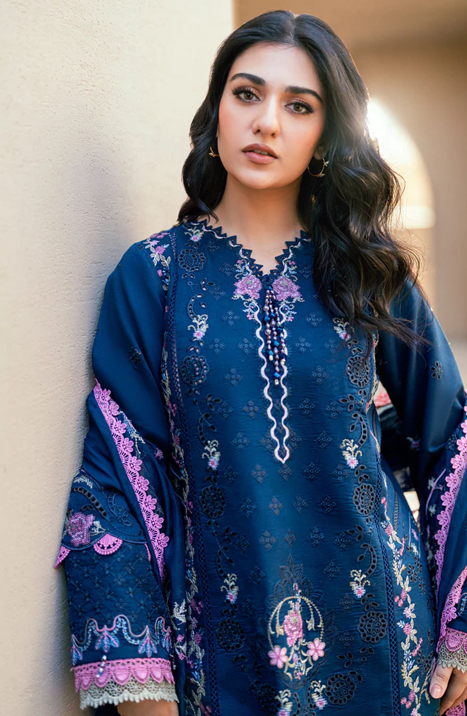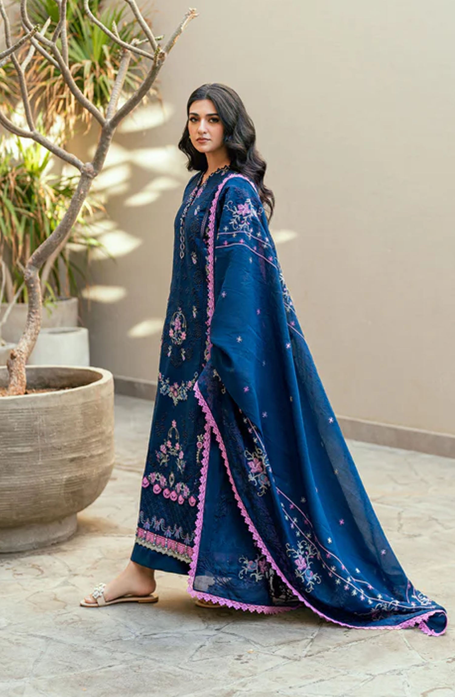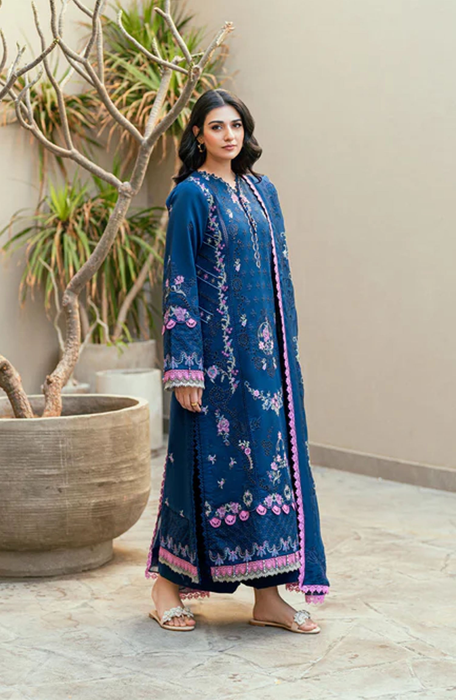 The standard style comes as a long-sleeved kameez with dupatta and trouser/shawlar.