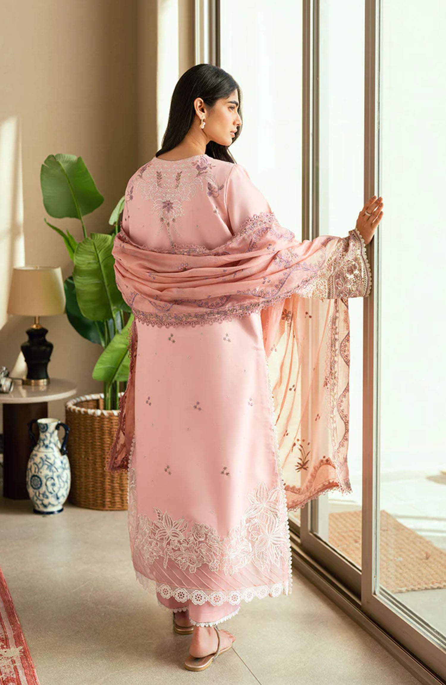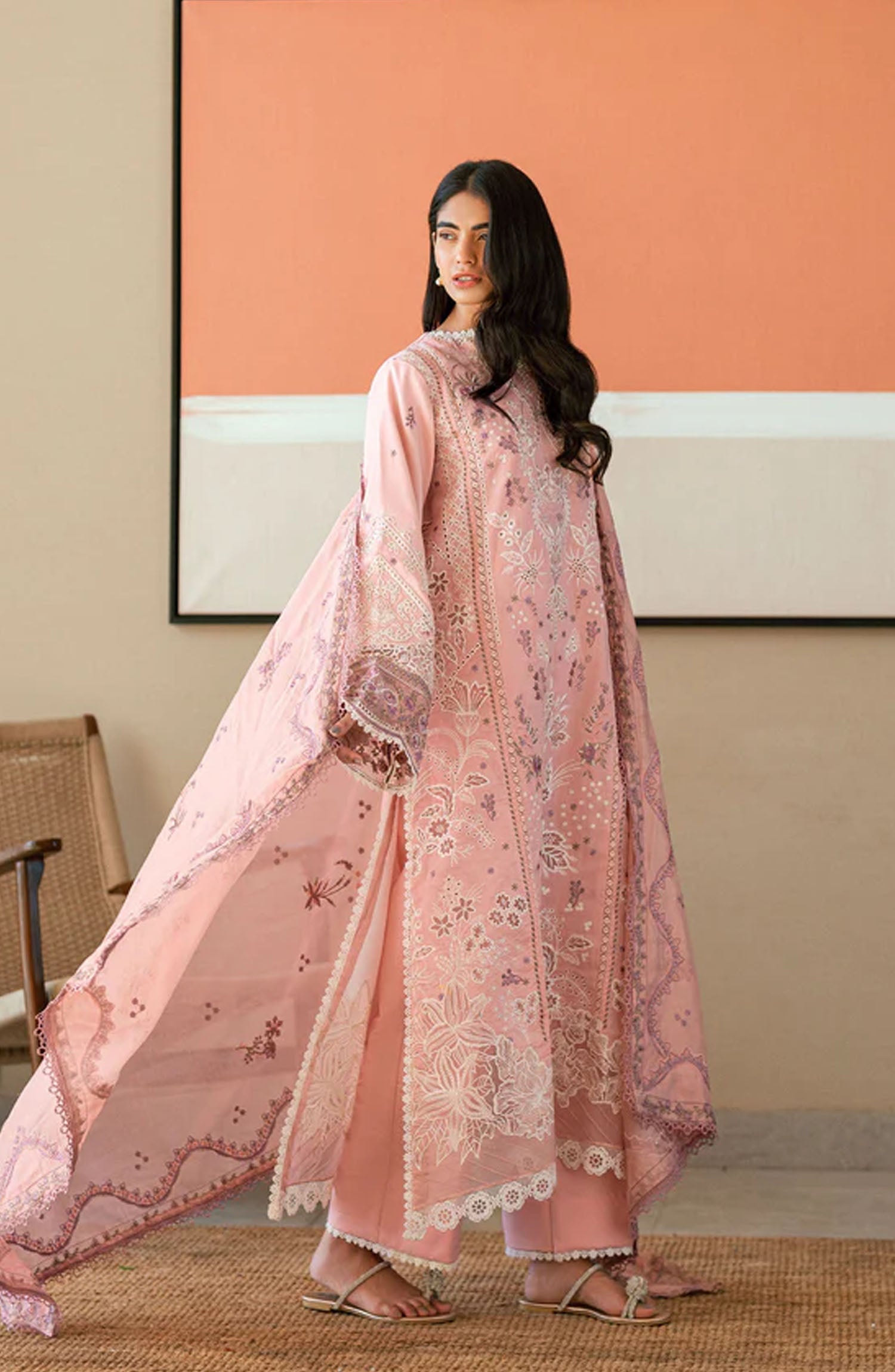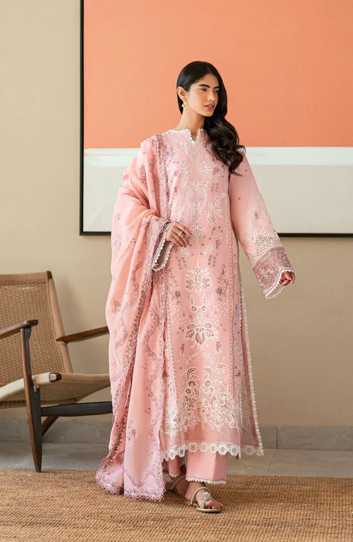 The standard style comes as a long-sleeved kameez with dupatta and trouser/shawlar.
