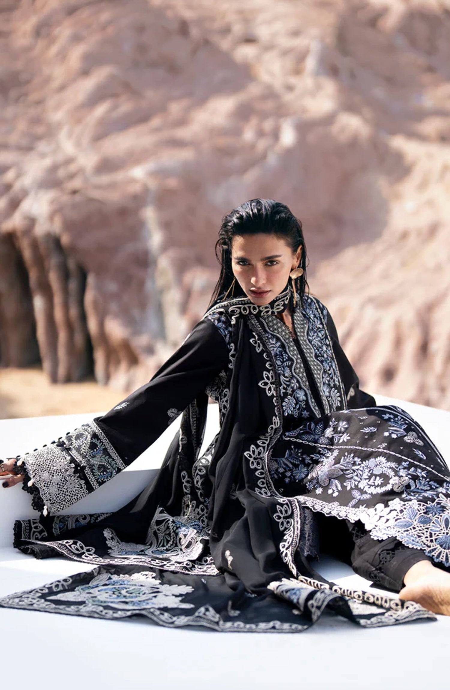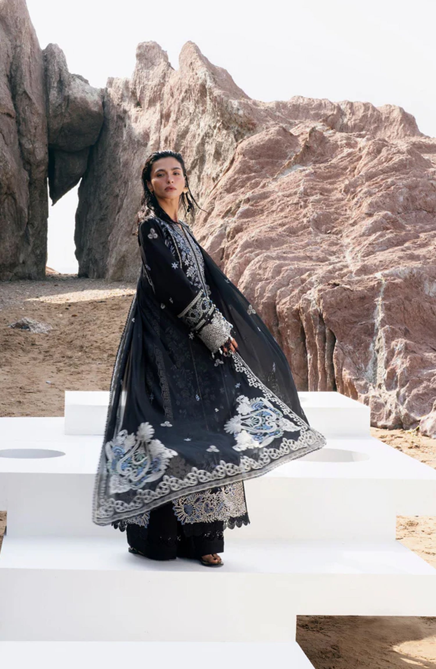 Embroidered Slits for Front & Back